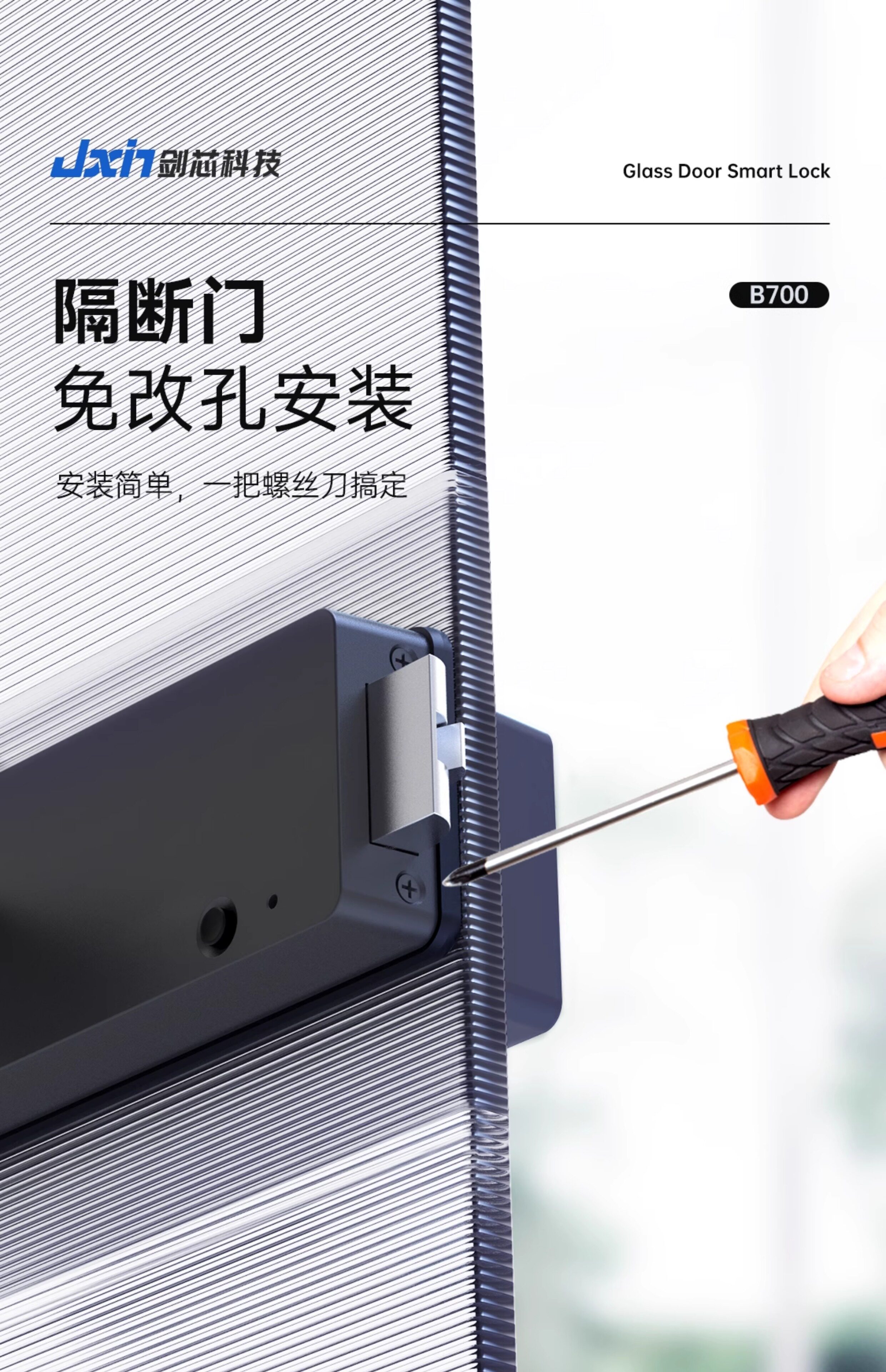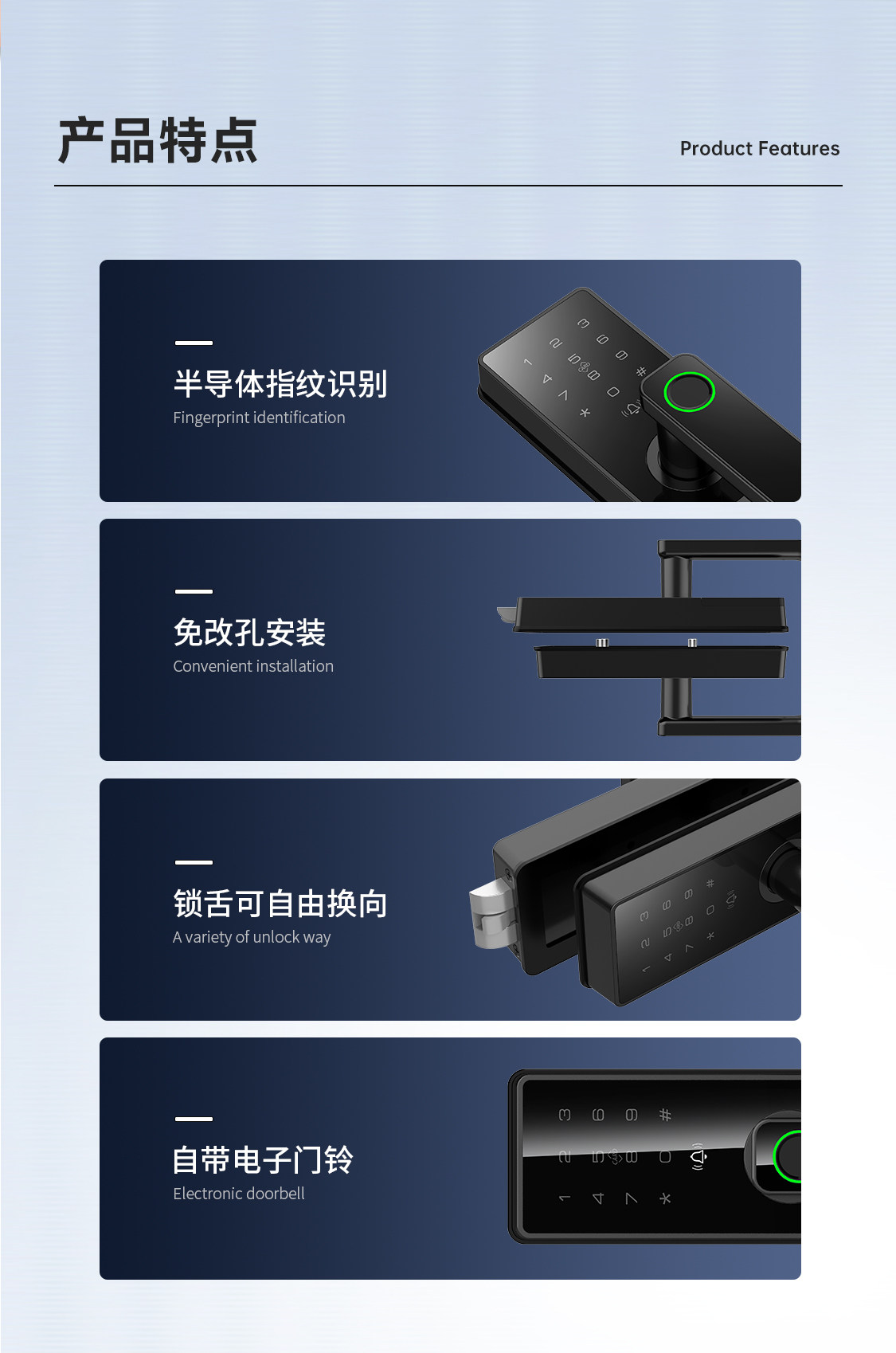 High Partition Glass Door Fingerprint Lock Single/Double Opening Office No-Drill Card Key Smart Electronic Password Lock