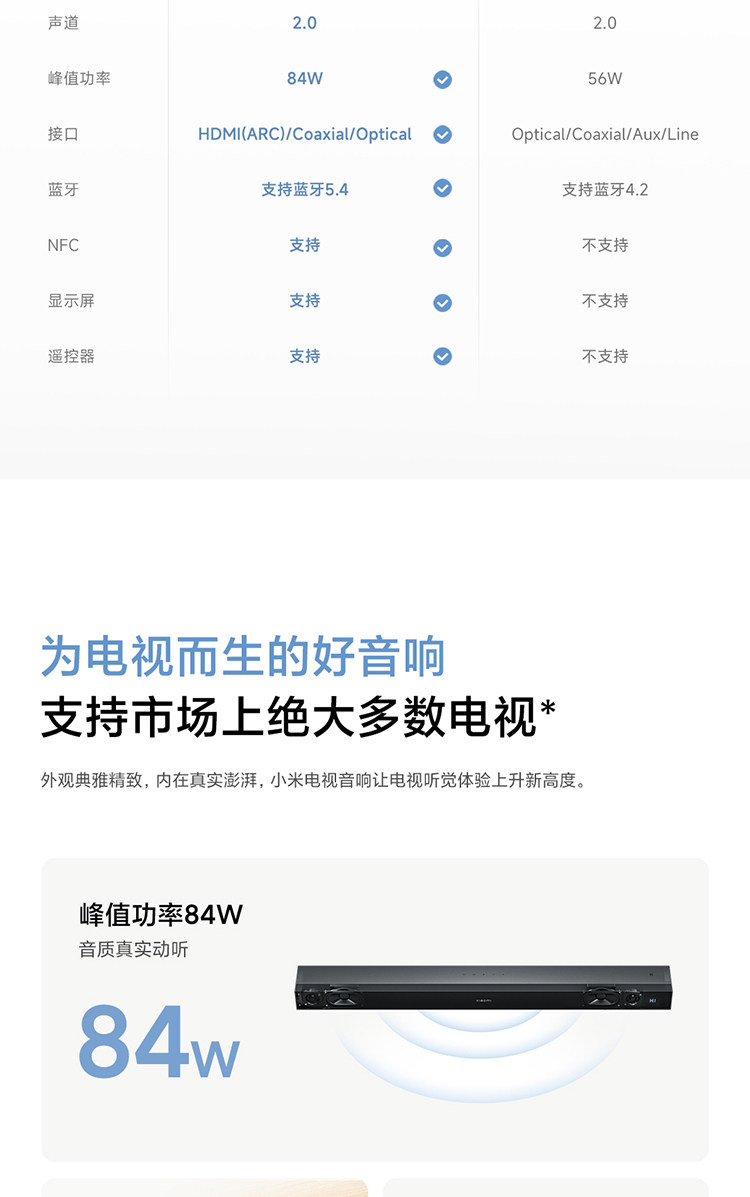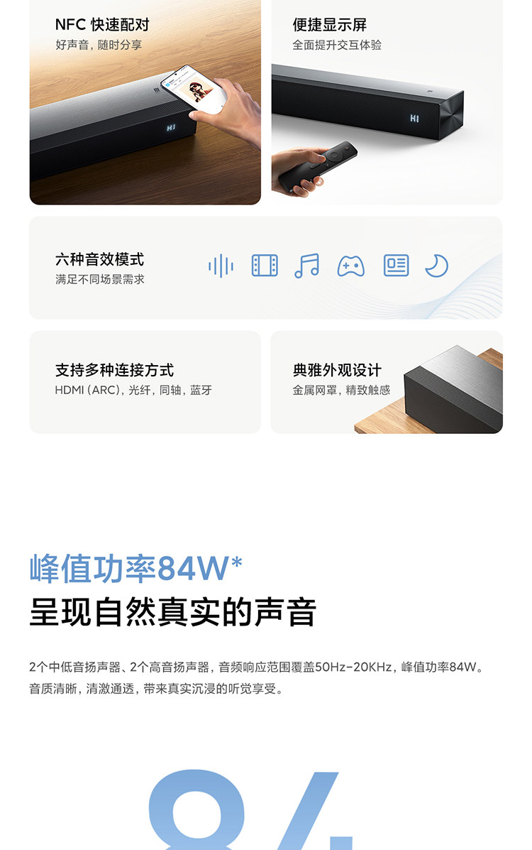 Xiaomi Tv Speaker 2.0/2.1/Soundbar Wireless Surround Home Theater Grade Speaker 84W 6 Sound Effects
