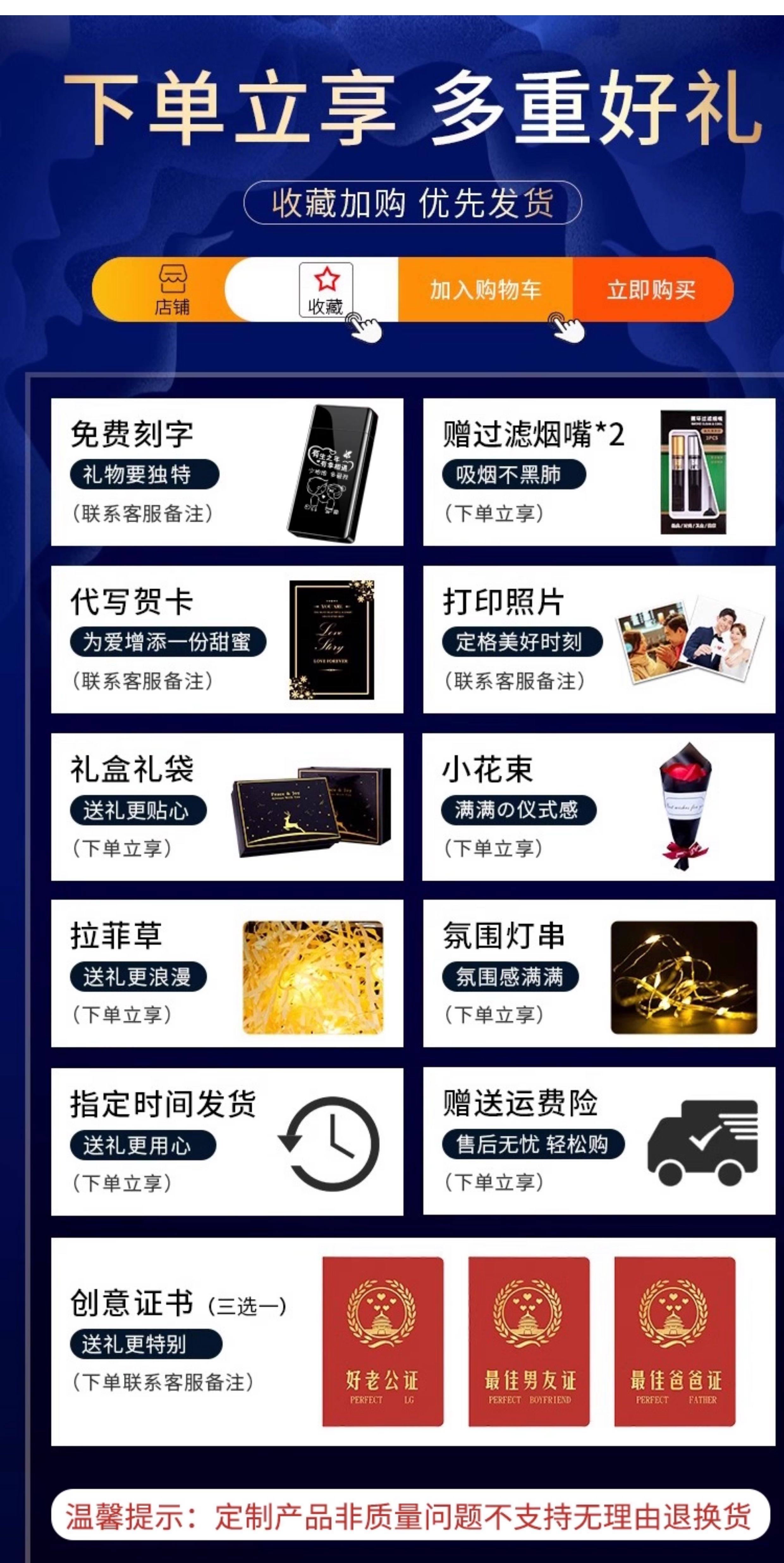 | Color Classification | ✿✿A Variety of Thoughtful Gift Box Recommendations✿✿,【Warm Winter Outfit】 "Deer to My Heart" Gift Set: Eagle Wings Lighter + Grey Scarf,[Warm Winter Matching] Eagle Spreading Wings Lighter + Digital Display Thermos Cup,[Eagle Spreading Wings] Black Ice Color◆Exquisite Gift Box,[Eagle Spreading Wings] Silver Ice Color◆Exquisite Gift Box,【Dolphin Lover】Black Ice Color◆Exquisite Gift Box,【Auspicious Dragon Blessings】Black Ice★Exquisite Gift Box,[One Deer Has You Gift Box] Eagle Spreading Wings Lighter,[Romantic Limited Gift Box] Eagle Spreading Wings Lighter,[Rose Gift Box] Eagle Spreading Wings Lighter,【Gentleman's Luxury Gift Set】Eagle Soaring Lighter,[Thoughtful Orange Gift Box] Eagle Spreading Wings Lighter,【Soaring Success Gift Box】Eagle Wings Lighter,[Christmas Gift Box] Eagle Spreading Wings Lighter + Peace Fruit,[Christmas Gift Box] Eagle Spreading Wings Lighter + Love Chocolate,[Christmas Gift Box] Eagle Spreading Wings Lighter + Gray Scarf,【For the Military】"Deer to Have You" Gift Box: Soaring Eagle Lighter + Soldier Figurine,[Send to the Police] [Yulu Has You Gift Box] Eagle Spreading Wings Lighter + Male Police Figure,[Worker] [Yulu Has You Gift Box] Eagle Spreading Its Wings Lighter + Worker Figure,【Gift for Doctors】【Deer with You Gift Box】Eagle Soaring Lighter + Male Doctor Figurine,[One Deer Has You Gift Box] Eagle Spreading Wings Lighter + Hanging Neck Fan,[One Deer Has You Gift Box] Eagle Spreading Wings Lighter + Love Chocolate,[One Deer Has You Gift Box] Eagle Spreading Wings Lighter + Small Flying Saucer Shaver,[One Deer Has You Gift Box] Eagle Spreading Wings Lighter + Sunglasses Perfume,[One Deer Has You Gift Box] Eagle Spreading Wings Lighter + Bottle Keychain,[One Deer Has You Gift Box] Eagle Spreading Wings Lighter + Seven Wolves Belt,[One Deer Has You Gift Box] Eagle Spreading Wings Lighter + Electric Toothbrush + Mouthwash Letter Cup,[One Deer Has You Gift Box] Eagle Spreading Wings Lighter + Genuine Ck Underwear*2,[Deer with You Gift Box] Eagle Spreading Wings Lighter + Reindeer Mug,[One Deer Has You Gift Box] Eagle Spreading Wings Lighter + Bone Conduction Headphones,[One Deer Has You Gift Box] Eagle Spreading Wings Lighter + Voice Version Cervical Spine Instrument,[Deer with You Gift Box] Eagle Spreading Wings Lighter + Fawn Ashtray |
