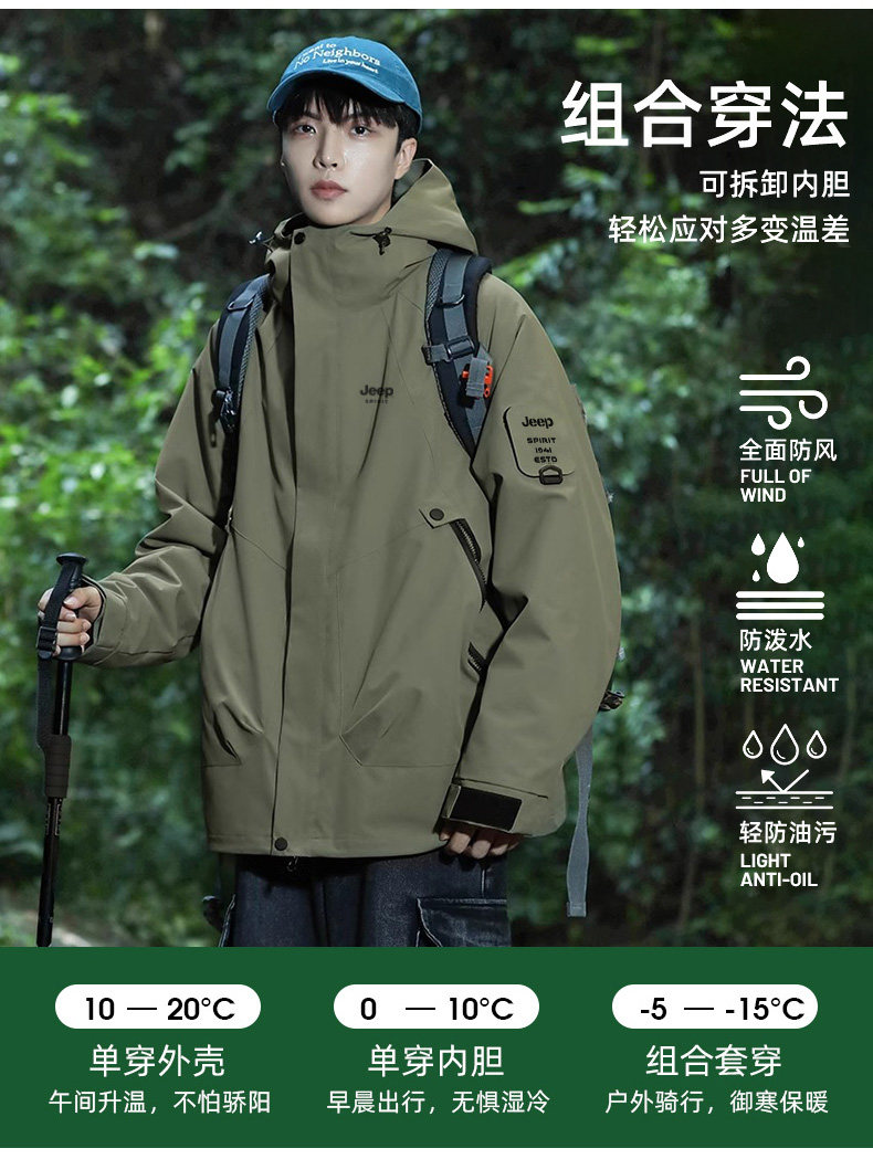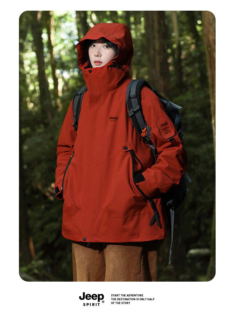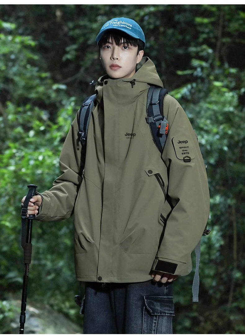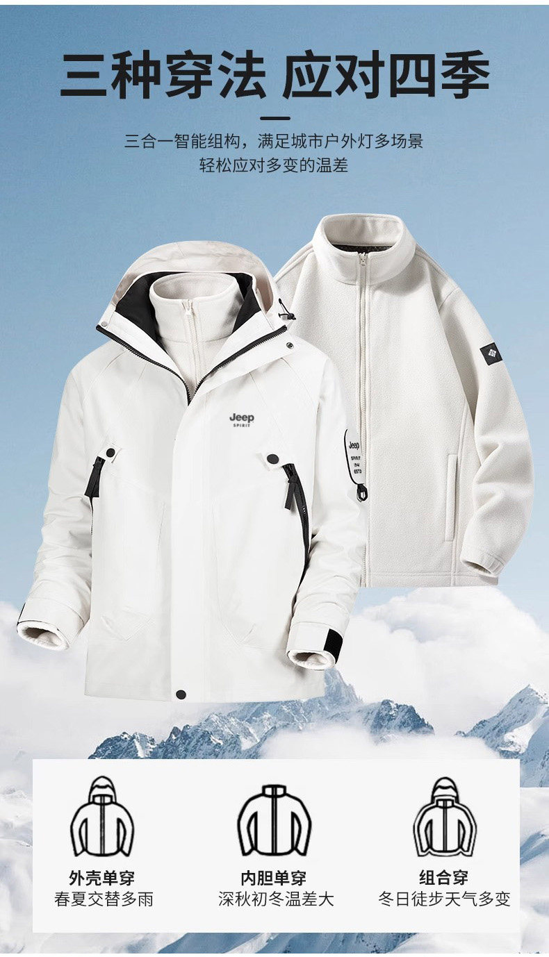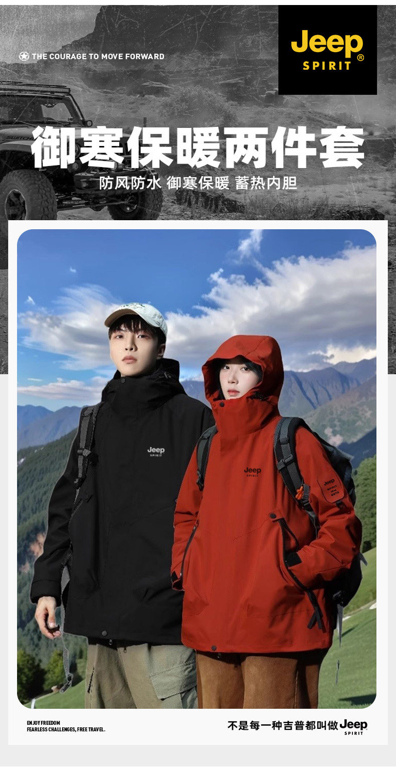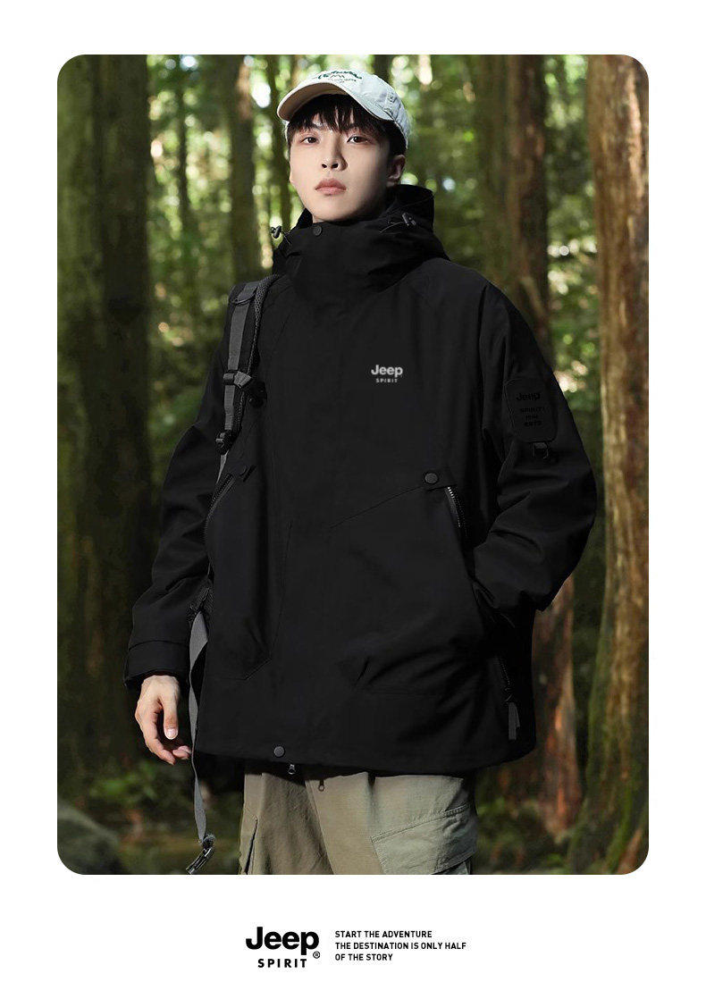 Jeep 2025 New Outdoor Jacket for Men, Three-In-One Waterproof Mountaineering Jacket, Autumn and Winter Coat, Women's Three-Proof Jacket