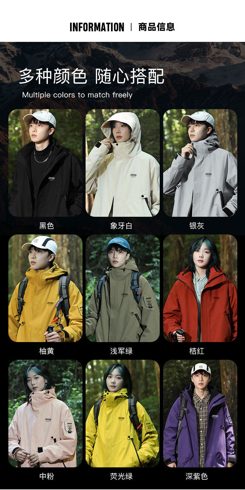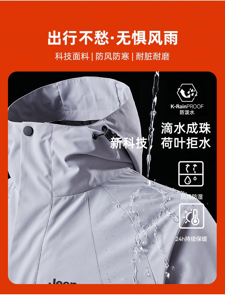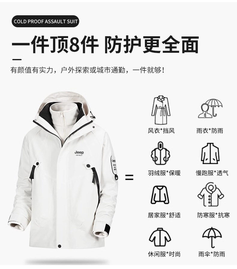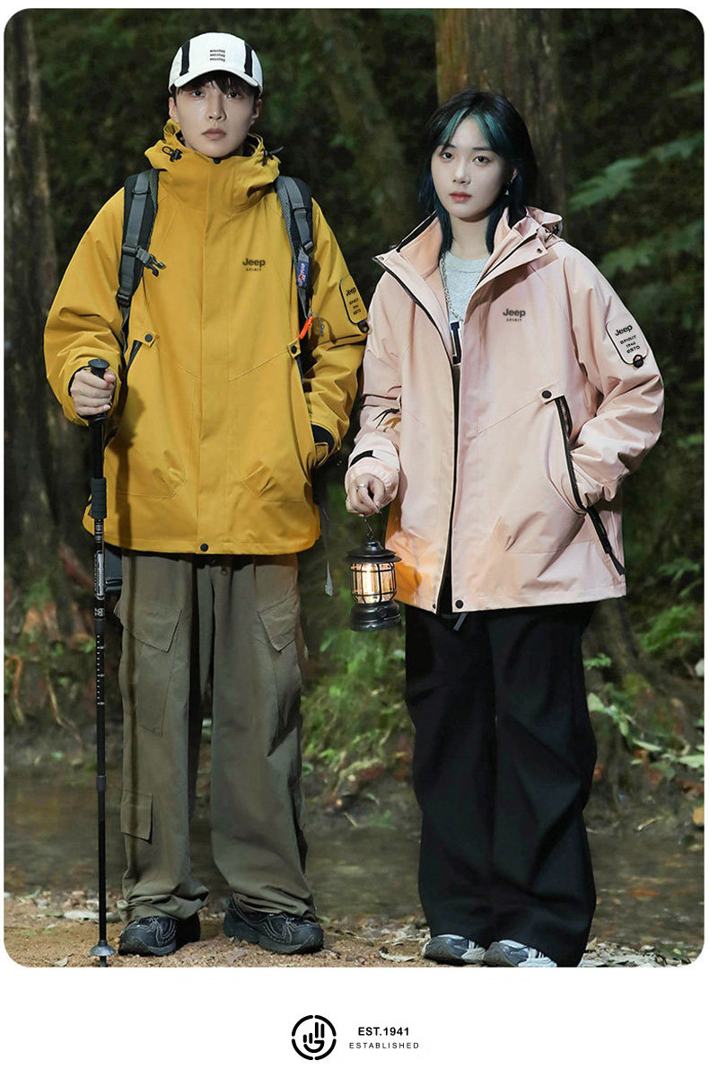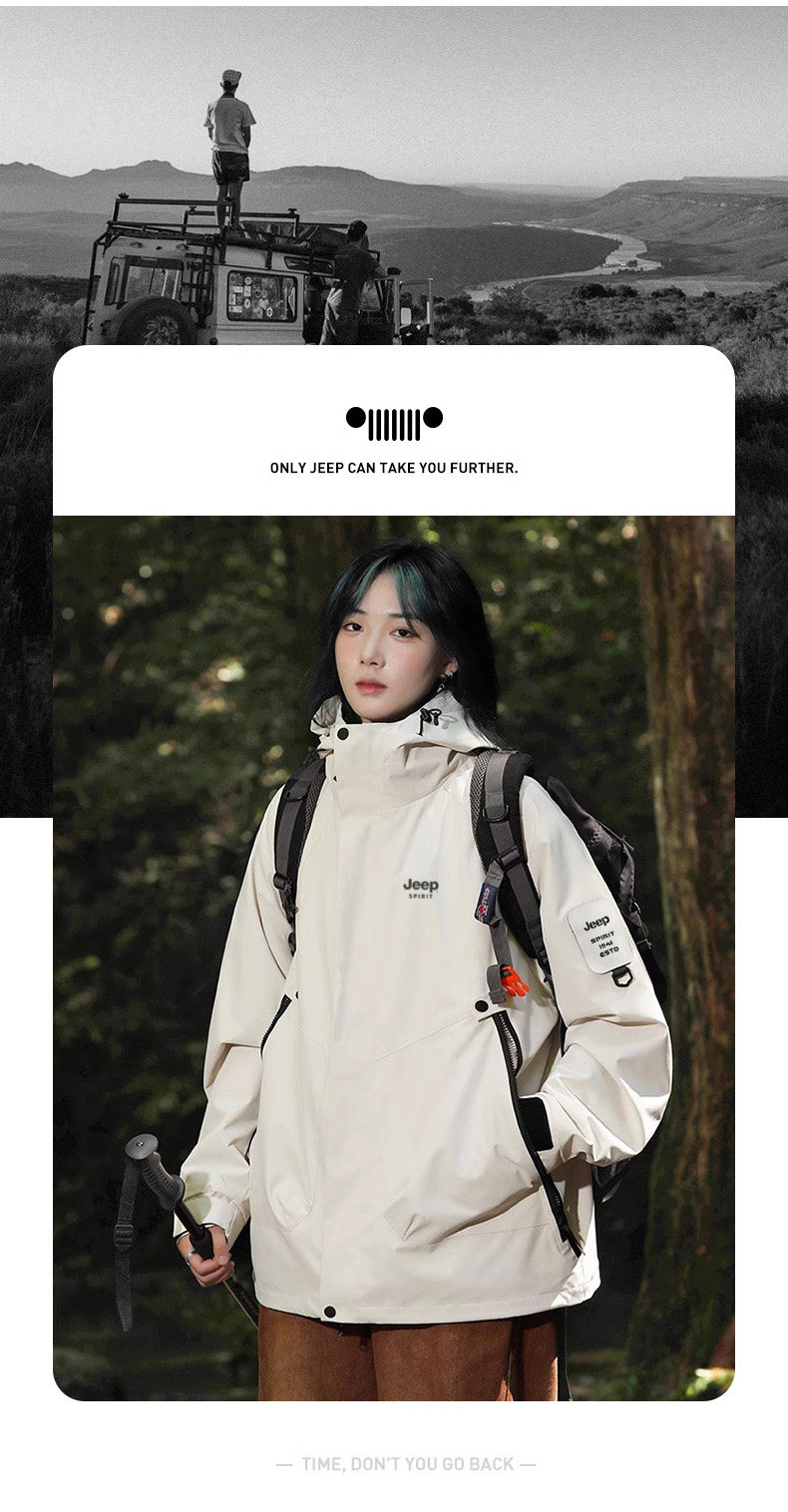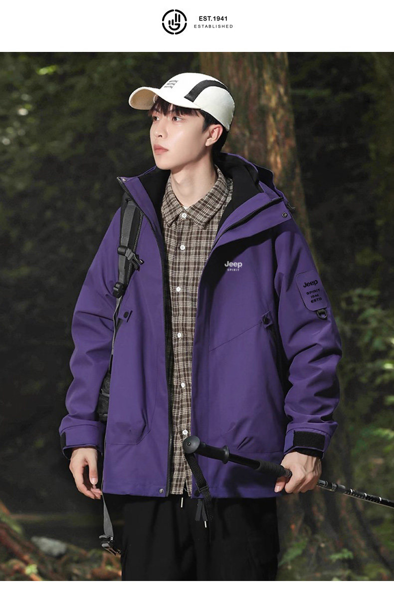 Jeep 2025 New Outdoor Jacket for Men, Three-In-One Waterproof Mountaineering Jacket, Autumn and Winter Coat, Women's Three-Proof Jacket