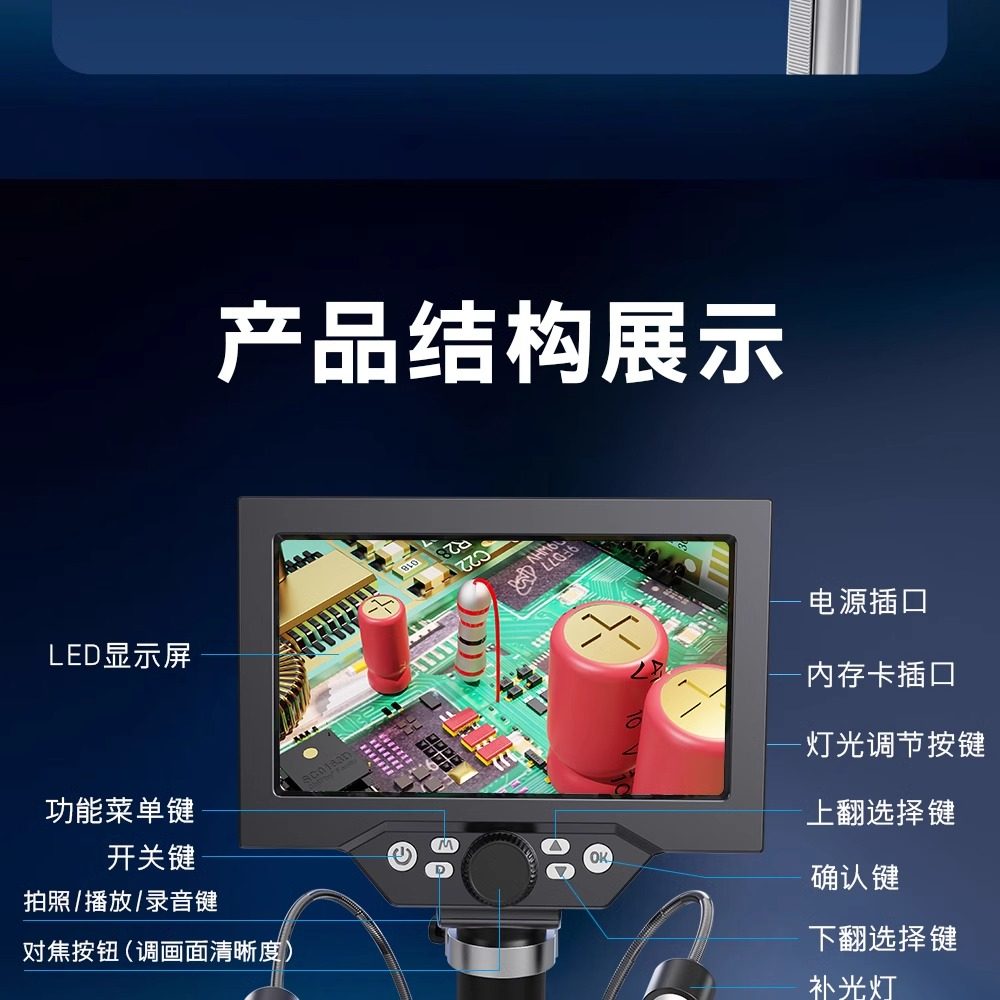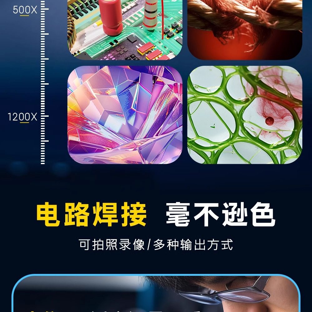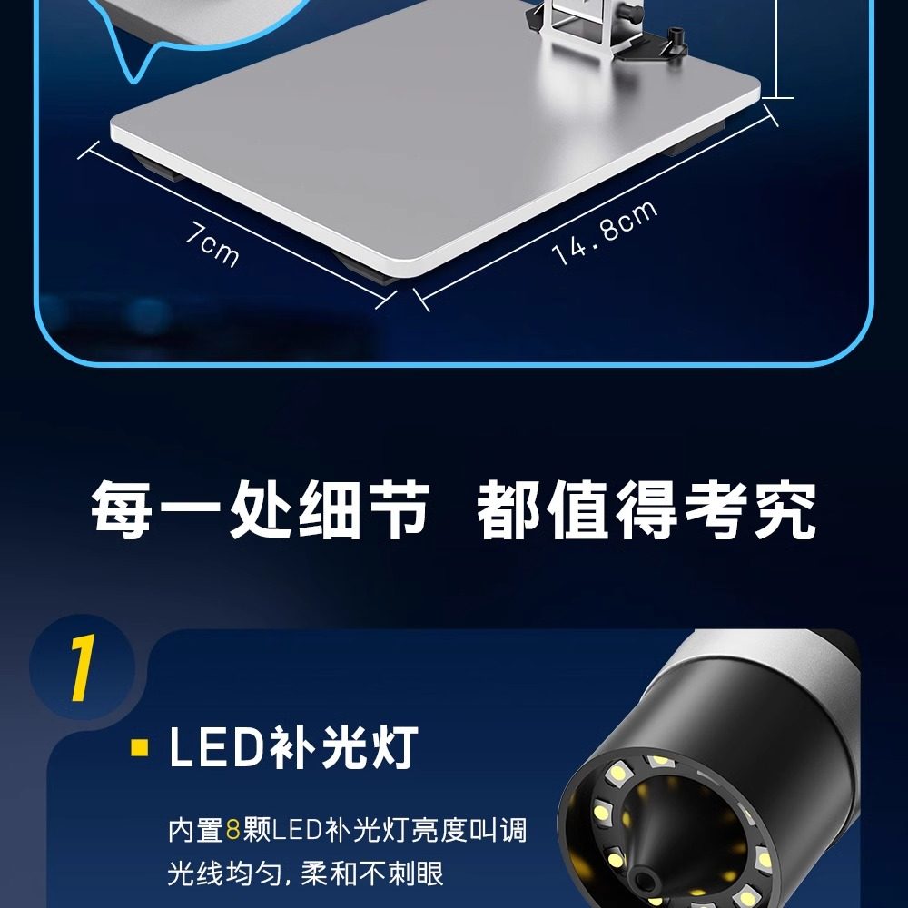 High-Magnification High-Definition Magnifying Glass for Repair and Appraisal, Specialized Industrial Electron Microscope with 2000X Magnification, Illuminated Desktop Model for Mobile Phone Repair, Circuit Board Soldering, Watch Repair, Jewelry, Antiques, Tobacco, Liquor, Jade, Agarwood Appraisal