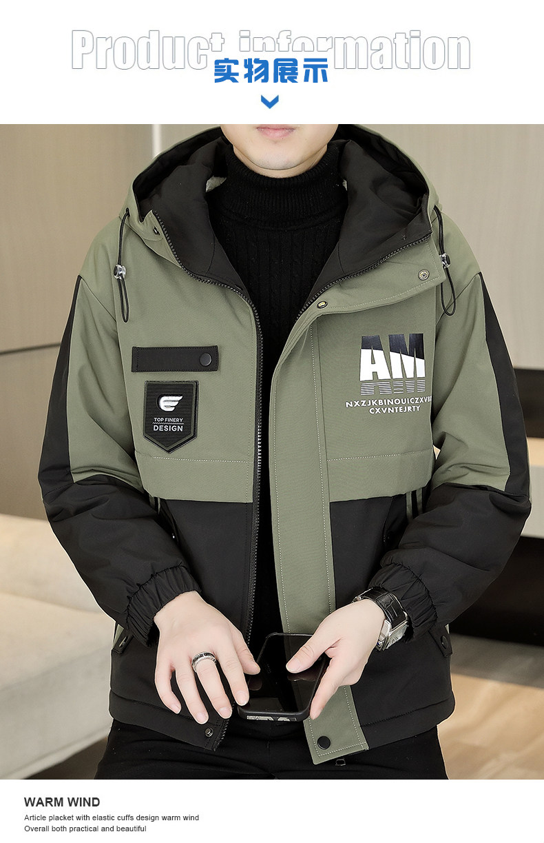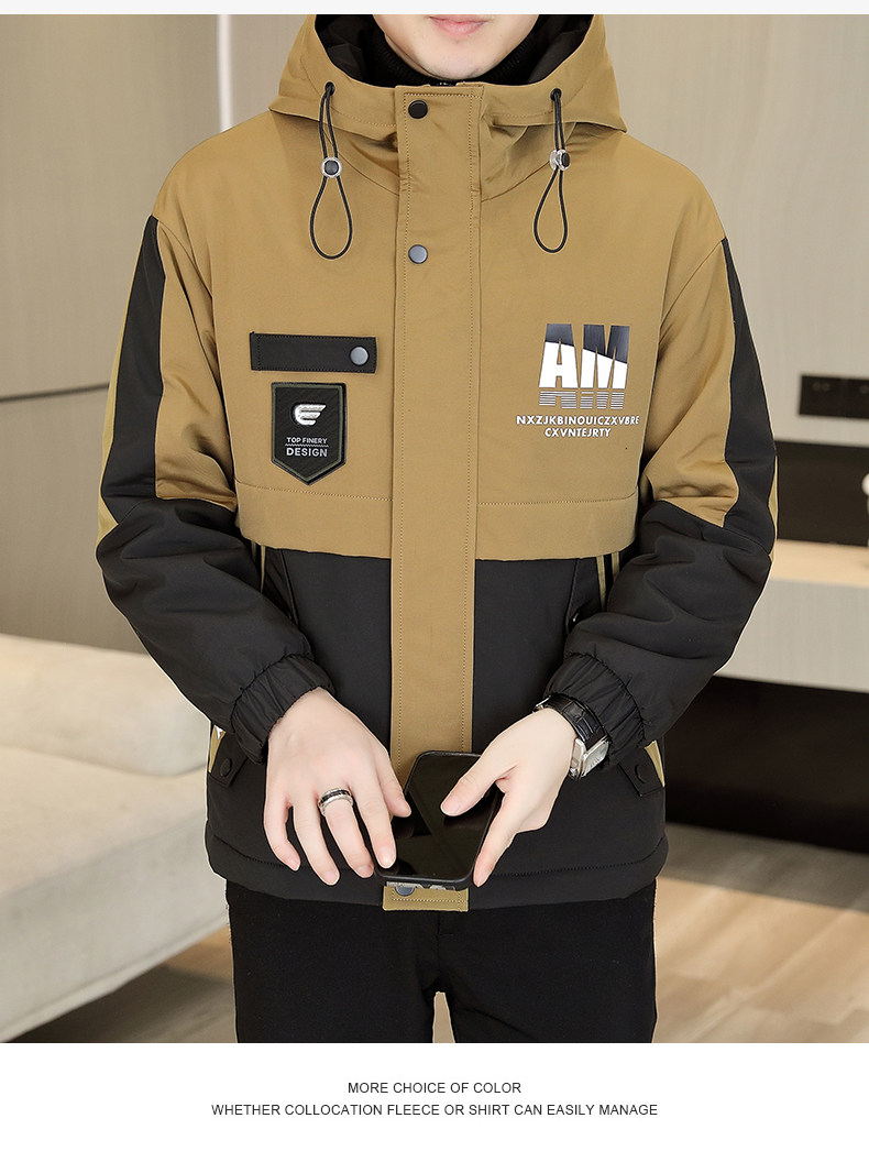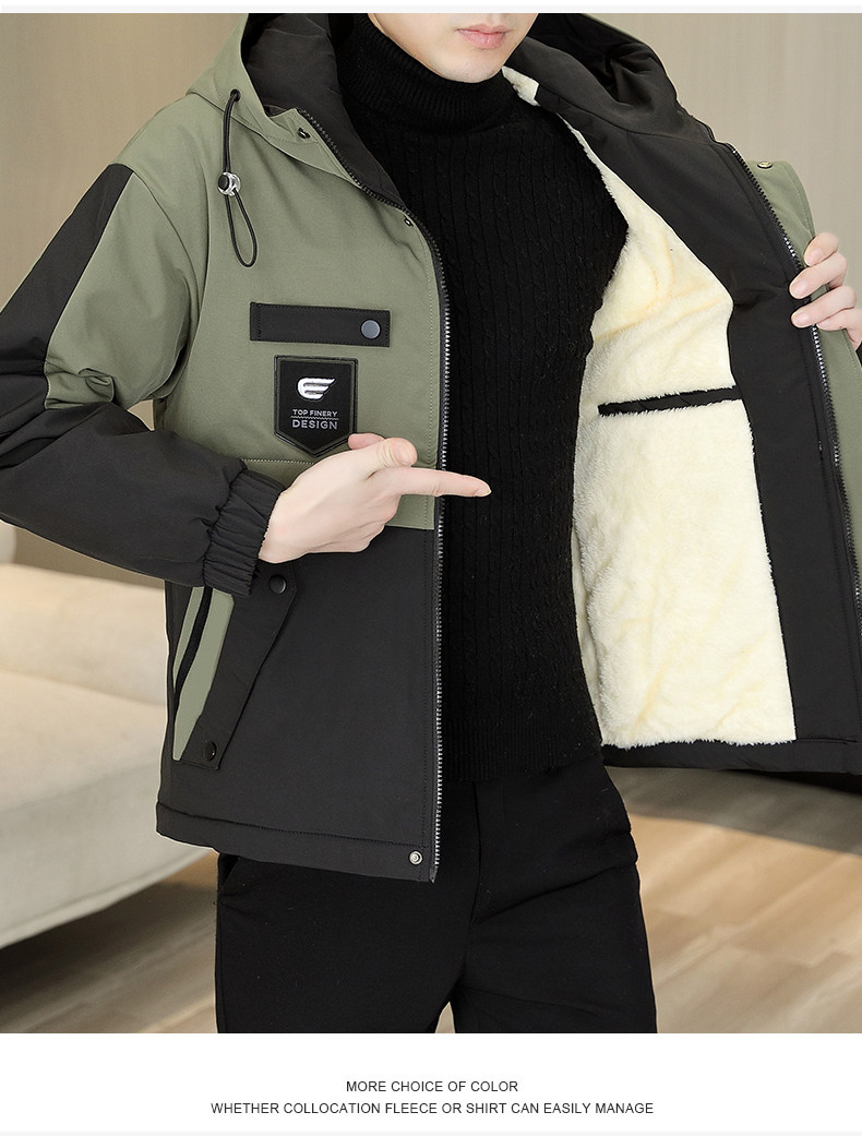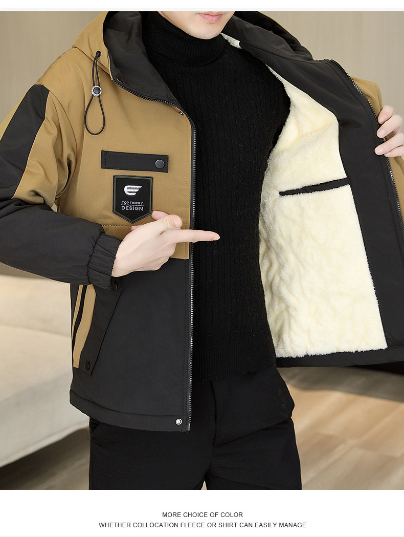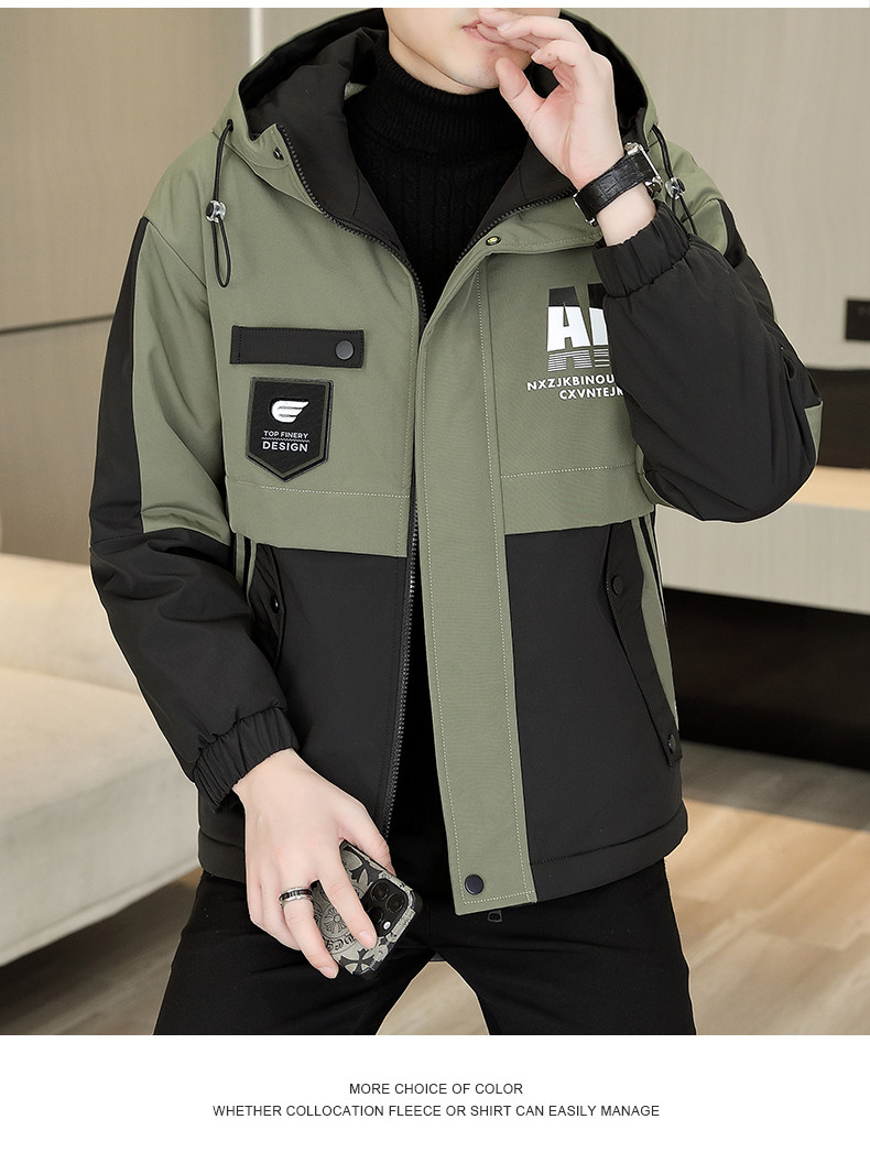 Woodpecker Men's Jacket New Trendy Men's Workwear Hooded Fleece Jacket Windbreaker Winter Thickened Cotton Coat