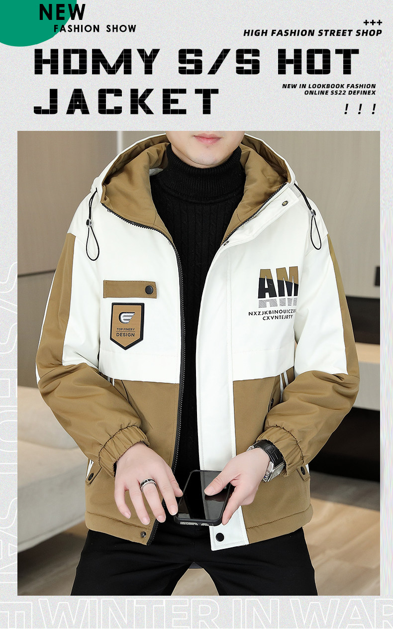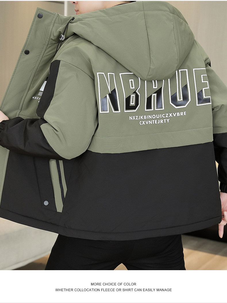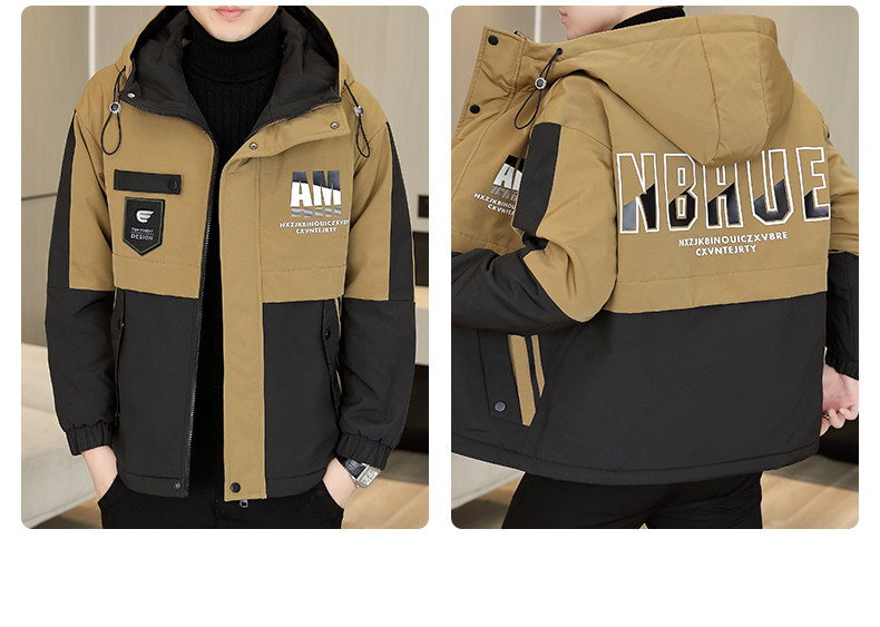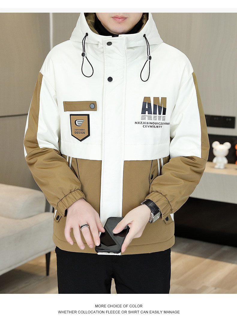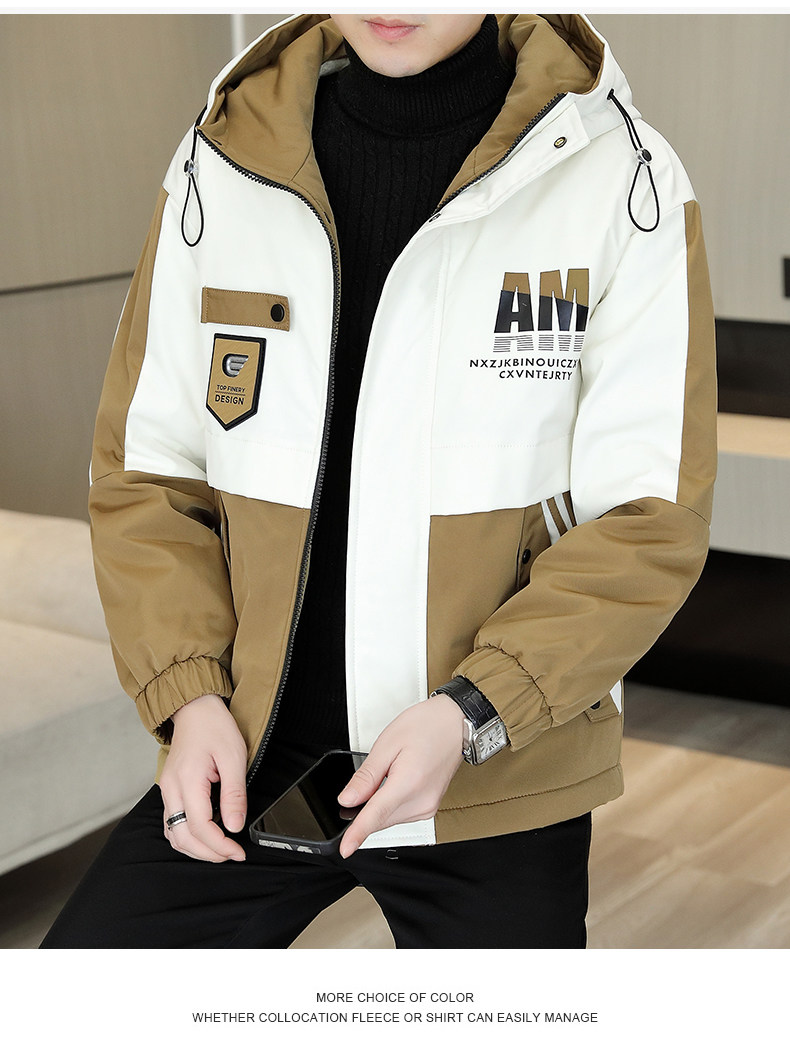 Woodpecker Men's Jacket New Trendy Men's Workwear Hooded Fleece Jacket Windbreaker Winter Thickened Cotton Coat