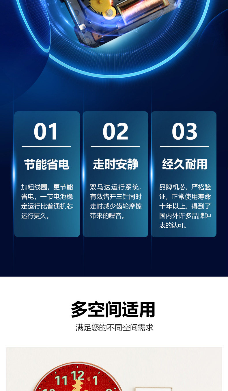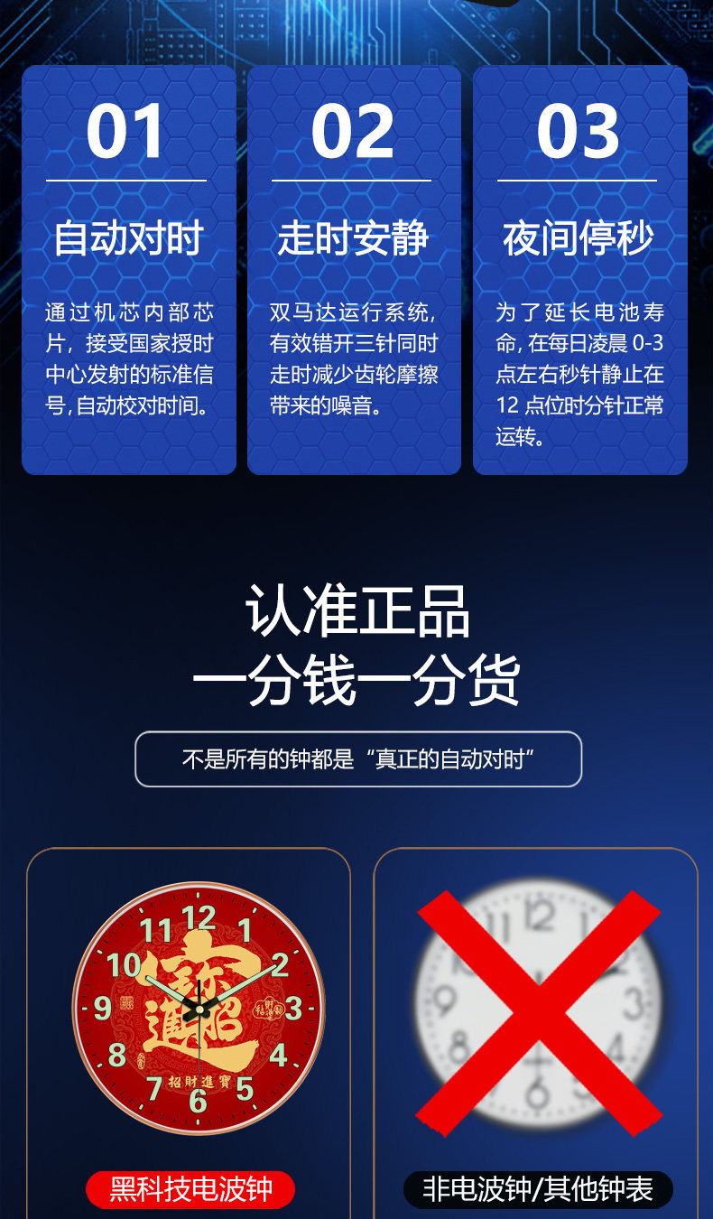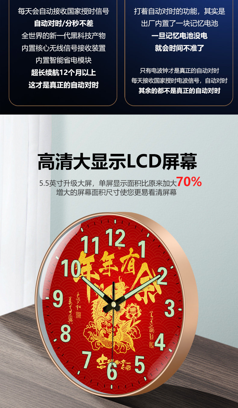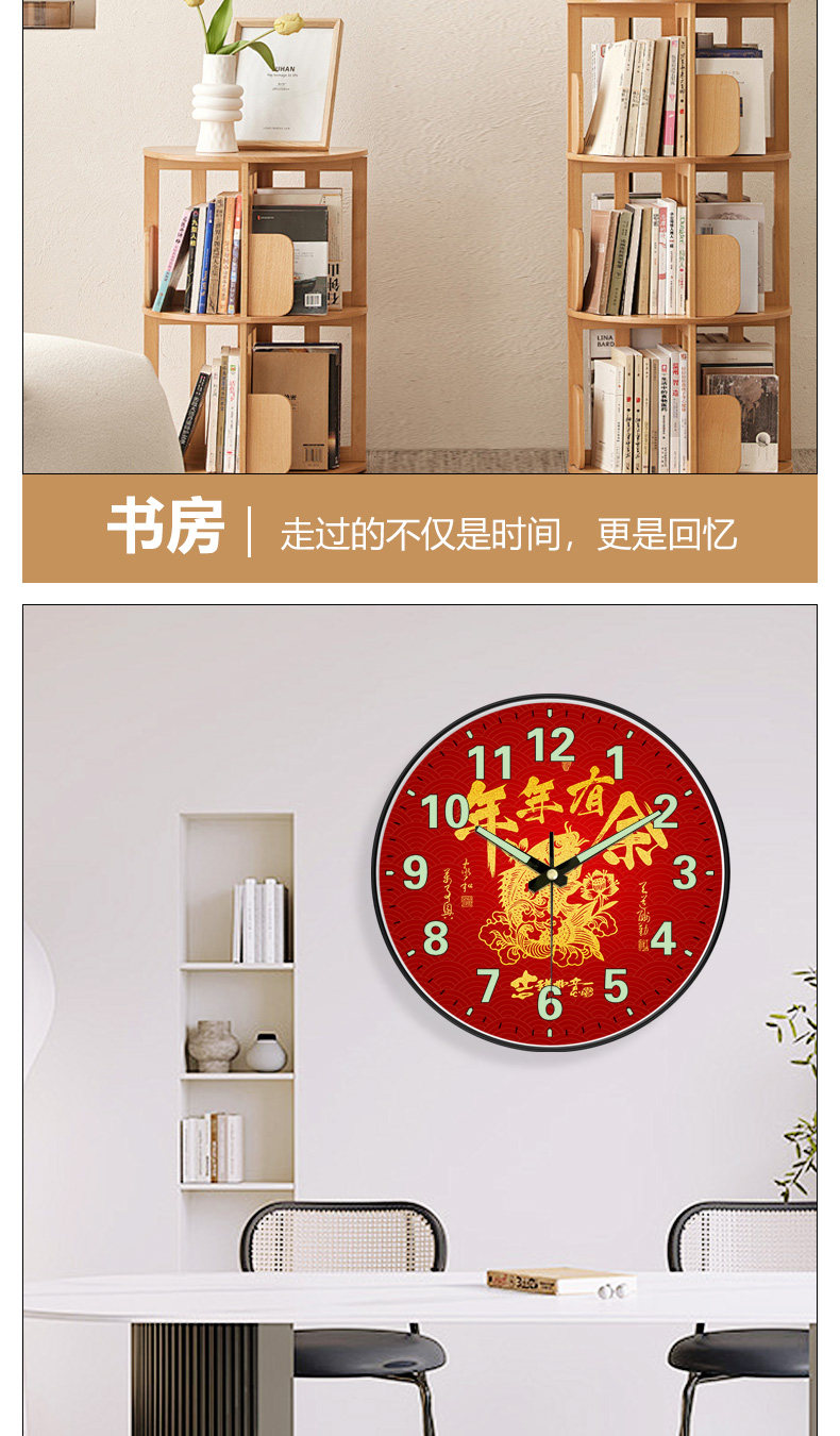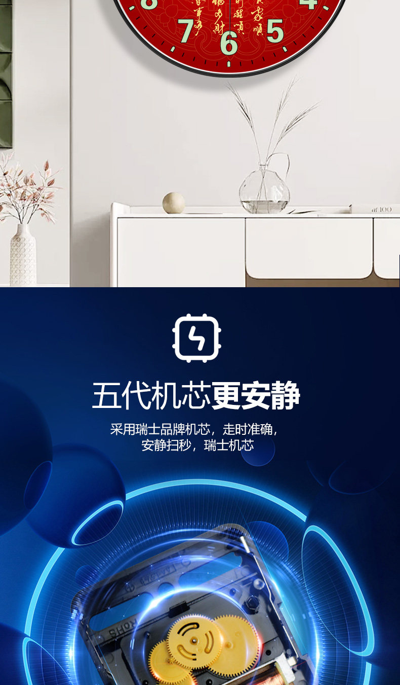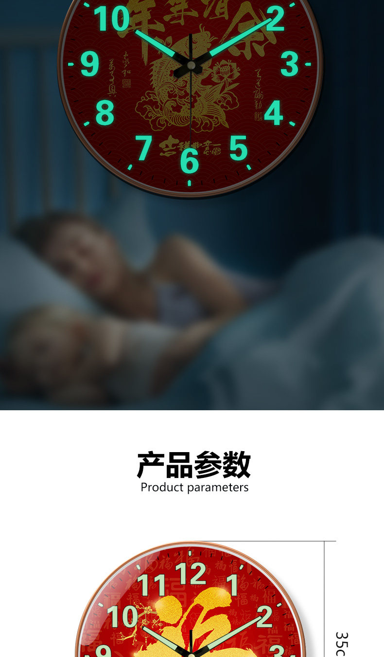 Suning.Com Fortune Character Luminous Clock Radio-Controlled Wall Clock for Home Use, Fashionable and Creative Wall-Mounted Simple Quartz Clock 2129