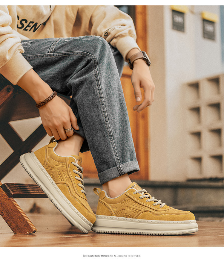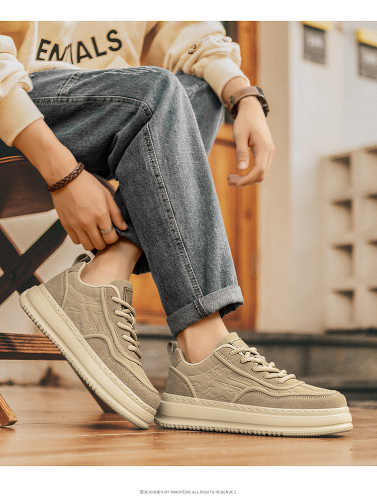 Men's Shoes, Autumn 2025 New Style, Versatile, High-End, Retro Genuine Leather Sneakers, Men's Height-Increasing Thick-Soled Casual Sports Trendy Shoes