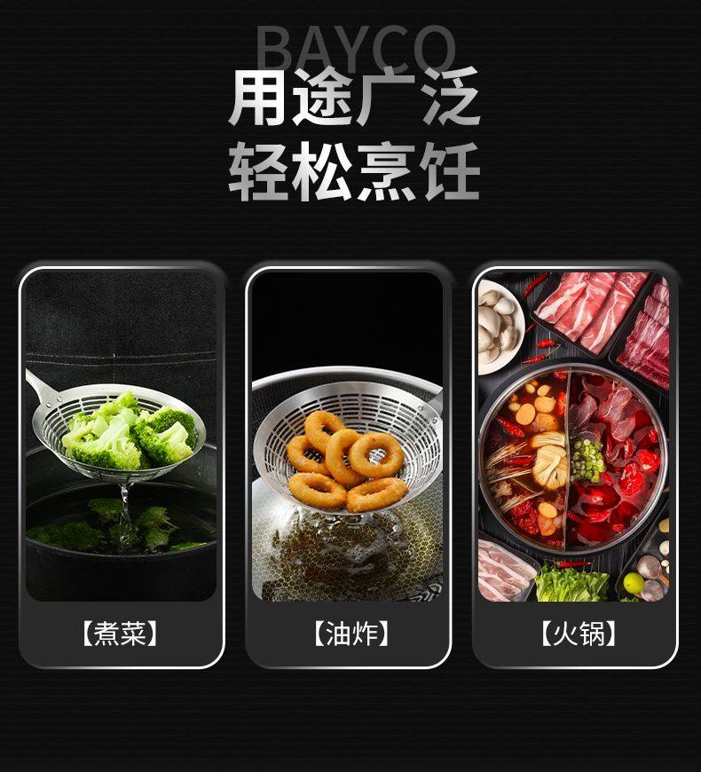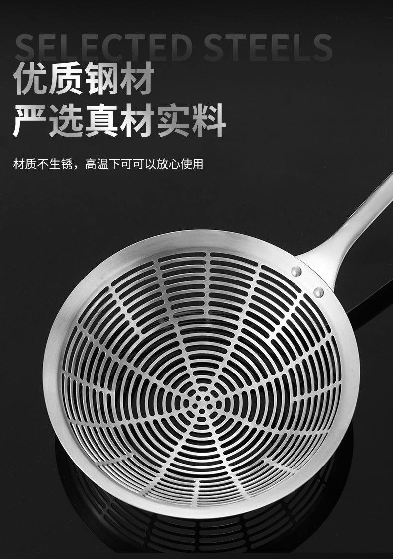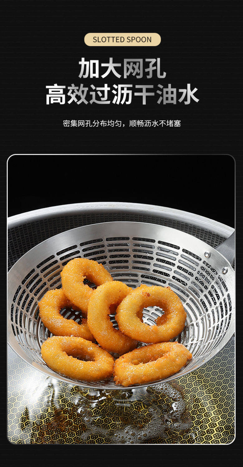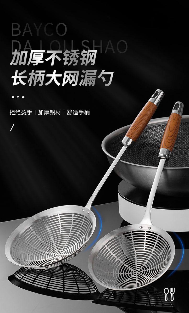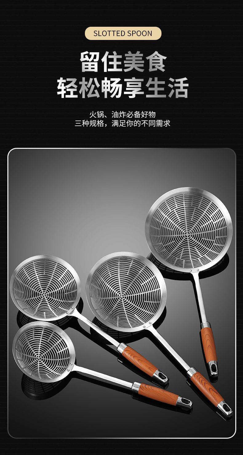 Stainless Steel Skimmer Spoon Kitchen Thickened Anti-Scald Handle Hot Pot Skimmer Kitchen Frying Noodle Spoon Filter Mesh Strainer