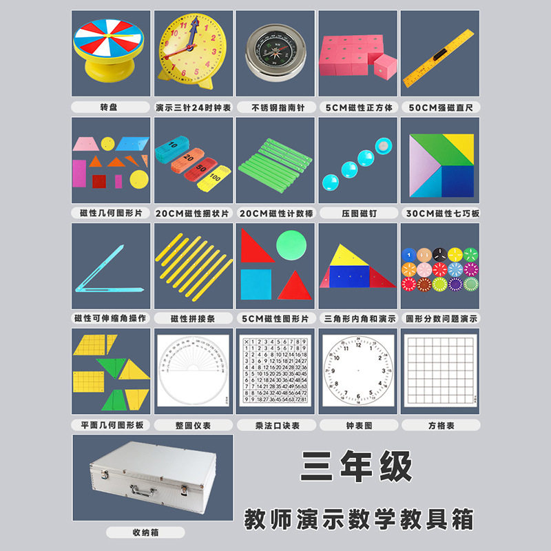 Primary School Mathematics Teaching Aids Teacher's Teaching Magnetic Full Set Multi-Functional Set People's Education Press Version Beijing Normal University Version Universal for Grades One to Six Full Grade Mathematics Teaching Aids Box