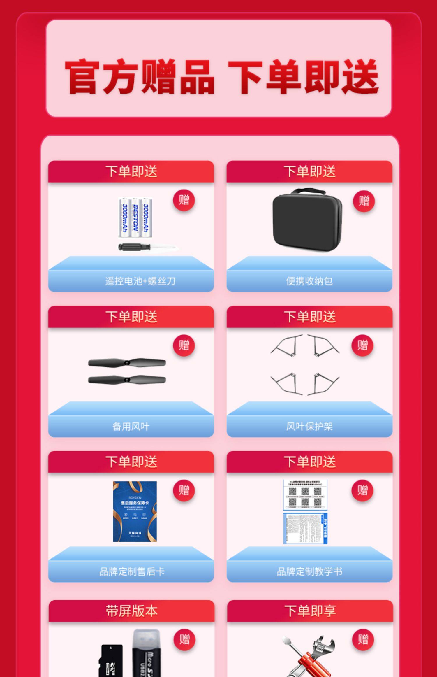 | Package Type | Official Standard Configuration,1 Battery [Comes with Storage Bag + Vulnerable Accessories + Charging Cable],Free 1 Battery, 3 Batteries in Total [Free Storage Bag + Vulnerable Accessories + Multiple Charging Cables],Free 1 Battery, 4 Batteries in Total [Free Storage Bag + Vulnerable Accessories + Multiple Charging Cables],Free 1 Battery, 5 Batteries in Total [Free Storage Bag + Vulnerable Accessories + Multiple Charging Cables] |