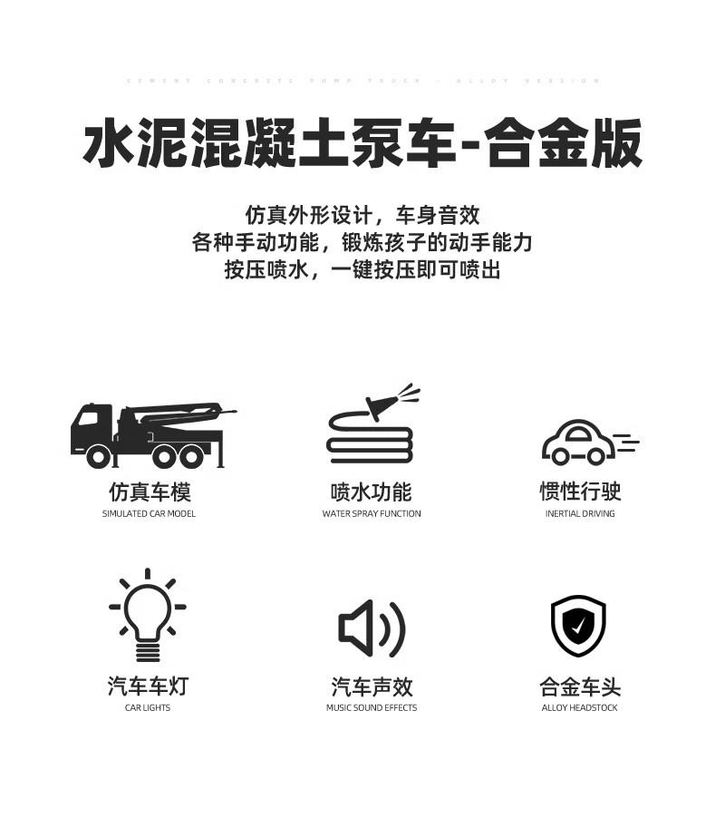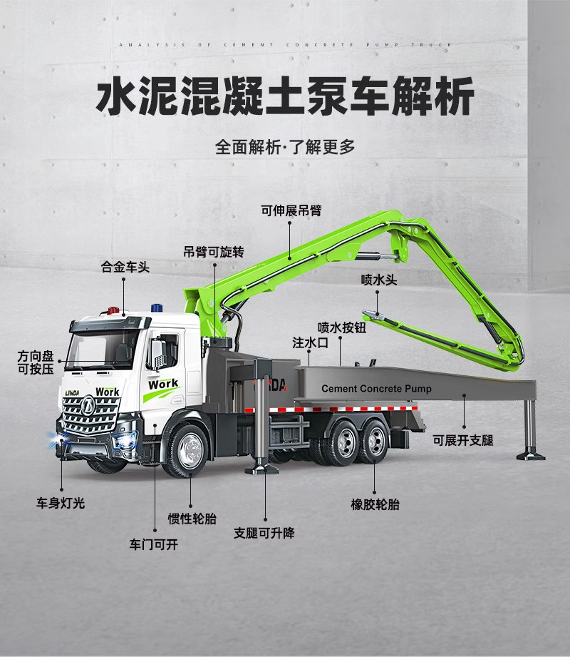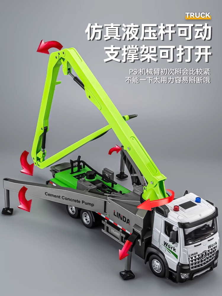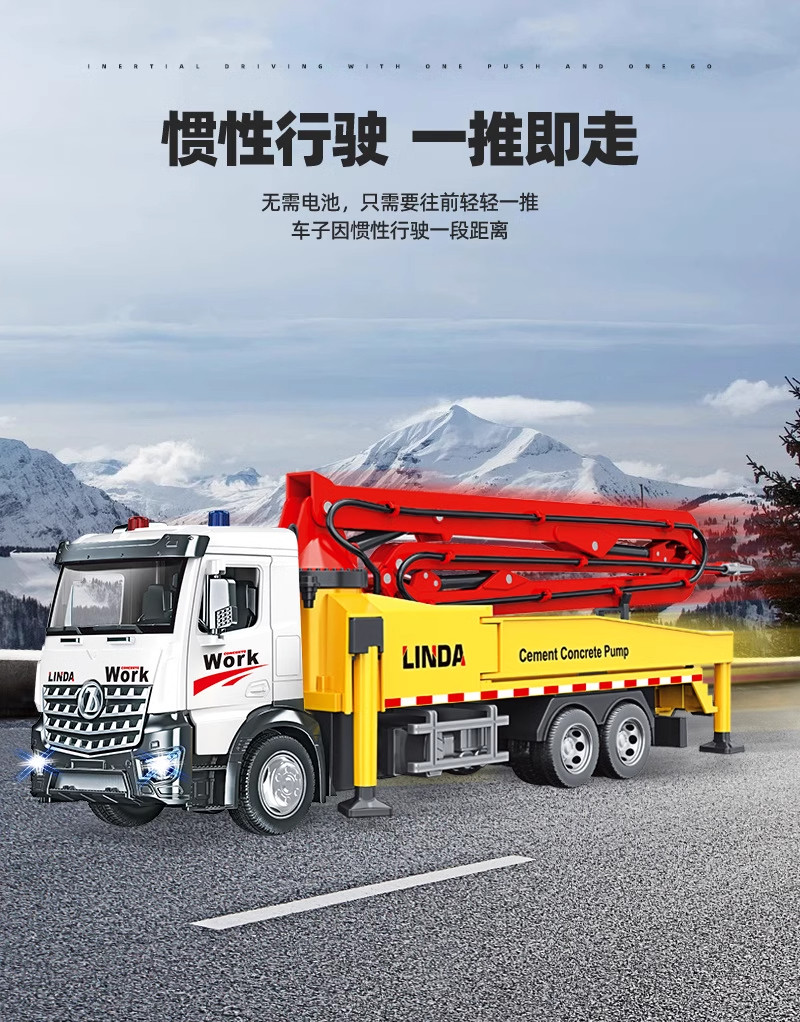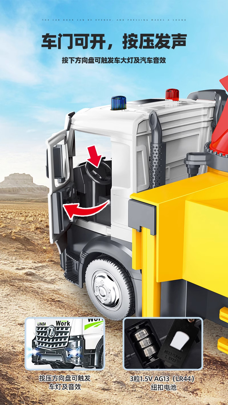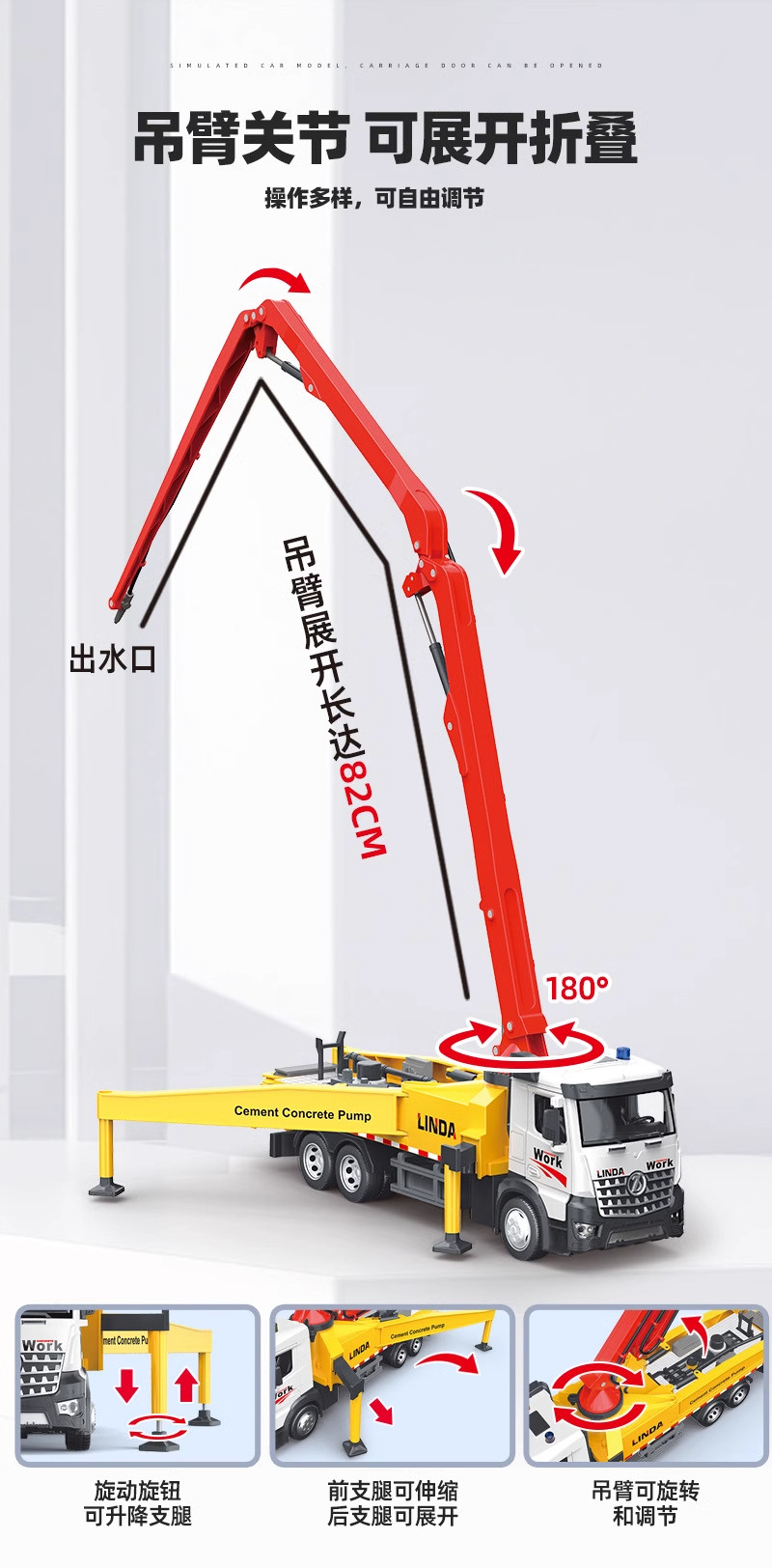 Extra Large Children's Fire Truck Toy for Boys, Can Spray Water, Alloy Cement Pump Sprinkler Truck Toy, Engineering Vehicle Model
