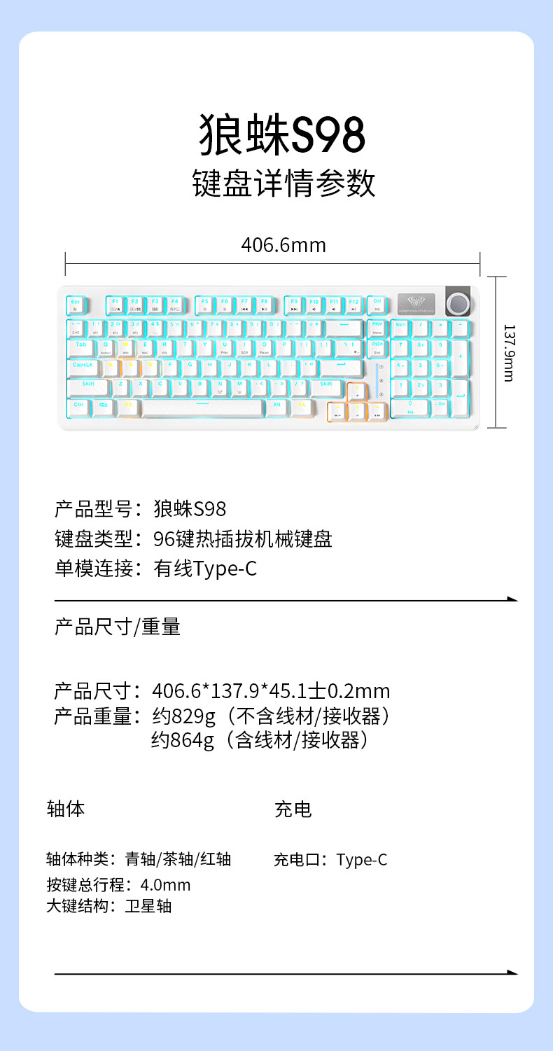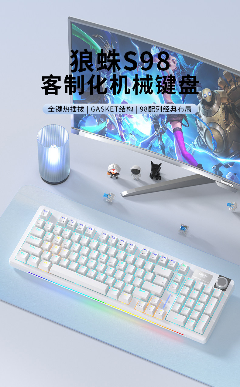 Wolf Spider S98 Customized Mechanical Keyboard and Mouse Set Gasket Structure Full-Key Hot-Swappable Wired Keyboard
