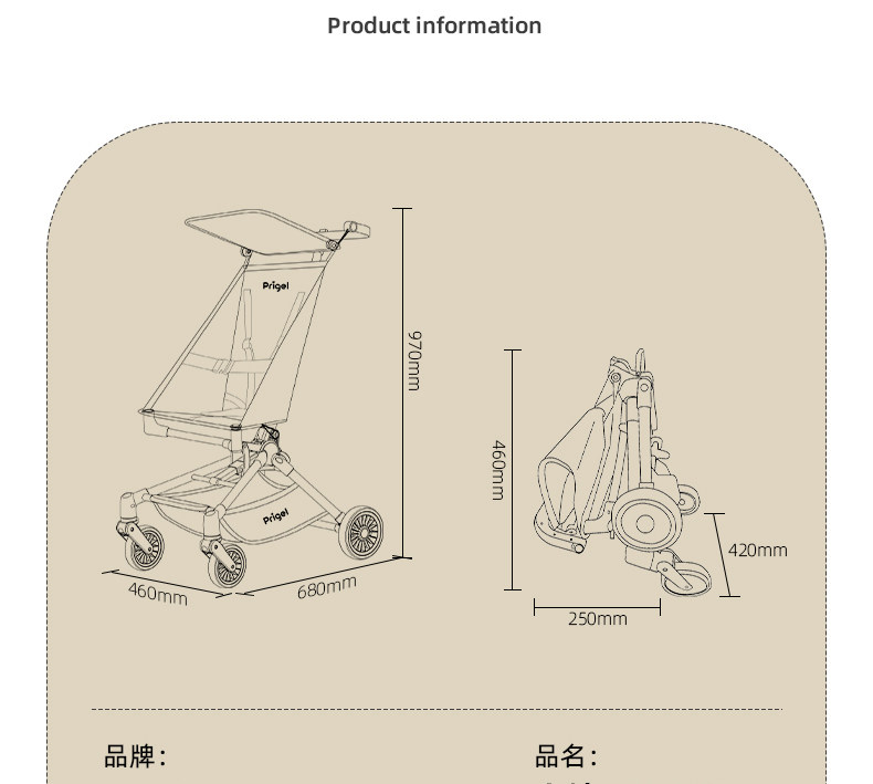Prigel Pocket Stroller, Lightweight Foldable Baby Stroller, Easy-To-Use Stroller for Walking with Children, Baby Stroller, Kids Stroller
