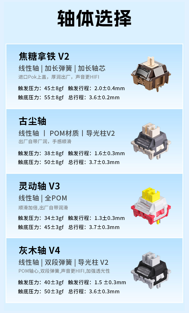 | Axis Name | Smart Axis V3,Gray Wood Shaft V4,Ancient Dust Shaft,Caramel Latte Axis V2 |