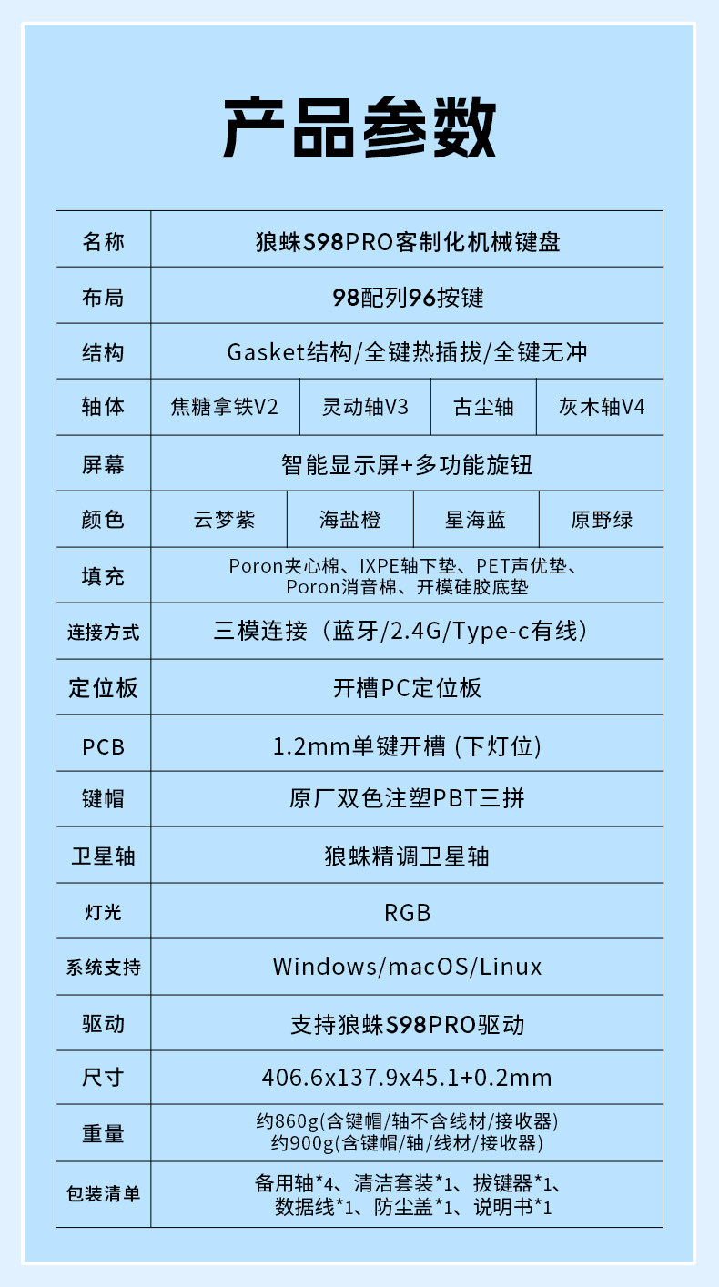 | Color Classification | S98Pro-Yunmeng Purple,S98Pro-Sea Salt Orange,S98Pro-Xinghai Blue,S98Pro-Field Green,S98Pro-Cloud Woof,S98Pro-Hua Ji Meow Meow,S98Pro-Taro Bear,S98Pro-Panda Mahjong,S98Pro - Galaxy Dream,S98Pro-Gray Island,S98Pro-Bread Bear,S98Pro-Big Bud Candy,S98Pro - Dusty Gray - Side-Engraved Gradient,S98Pro-Glacier Blue-Side Engraved Gradient,S98Pro-Xingdai Purple-Side Engraved Gradient,S98Pro-Blackberry Pink-Side Engraved Gradient,S98Pro-Blackberry Powder and Other Contour Lines-Side Engraving Gradient,S98Pro-White Contour-Side Engraving Gradient,S98Pro-Black Contour-Side Engraving Gradient,S98Pro-Taoyao Powder Contour-Side Engraving Gradient,S98Pro - Dust Gray Contour - Side-Engraved Gradient,S98Pro-Xingdai Purple Contour Lines-Side Engraving Gradient,S98Pro - Glacier Blue Contour - Side-Engraved Gradient |