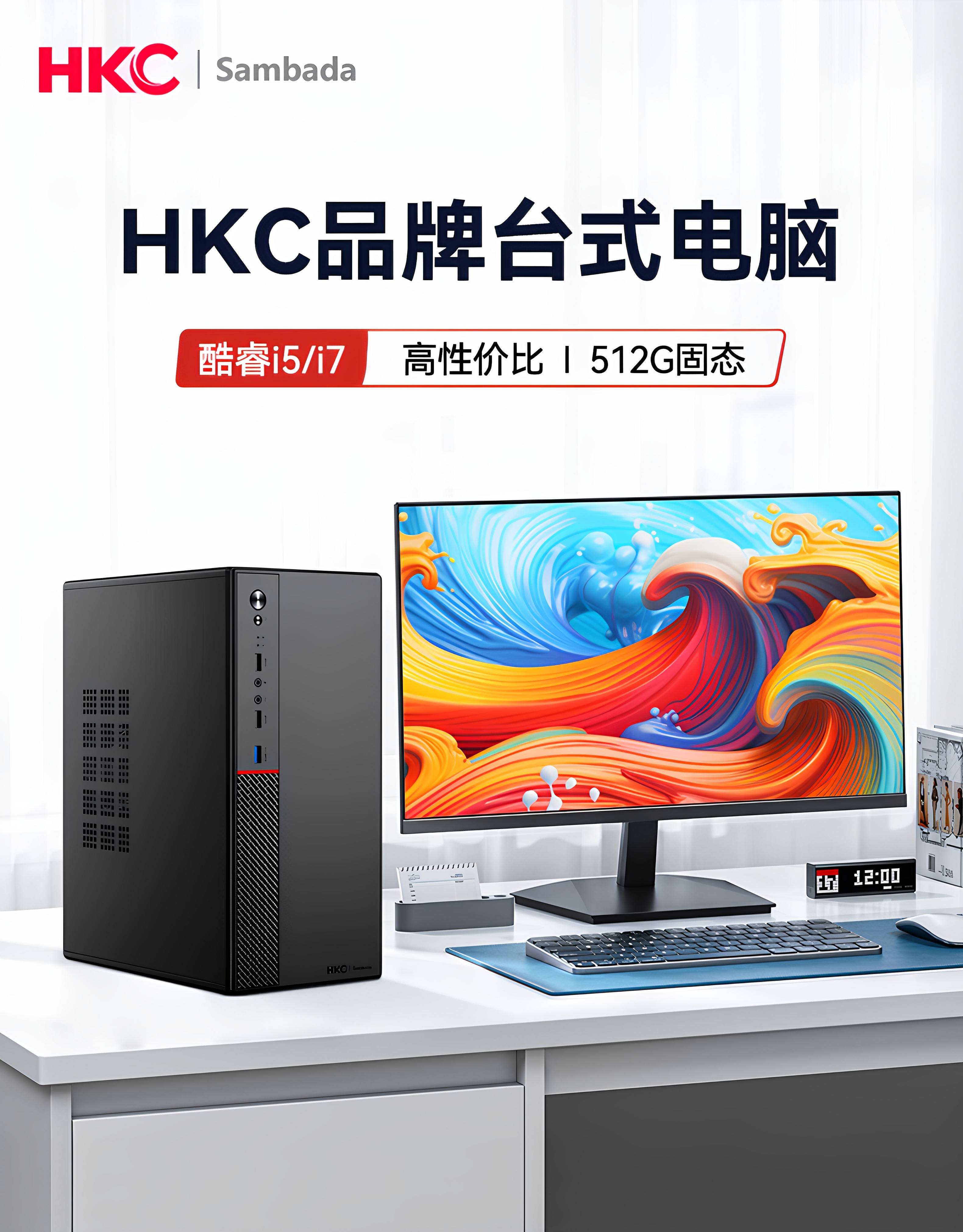 [*Thousand-Yuan Computer] Hkc Brand Home Office Desktop Computer Host Sambada Mini Small Case Enterprise Purchase Business Online Course New Product I5I7 Complete Set Genuine Product