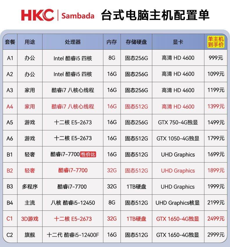 | Color Classification | A1: [Office] Core I5 Quad-Core/8G/256G Solid State,A2: [Office] Core I5 Quad-Core/16G/256G Solid State/Wifi,A3: [Home] Core I7 Eight-Core/16G/256G Solid State,A4: [Home] Core I7 Eight-Core/16G/512G Solid State/Wifi,A5: [Game] 12-Core E5/16G/256G Solid State/4G Independent Display,A6: [Game] 12-Core E5/16G/512G Solid State/1050-4G Independent Display/Wifi,B1: [Light Luxury] Core I7-7700/16G/512G Solid State Drive/Wifi,B2: [Light Luxury] Core I7-7700/32G/512G Solid State Drive/Wifi,B3: [Multiple Programs] Core I7-7700/32G/1000G Hard Drive/Wifi,B4: [Mainstream] 12Th Generation Eight-Core Core I5-12450/8G/512G Solid State/Wifi,C1: [3D Game] 12-Core E5-2673/32G/1Tb Hard Drive/Gtx1650 Independent Graphics/Wifi,C2: [Flagship] 12Th Generation Core I5-12400F/16G/512G Solid State/Gtx1650 Independent Display/Wifi |