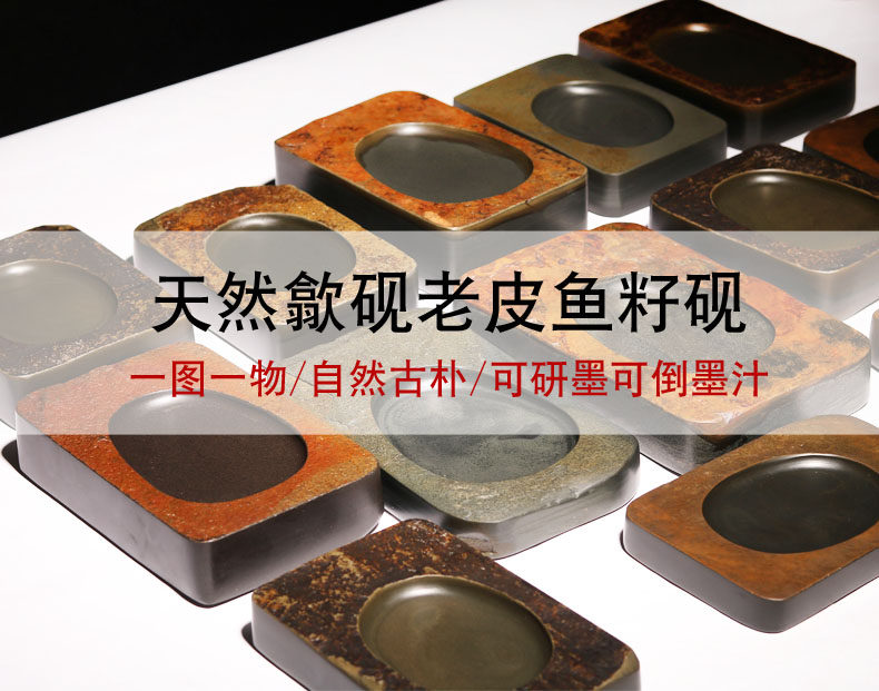 Anhui Sheyan Natural Raw Stone Jiyuan Pit Old Skin Fish Roe Handmade Deep Pool Inkstone, Four Treasures of the Study, Special for Grinding Ink, Calligraphy, Chinese Painting, Classic Plain Inkstone, Old Pit Premium Square Inkstone
