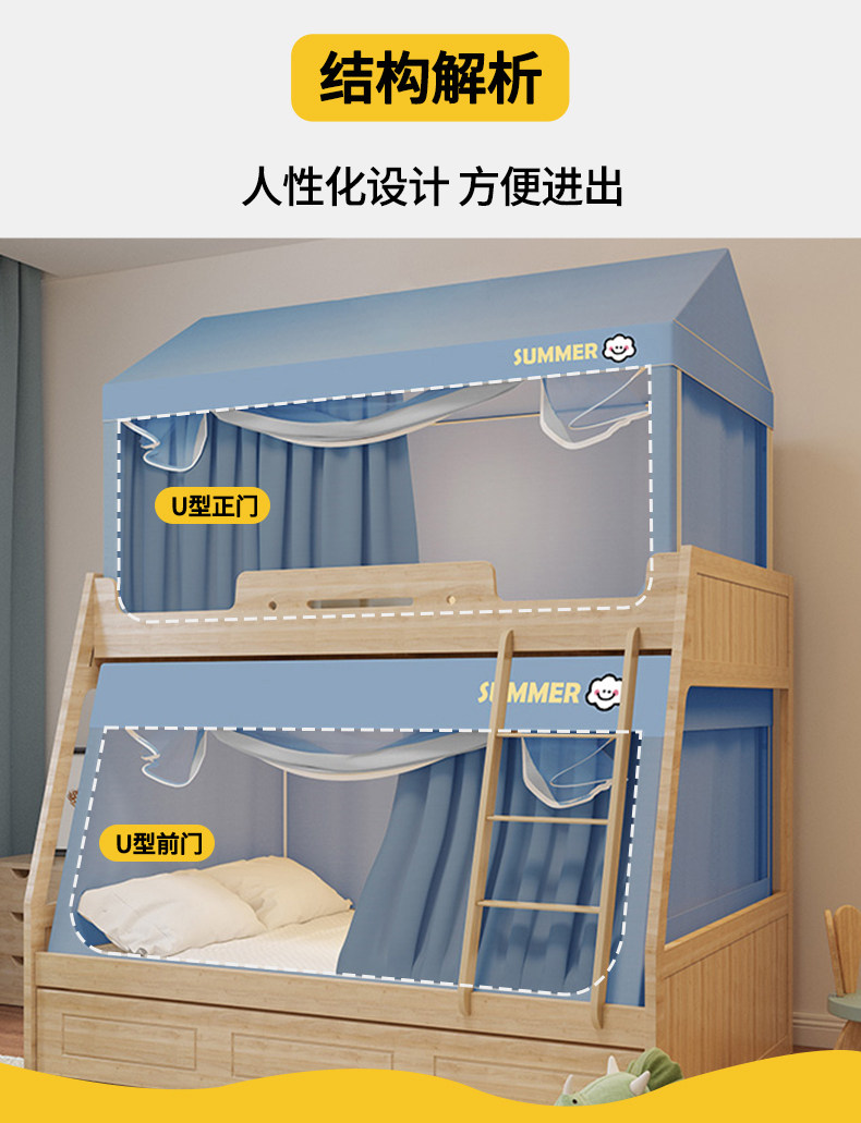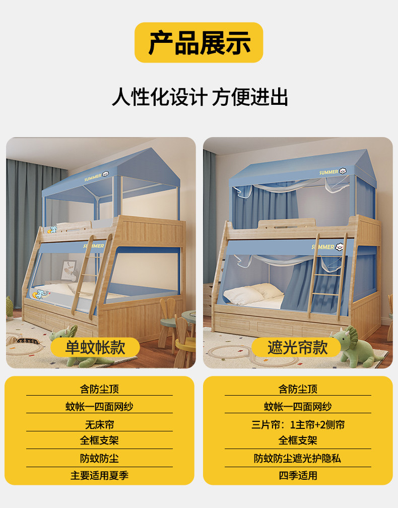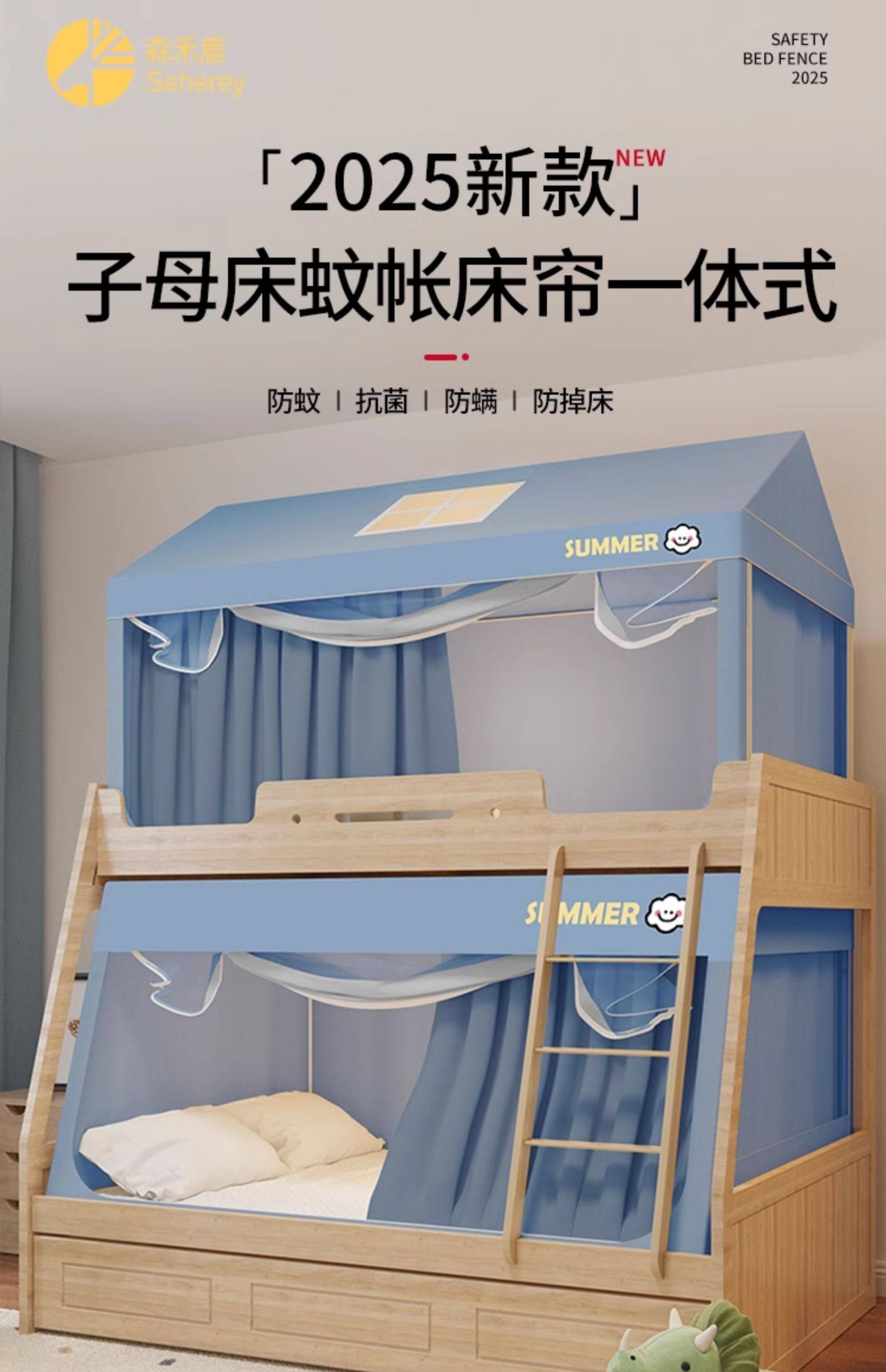 Mosquito Net for Bunk Bed, Blackout Bed Curtain, All-In-One Integrated Design, Special for Bunk Beds, 2025 New Model, Children's Bunk Bed Mosquito Net