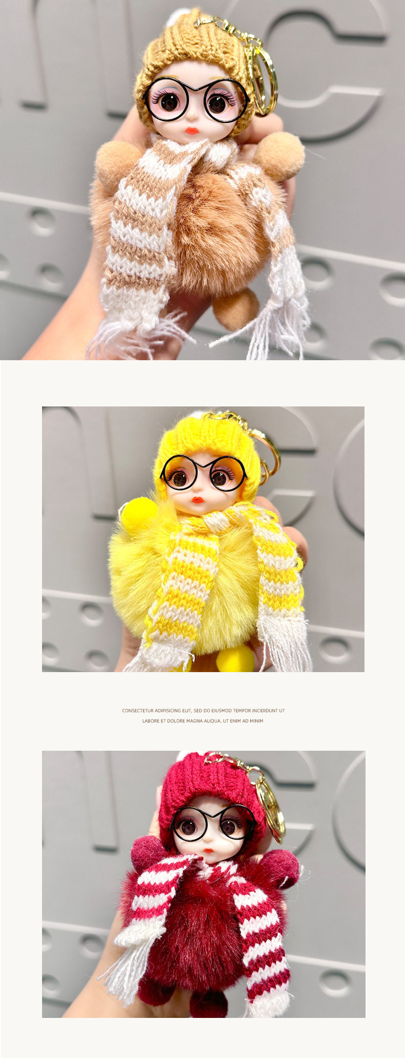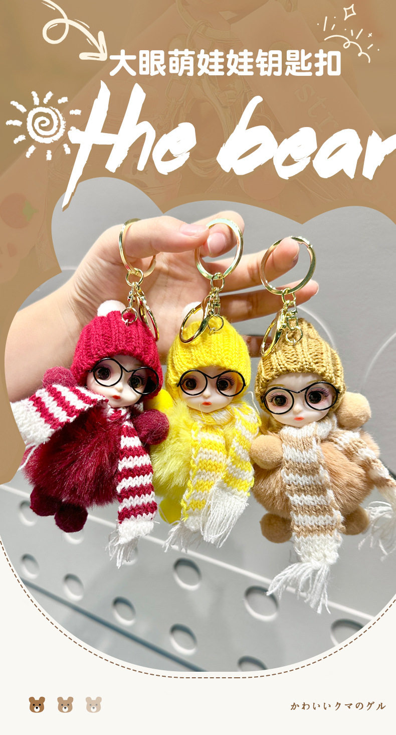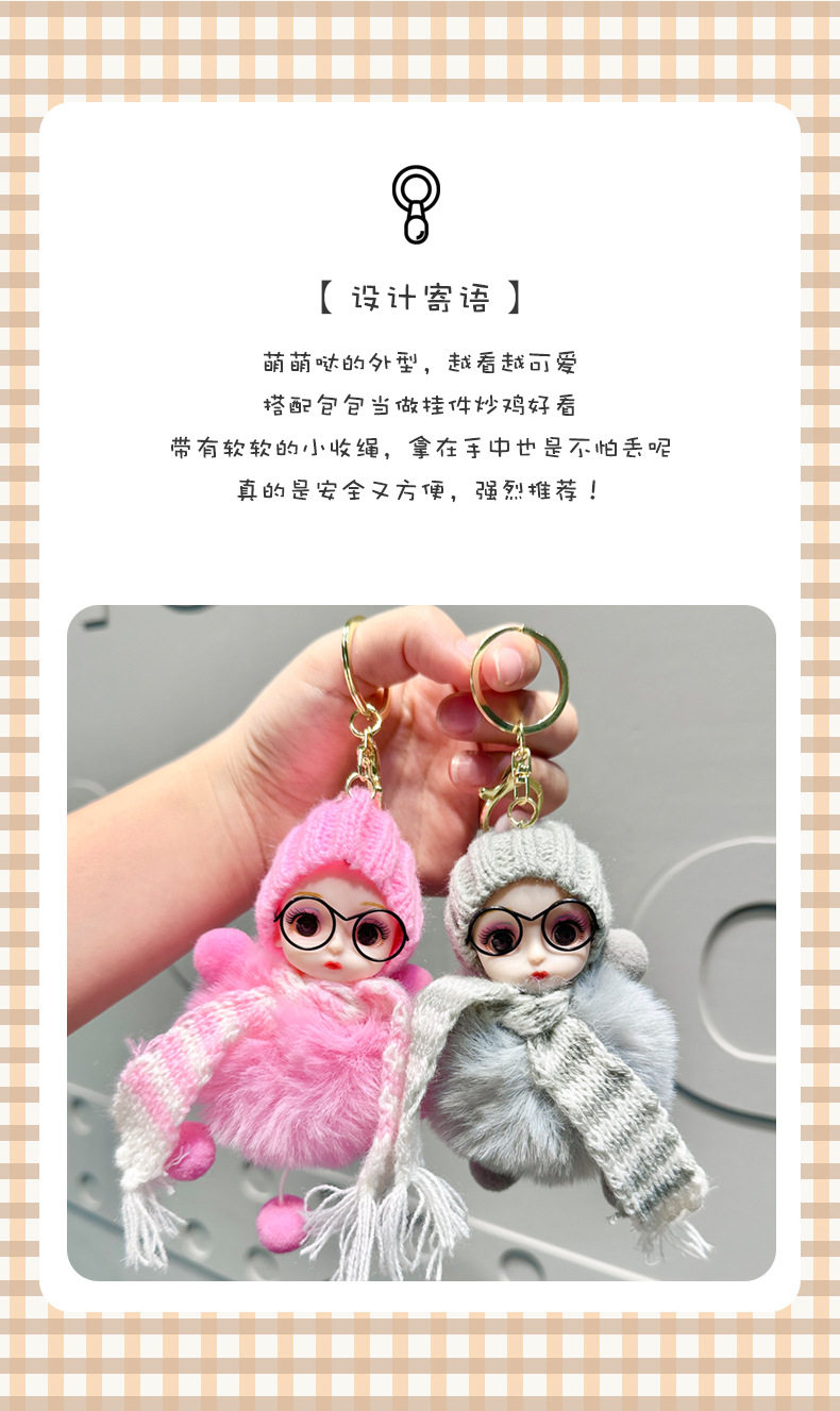 Xiaohongshu Internet Celebrity Cute Faux Fox Fur Big-Eyed Barbie Doll Keychain Bag Plush Pendant Accessory for Women