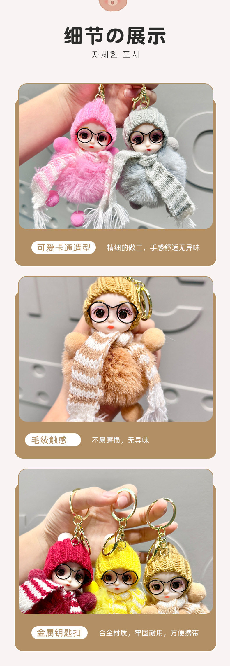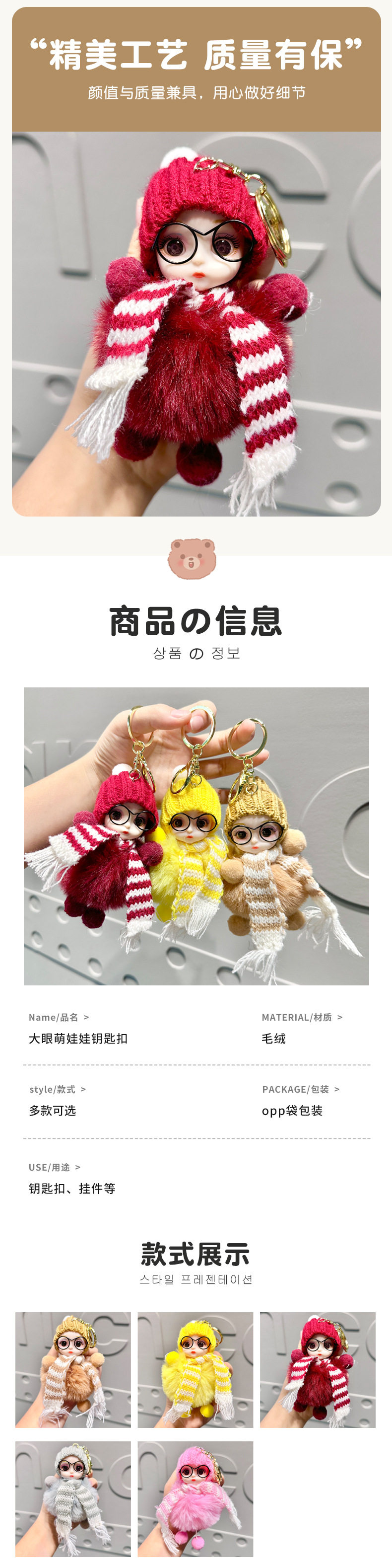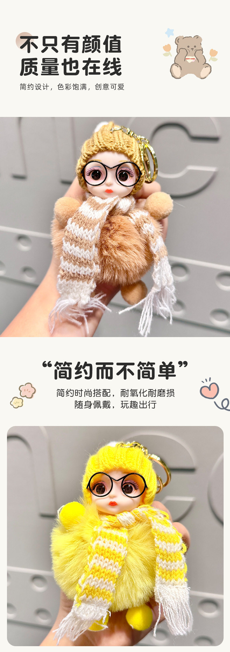 Xiaohongshu Internet Celebrity Cute Faux Fox Fur Big-Eyed Barbie Doll Keychain Bag Plush Pendant Accessory for Women