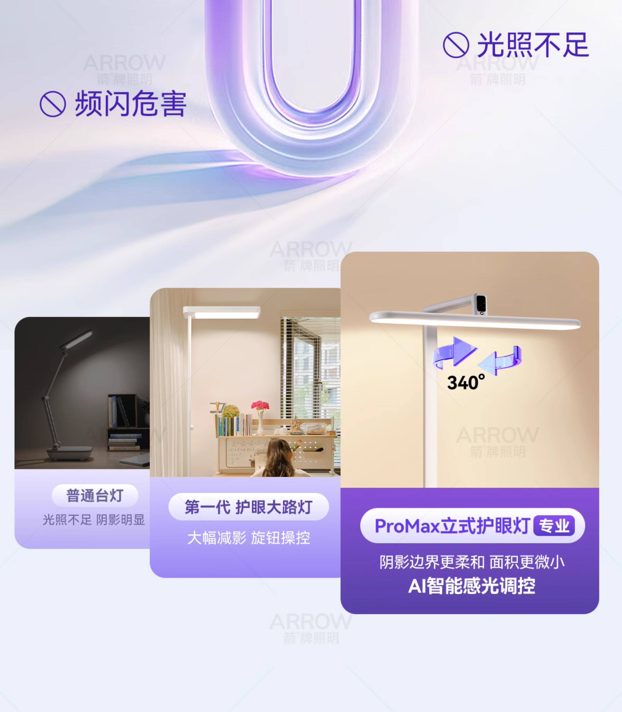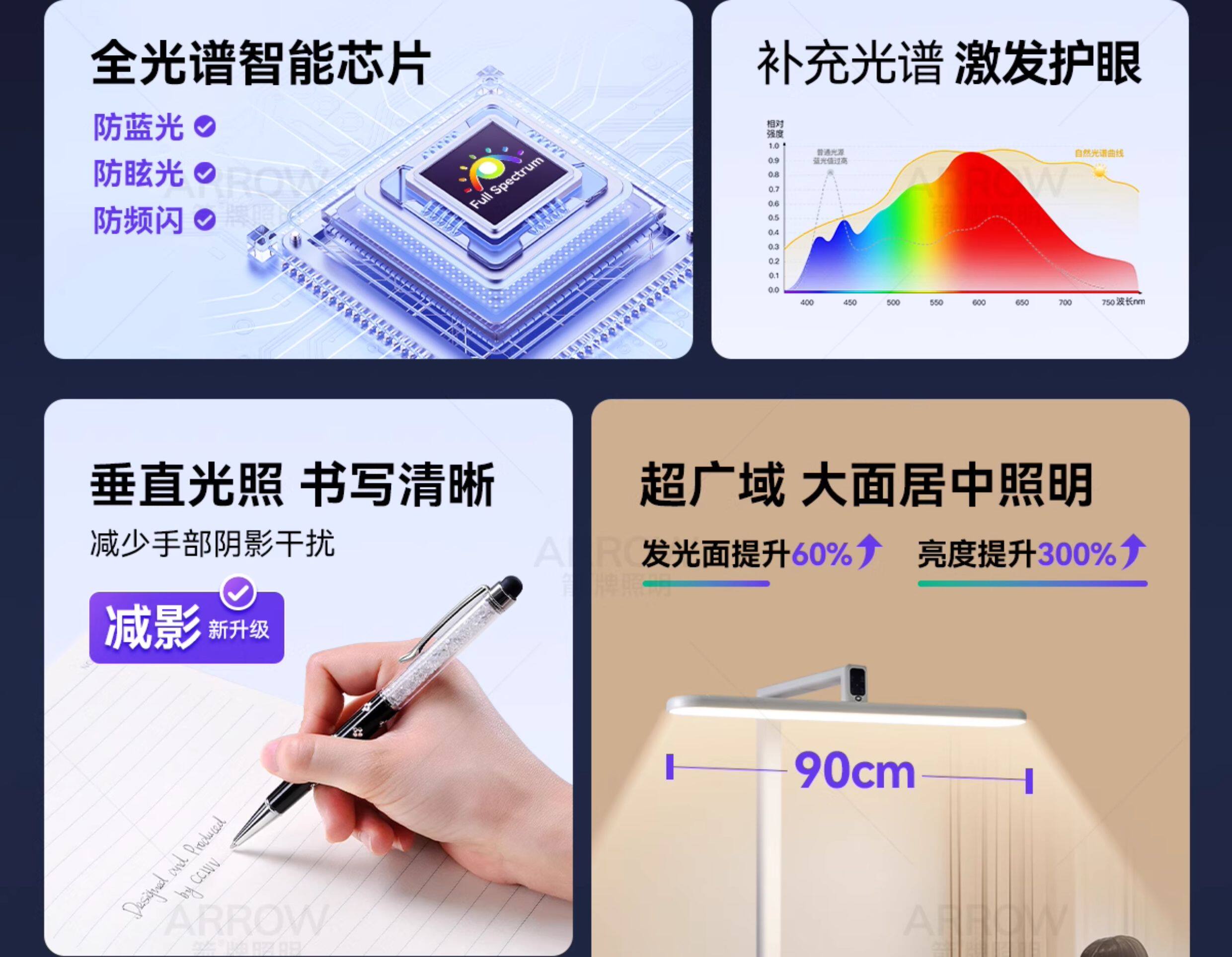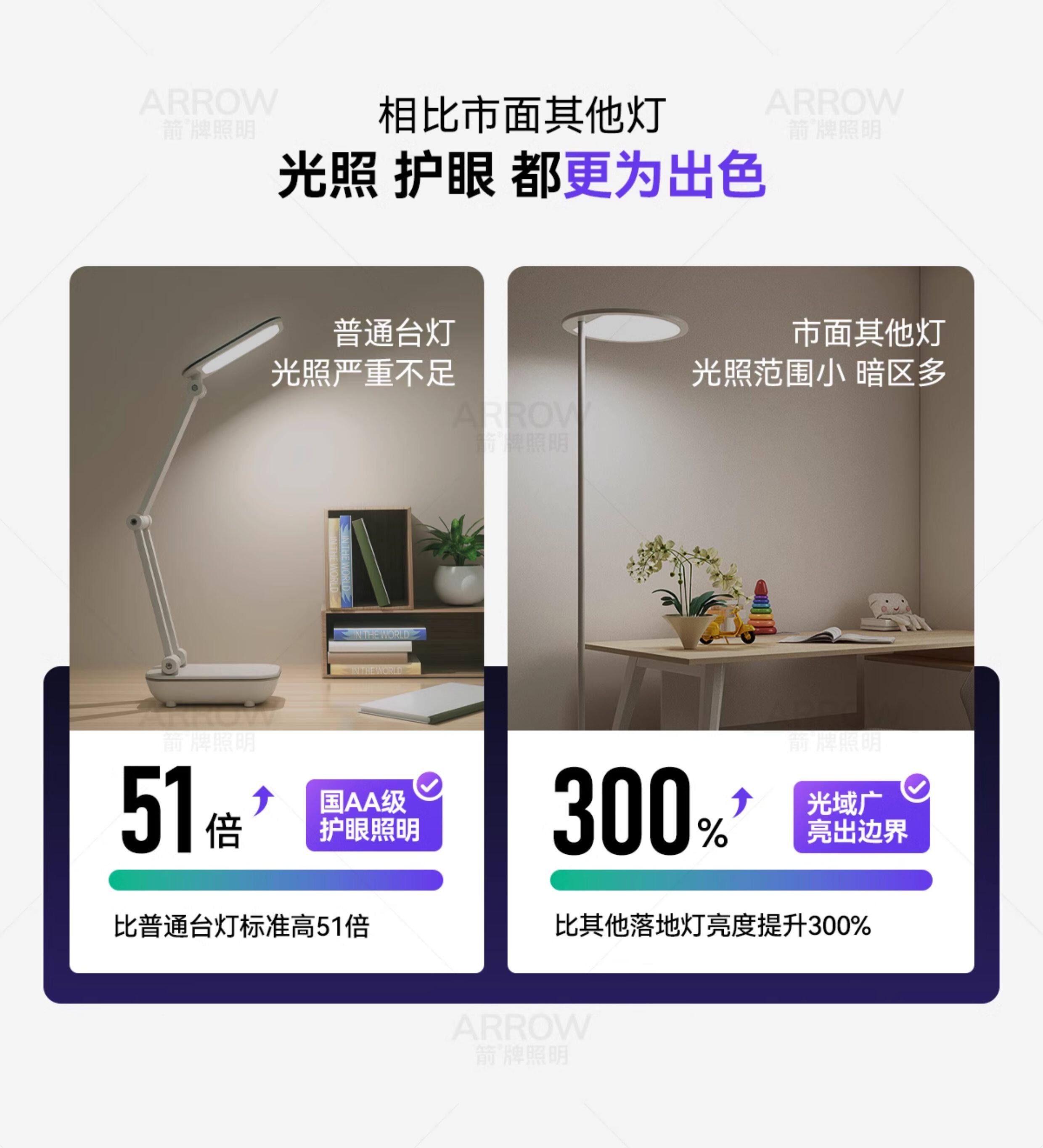 Arrow Brand Large Lamp for Eye Protection, Special for Studying, Reading, Standing Desk Lamp, Rotatable Lamp Head, Floor Lamp, Student Piano Lamp