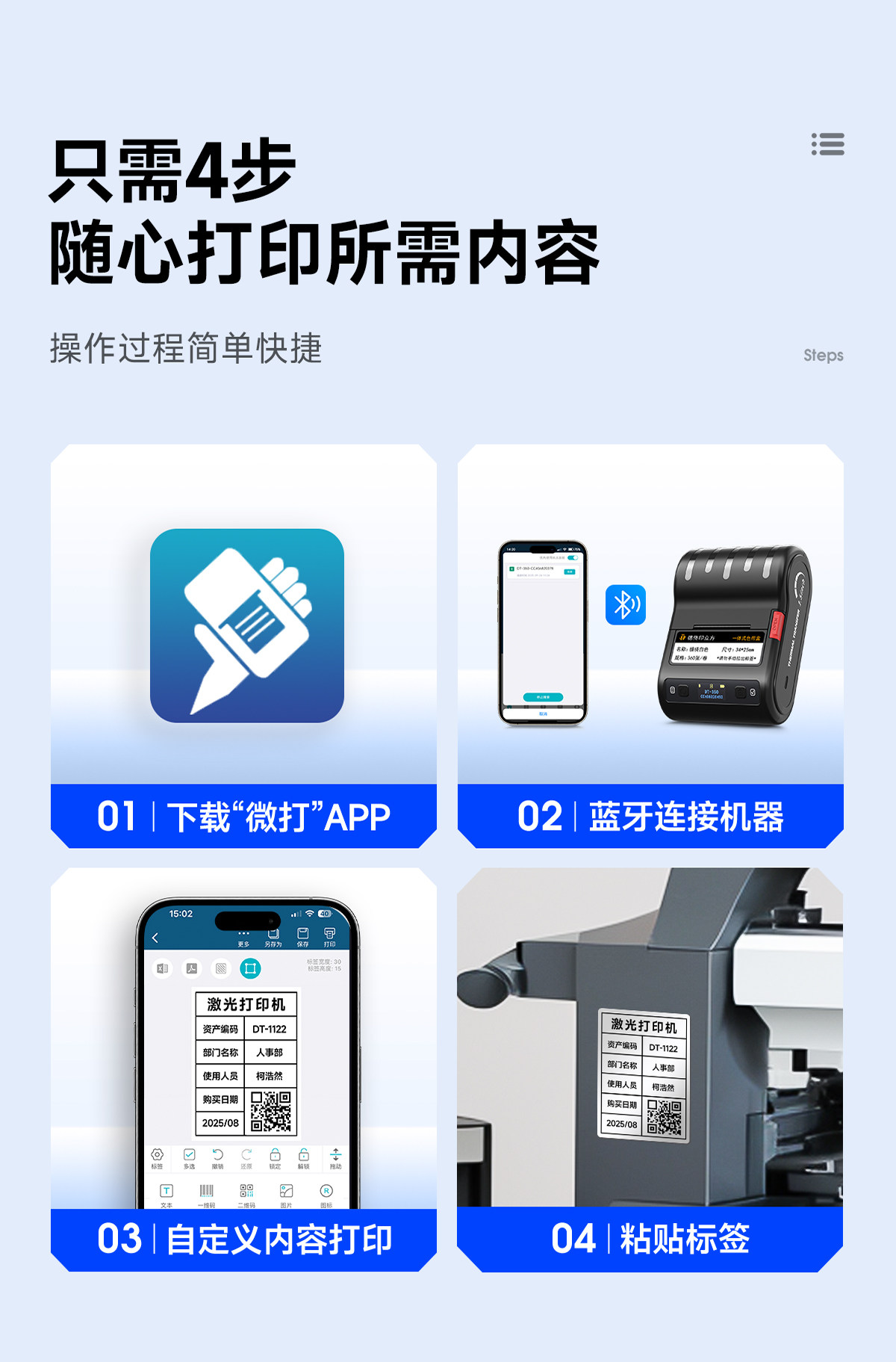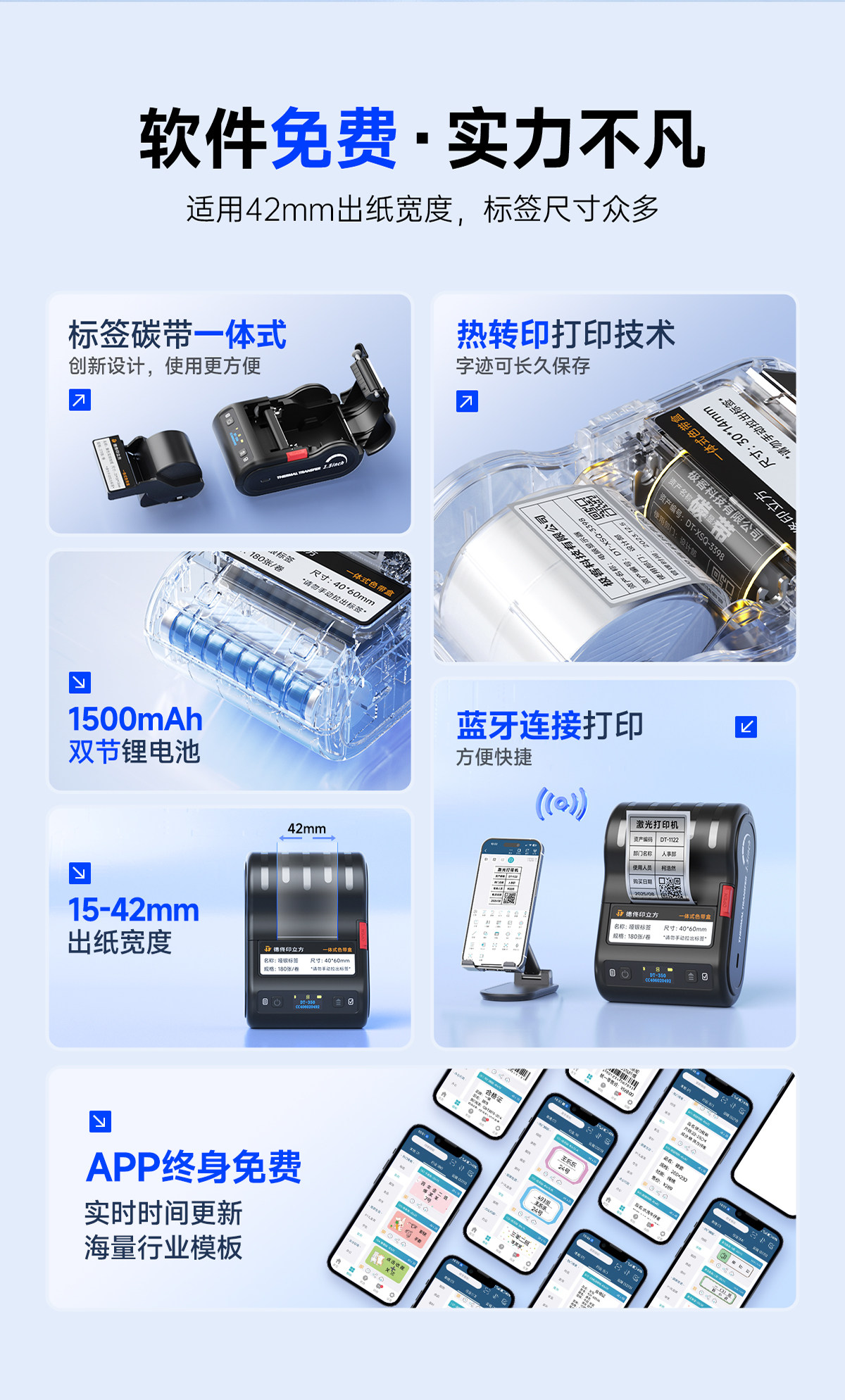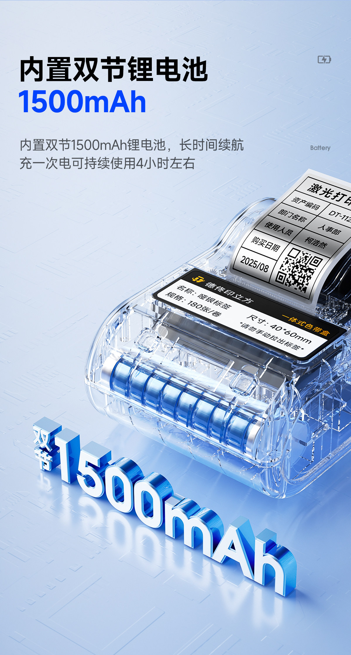 Detong Office Dt-350 Sunproof and Fade-Resistant Qr Code Label Printer Handheld Portable Bluetooth Small Thermal Transfer Silver Sticker Waterproof High Temperature Resistant Ribbon Barcode Label Machine