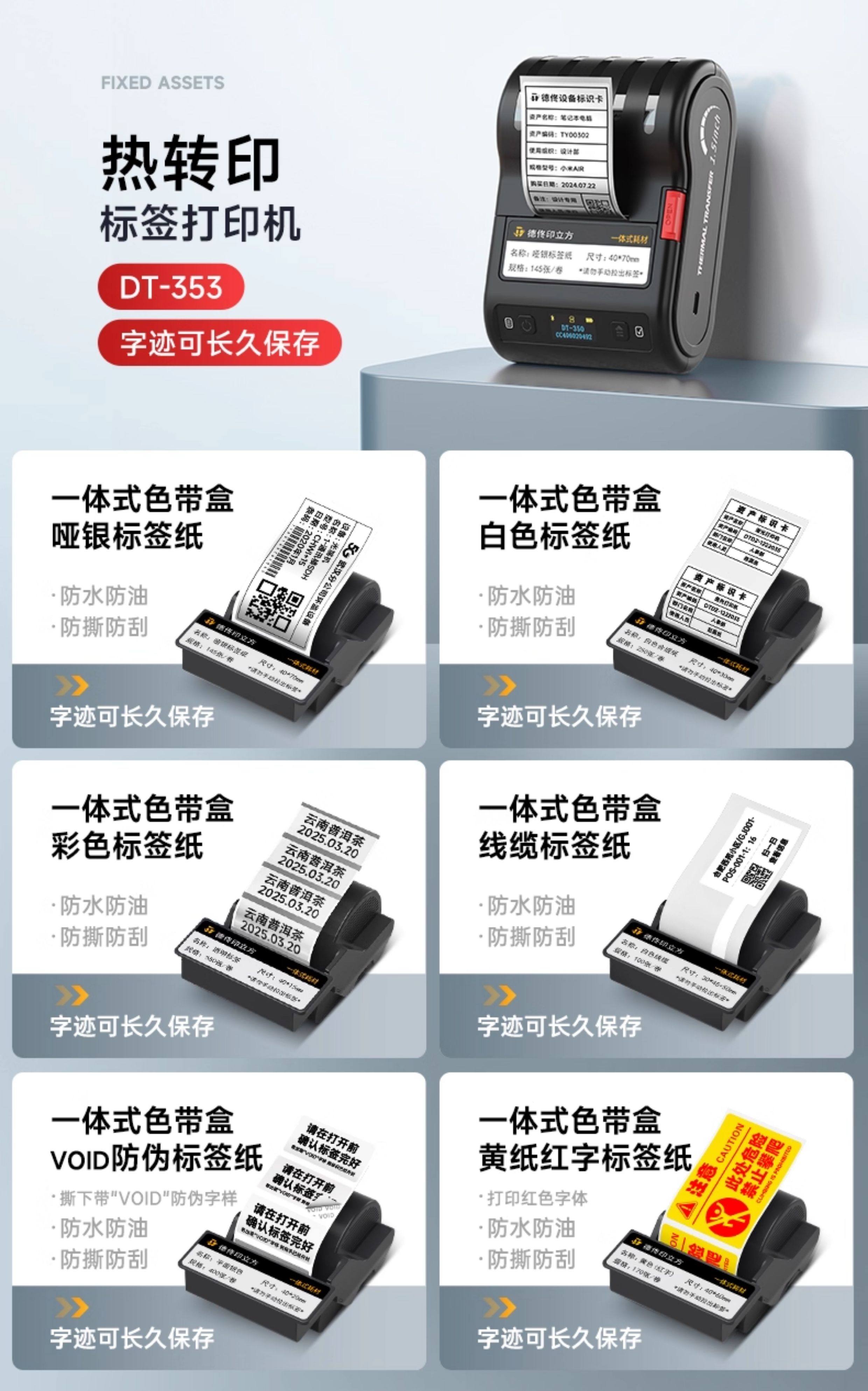 | Color Classification | The Label Is Durable, Waterproof, Oil-Proof and Fade-Proof, and the Size Is Replaceable,Dt-350+ Comes with 1 Roll of 20*20 Matte Silver Label Ribbon Box,Dt-350+3 Rolls of 20*20 Matte Silver Label Ribbon Box,Dt-350+7 Roll 20*20 Matte Silver Label Ribbon Box,Dt-350+ Comes with 1 Roll of 30*30 Matte Silver Label Ribbon Box,Dt-350+3 Rolls of 30*30 Matte Silver Label Ribbon Box,Dt-350+7 Rolls 30*30 Matte Silver Label Ribbon Box,Dt-350+ Comes with 1 Roll of 40*40 Matte Silver Label Ribbon Box,Dt-350+3 Rolls 40*40 Matte Silver Label Ribbon Box,Dt-350+7 Rolls 40*40 Matte Silver Label Ribbon Box,Dt-350+ Comes with 1 Roll of 20*20 White Label Ribbon Box,Dt-350+3 Rolls of 20*20 White Label Ribbon Box,Dt-350+7 Roll 20*20 White Label Ribbon Box,Dt-350+ Comes with 1 Roll of 30*30 White Label Ribbon Box,Dt-350+3 Rolls of 30*30 White Label Ribbon Box,Dt-350+7 Roll 30*30 White Label Ribbon Box,Dt-350+ Comes with 1 Roll of 40*40 White Label Ribbon Box,Dt-350+3 Rolls 40*40 White Label Ribbon Box,Dt-350+7 Roll 40*40 White Label Ribbon Box,Dt-350+ Comes with 1 Roll of 40*30 Yellow Label Ribbon Box,Dt-350+3 Rolls 40*30 Yellow Label Ribbon Box,Dt-350+7 Roll 40*30 Yellow Label Ribbon Box,Dt-350+ Comes with 1 Roll of 40*30 Matte Silver Label Ribbon Box,Dt-350+3 Rolls 40*30 Matte Silver Label Ribbon Box,Dt-350+7 Rolls 40*30 Matte Silver Label Ribbon Box,Dt-350+ Comes with 1 Roll of 40*60 Matte Silver Label Ribbon Box,Dt-350+3 Rolls 40*60 Matte Silver Label Ribbon Box,Dt-350+7 Rolls 40*60 Matte Silver Label Ribbon Box,Dt-350+ Comes with 1 Roll of 40*30 White Label Ribbon Box,Dt-350+3 Rolls 40*30 White Label Ribbon Box,Dt-350+ Comes with 1 Roll of 10*30/3 Rows of Yellow Small Label Ribbon Box,Dt-350+3 Rolls of 10*30/3 Rows of Yellow Small Label Ribbon Box,[300 Points Hd] Dt-353+1 Roll 40*30 Matte Silver Label Ribbon Box,[300-Point Hd] Dt-353+1 Roll 40*30 White Label Ribbon Box,[300 Points Hd] Dt-353+1 Roll 40*30 Yellow Label Ribbon Box,[300 Points Hd] Dt-353+1 Roll 40*30 Transparent Label Ribbon Box,[300 Points Hd] Dt-353+1 Roll 40*60 Matte Silver Label Ribbon Box,Wide Format Large Size 5250+ Free 1 Roll 50*50 Matte Silver Label Ribbon Box,Wide Format Large Size 5250+ Free 1 Roll 60*90 Matte Silver Label Ribbon Box |