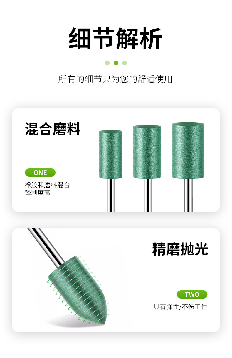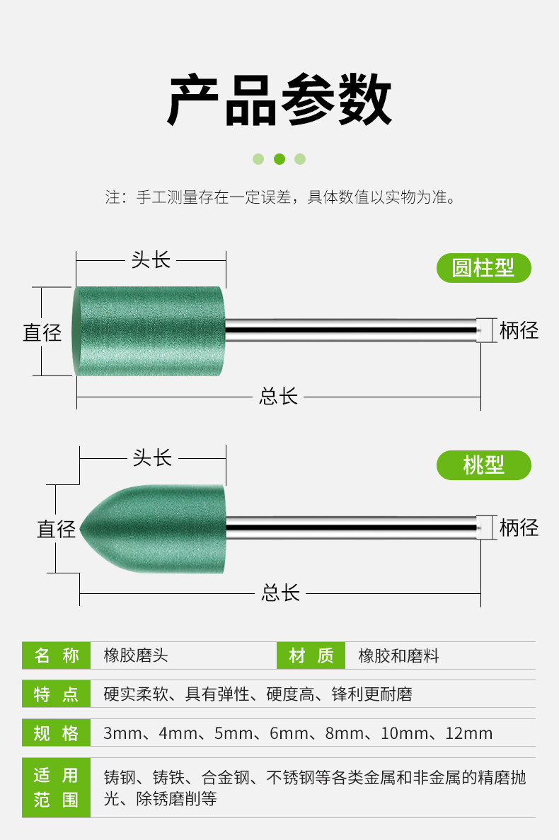 Large White Shark Rubber Grinding Head Cylindrical Peach-Shaped 3mm Shank Air Grinder Rubber Metal Wood Polishing Soft Grinding Head