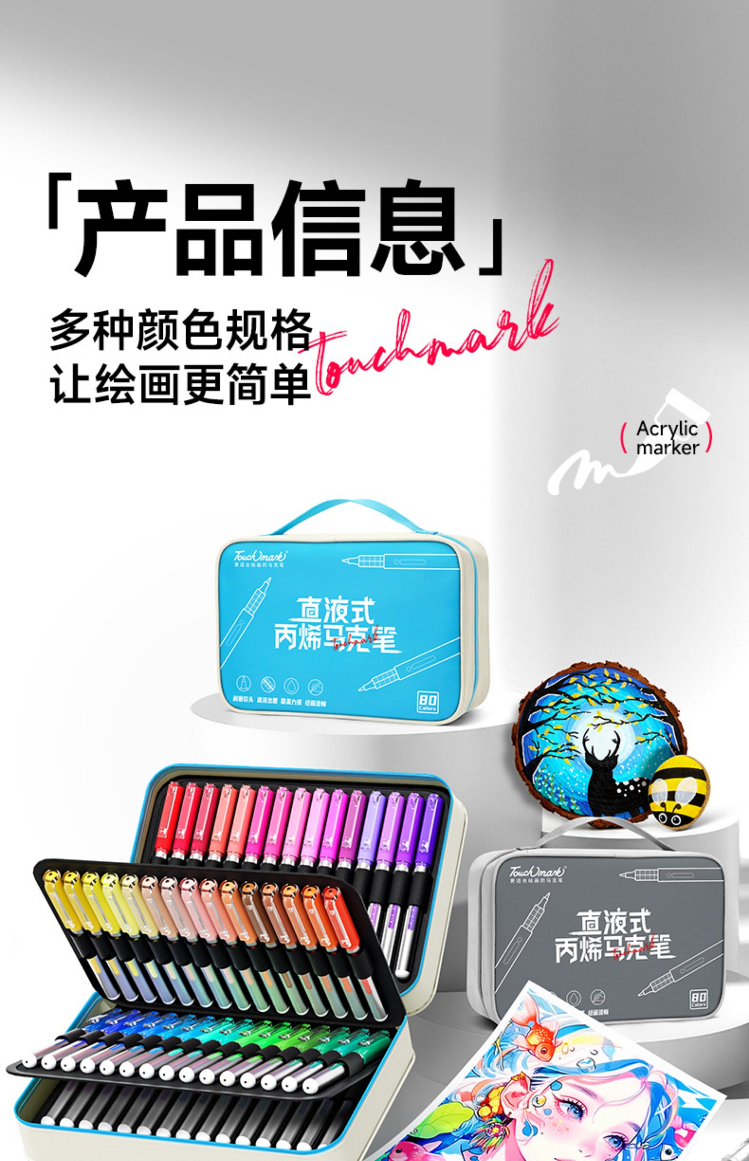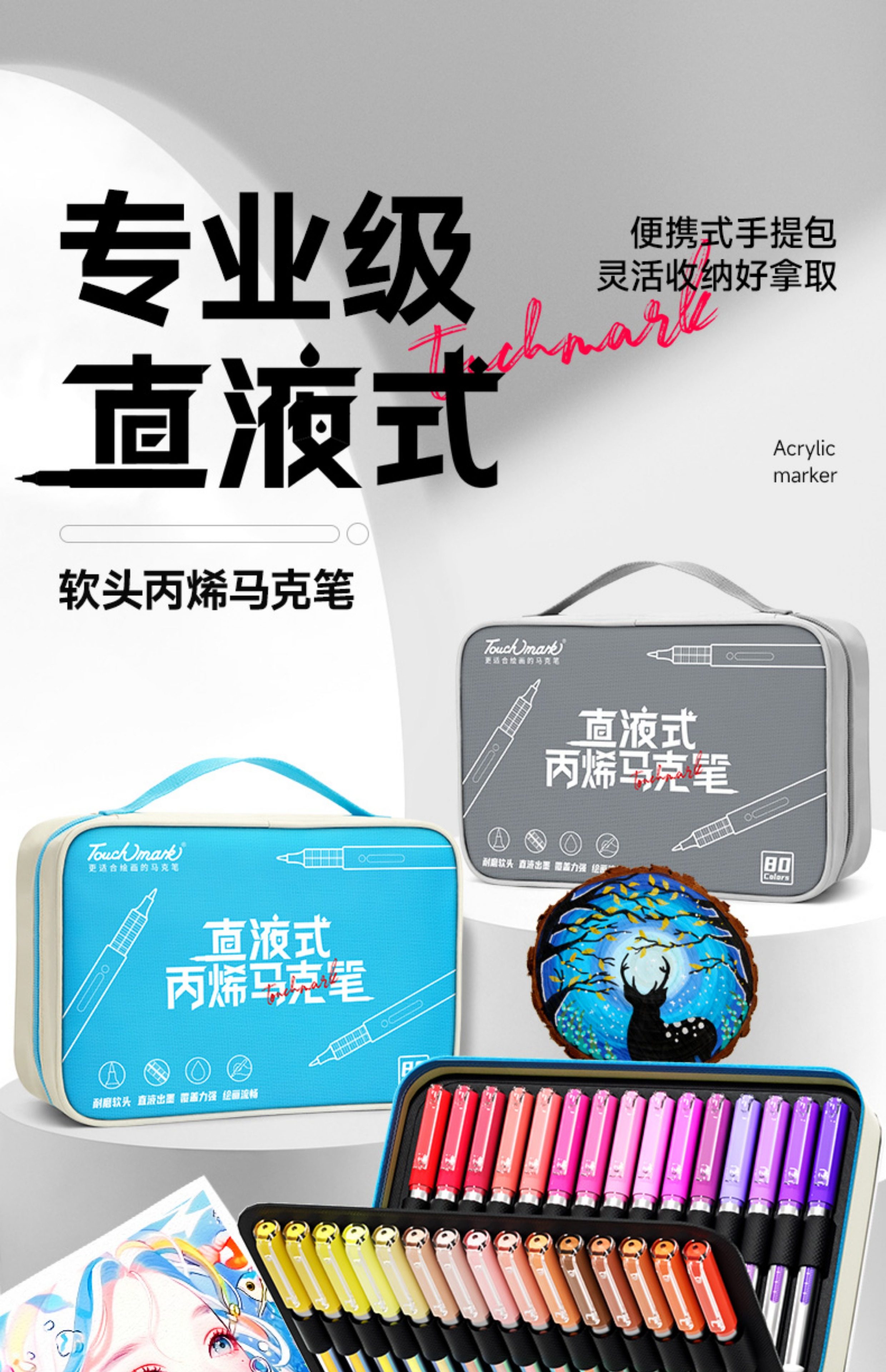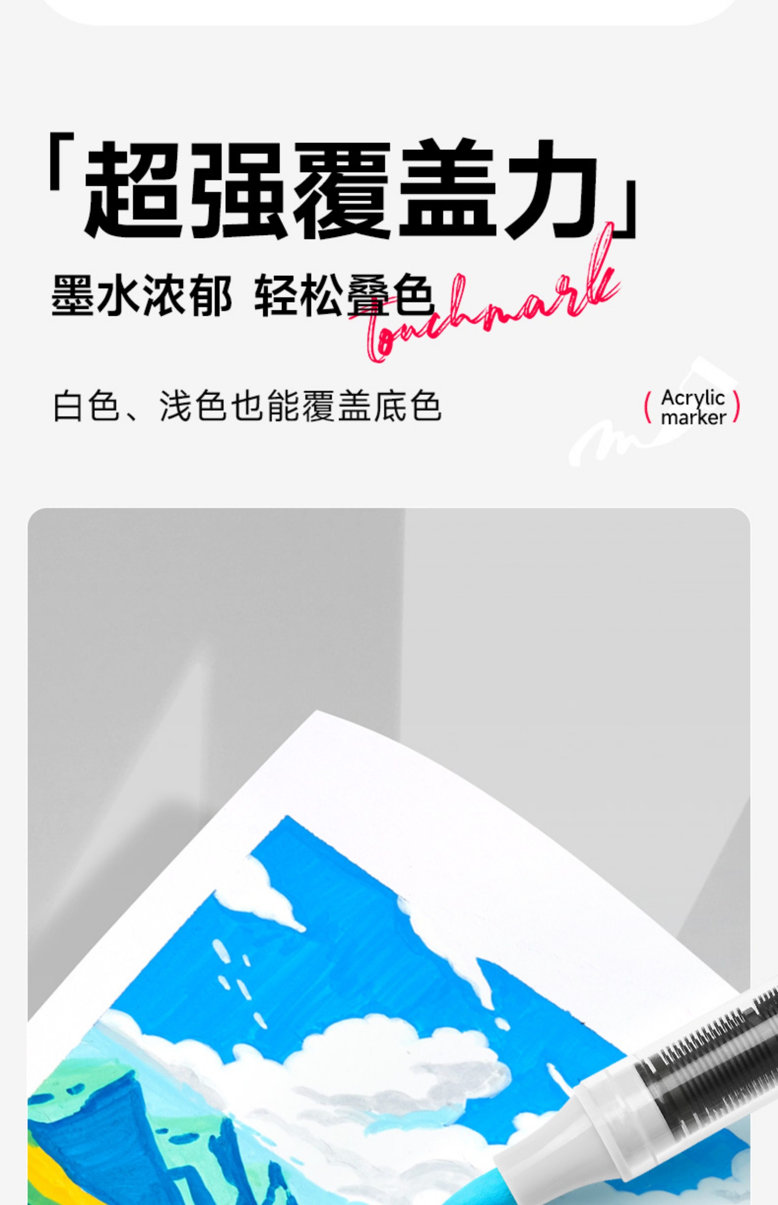Touchmark Direct Liquid Acrylic Markers for Elementary School Students, Art-Specific, Opaque, Blendable, Soft Tip, 60 Colors, 80 Colors, Acrylic Watercolor Pens for Middle School Students, Children's Colored Drawing Pens