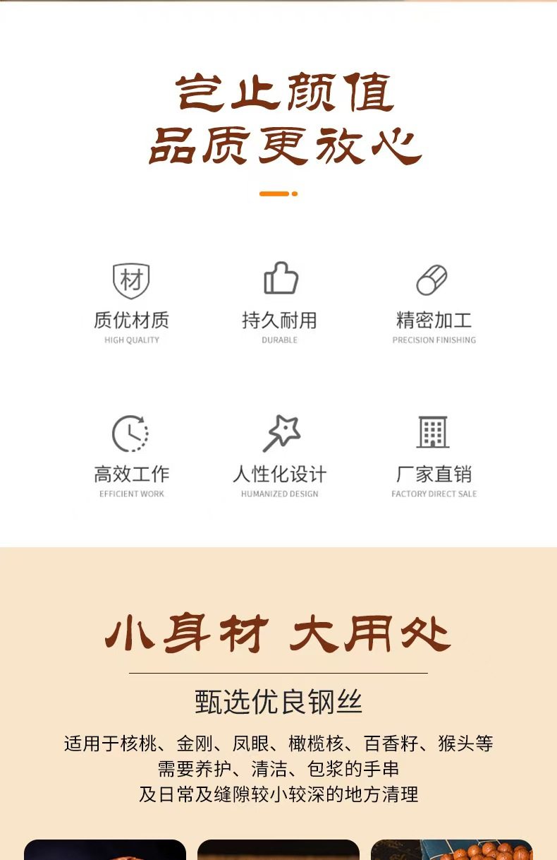 Wire Brush with Hard Bristles for Cleaning Vajra Bodhi Beads, Monkey Head Beads, Walnuts, Rust Removal, Toothbrush for Cleaning Gaps and Seams