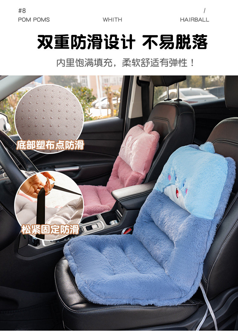 Cartoon One-Piece Car Seat Cushion, Imitation Rabbit Fur Cushion, Lumbar Support Cushion, Chair Cushion, Fleece-Lined, Non-Slip, Car-Mounted, Warm, Winter Plush