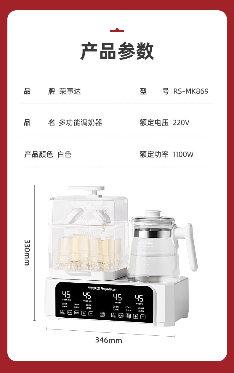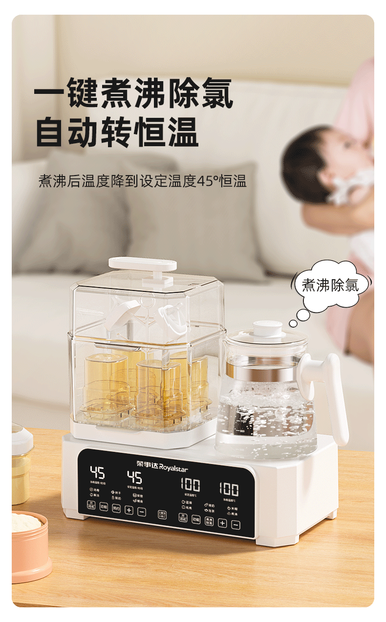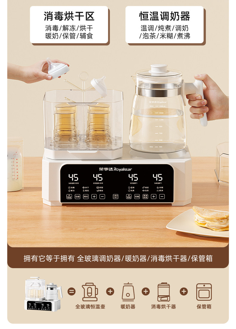 Royalstar Milk Warmer Sterilizer All-Glass Constant Temperature Kettle Bottle Dryer Two-In-One Baby Breast Milk Warmer