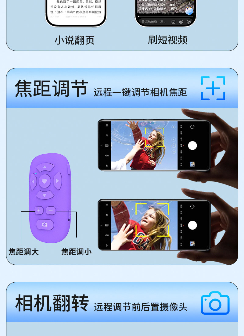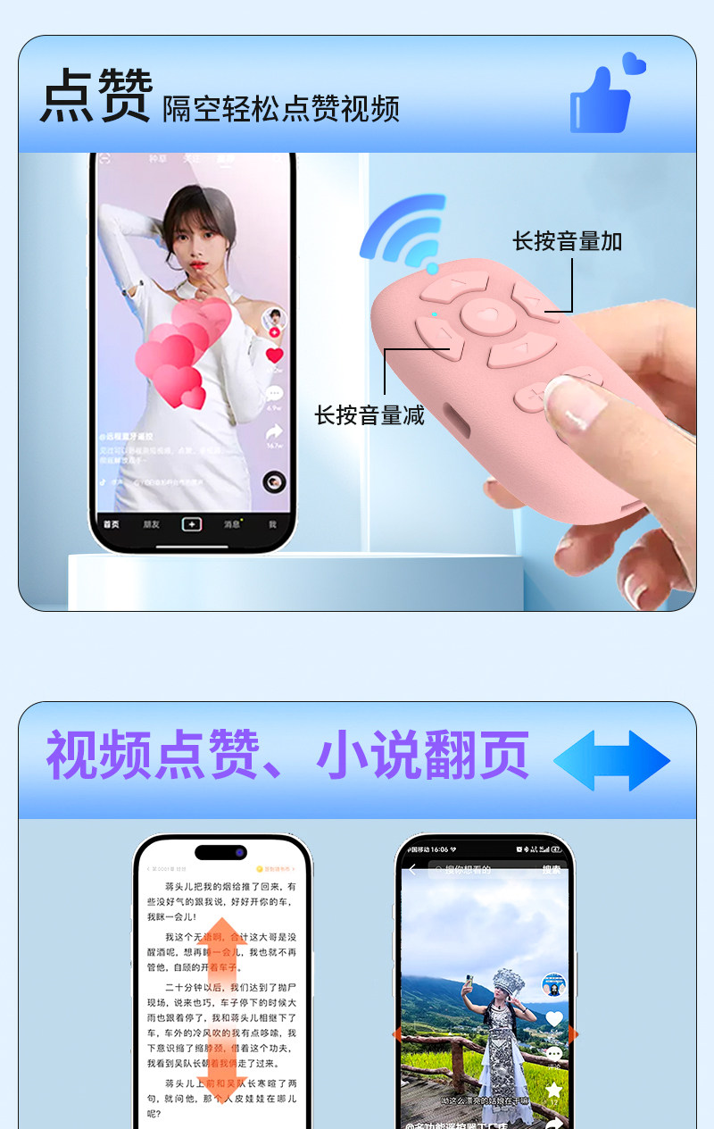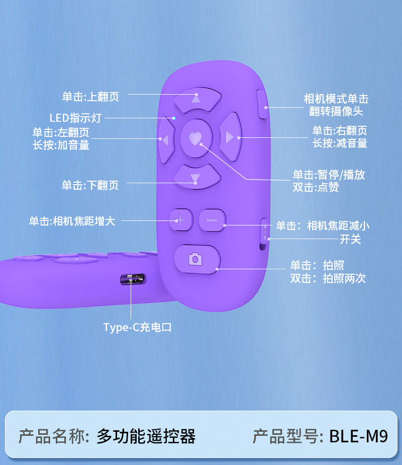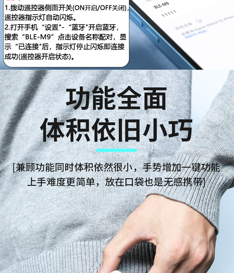 Muzhten/Mudan Multifunctional Mobile Phone Remote Control, Nine-Button Zoom Remote Control, Bluetooth Camera for Taking Photos and Videos, Zoom Camera, Page-Turning, Short Video Browsing, Follow-Up Shooting, Gimbal Bluetooth Remote Control