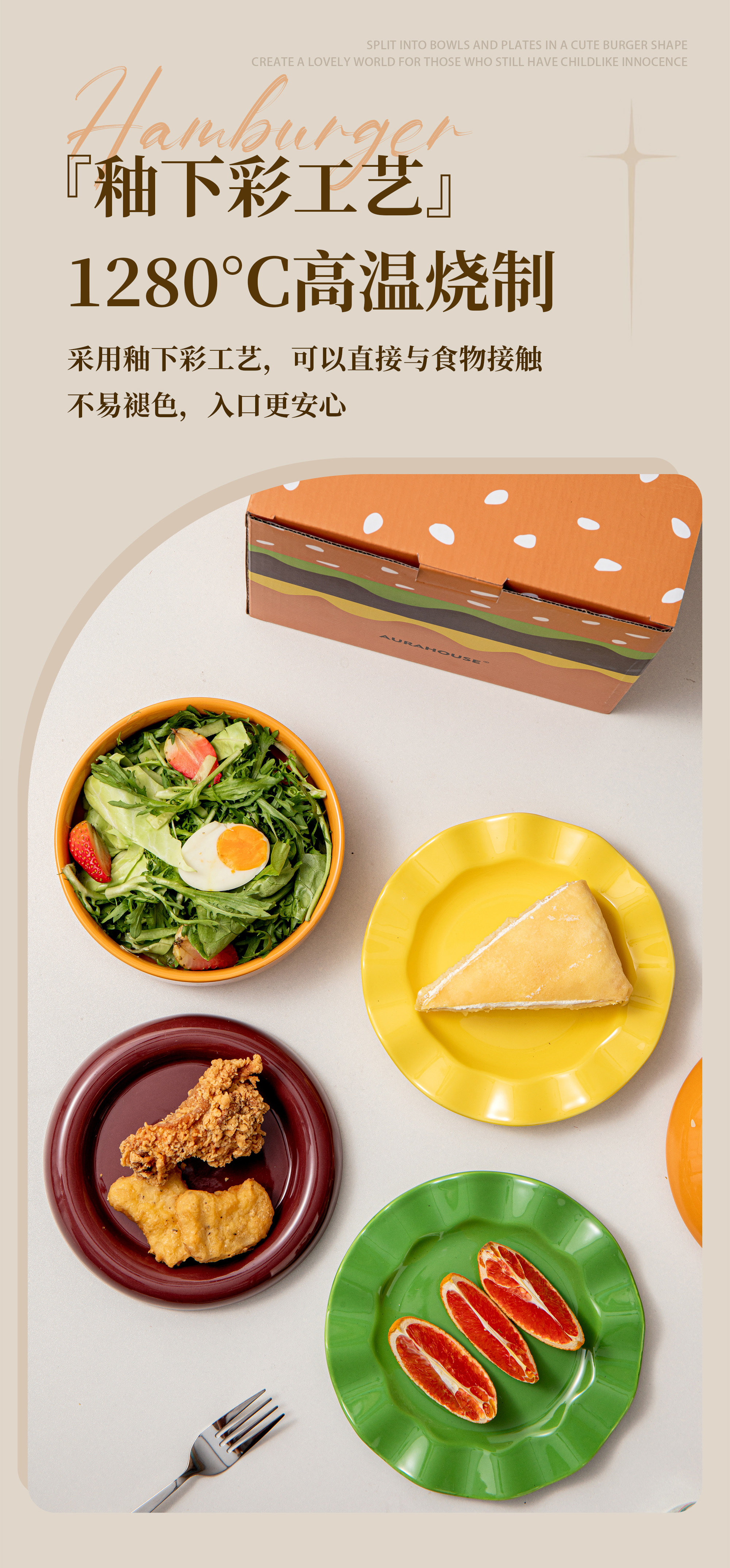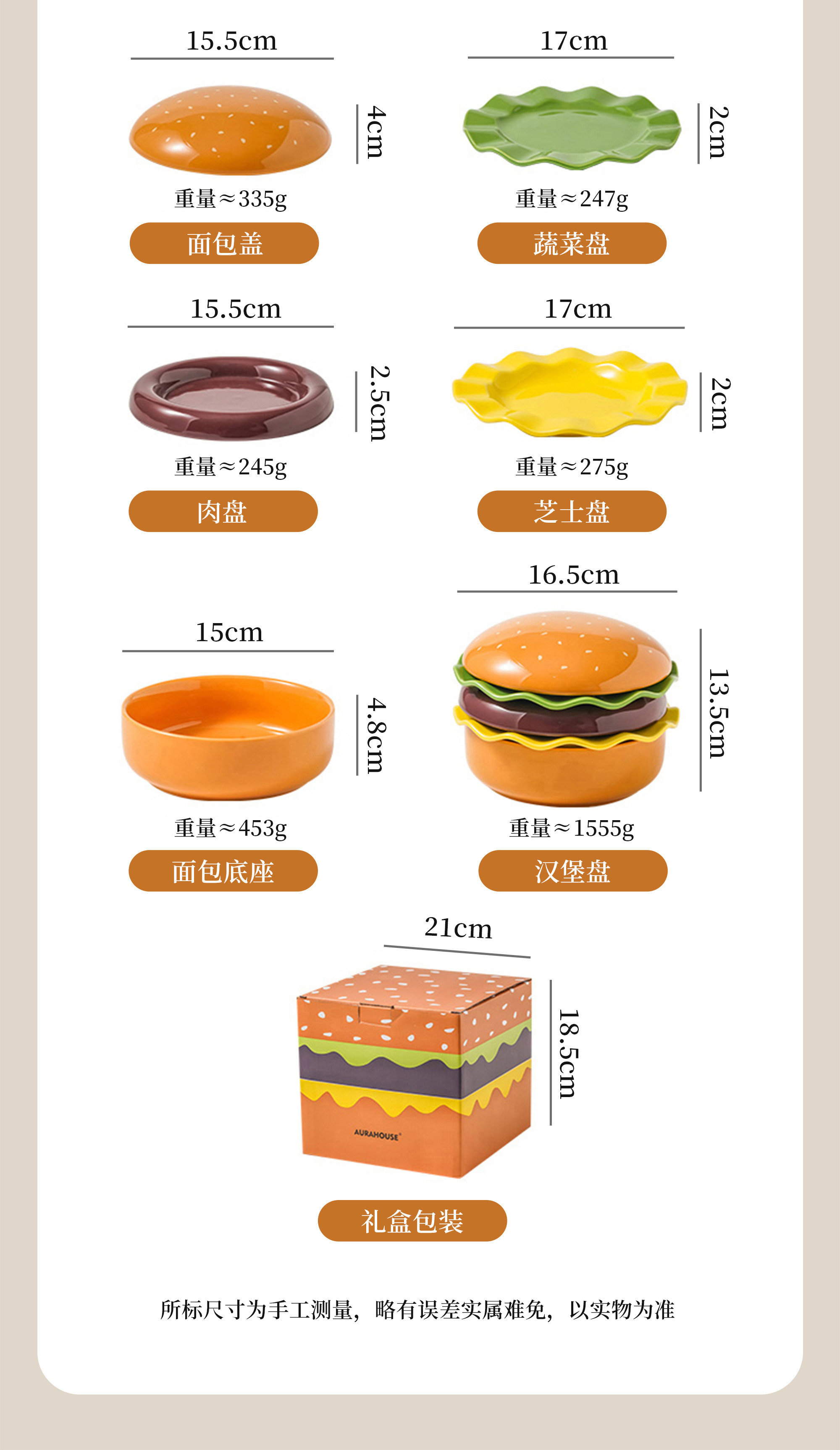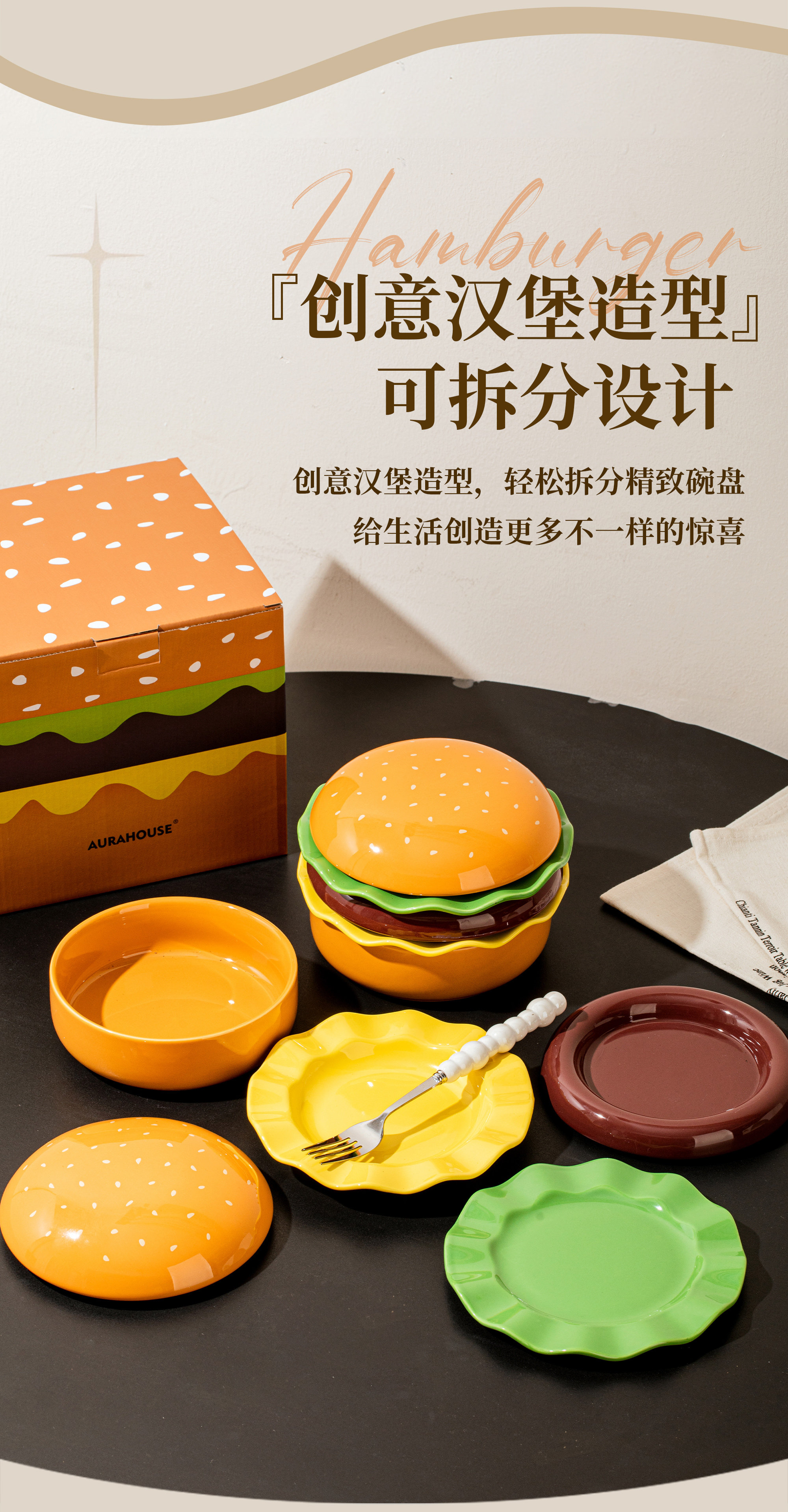 | Color Classification | [Gift Box]Hamburger Tableware Set-5 Pieces |