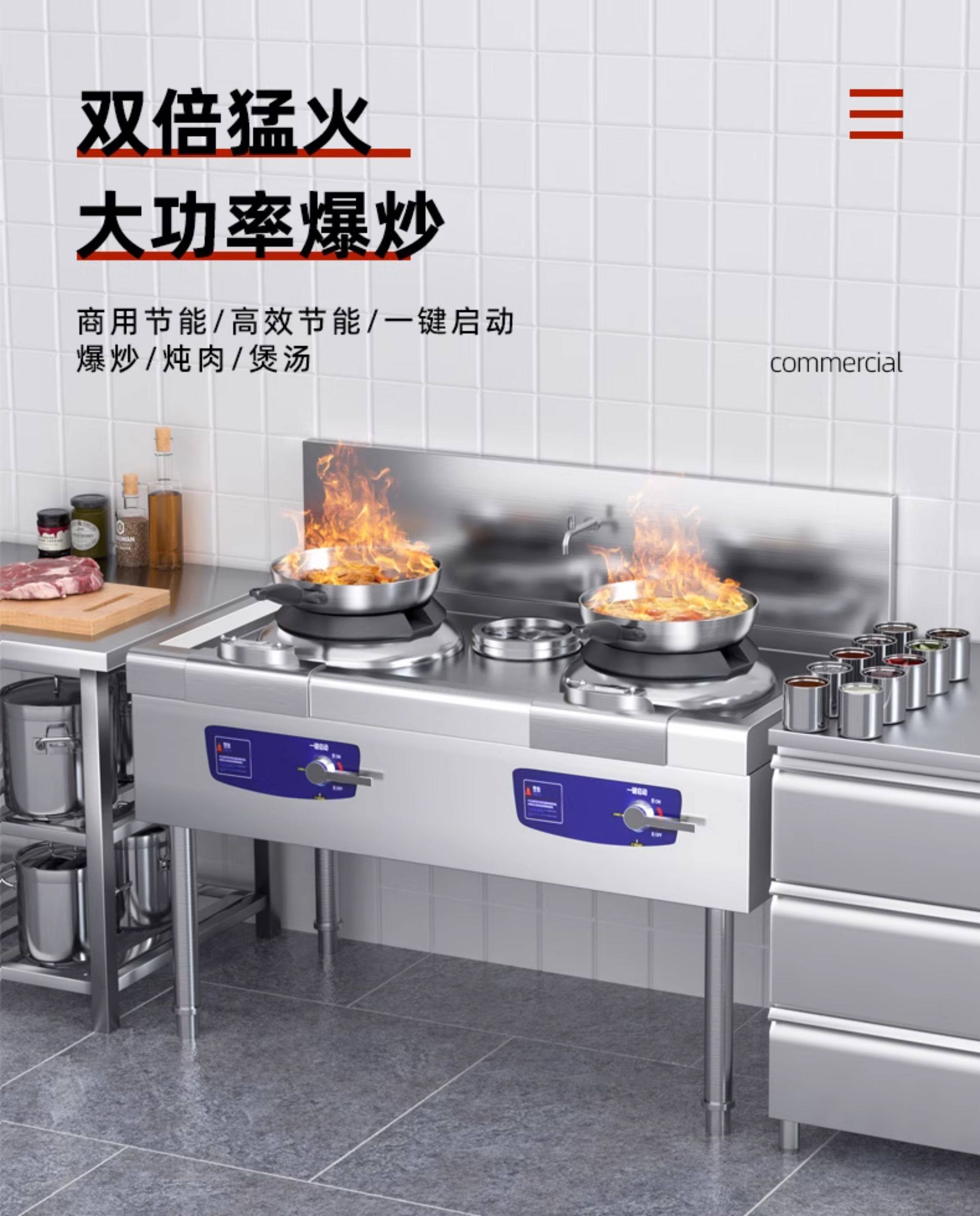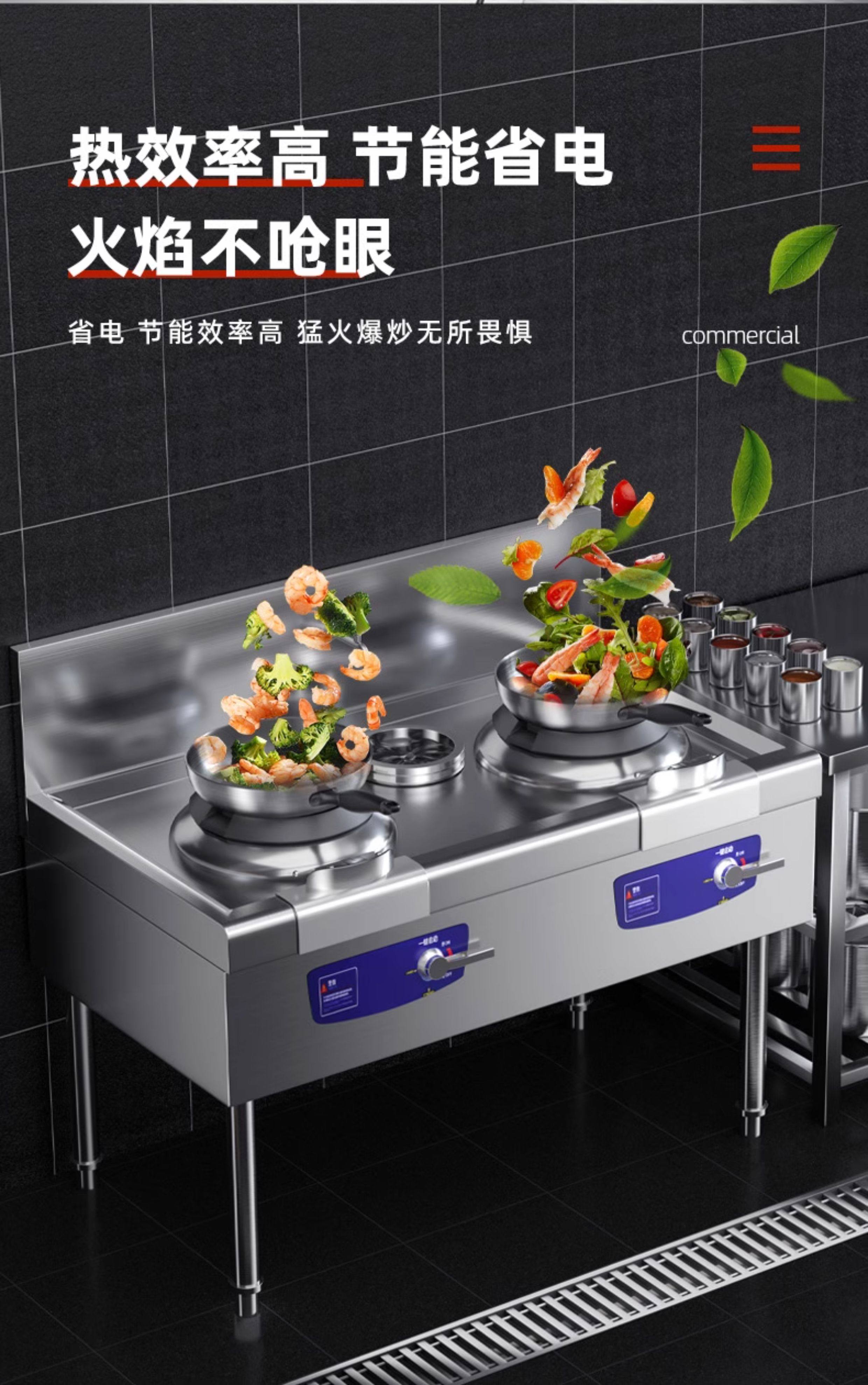 Commercial High-Fire Stove, Stainless Steel, Energy-Saving, Single/Double Gas Stove, Natural Gas, Liquefied Gas, Restaurant-Specific Stove with Fan
