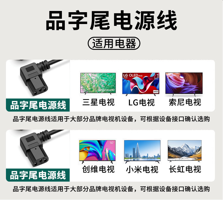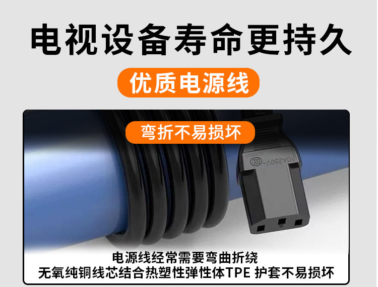Suitable for Xiaomi, Skyworth, Hisense Tv Power Cords, Changhong, Sony, Tcl, Thunderbird, Huawei 3-Pin Extended Extension Cord