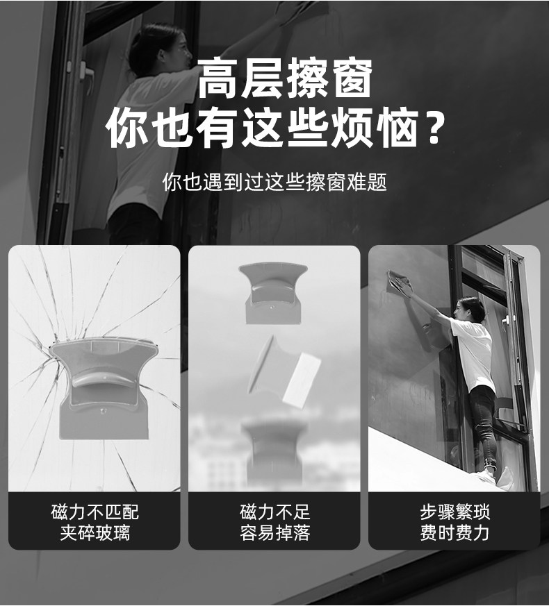 Household Glass Cleaning Tool, Double-Layer High-Rise Strong Magnetic Double-Sided Thick Glass Cleaner, Specialized Tool for Housekeeping and Cleaning Windows
