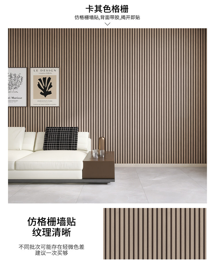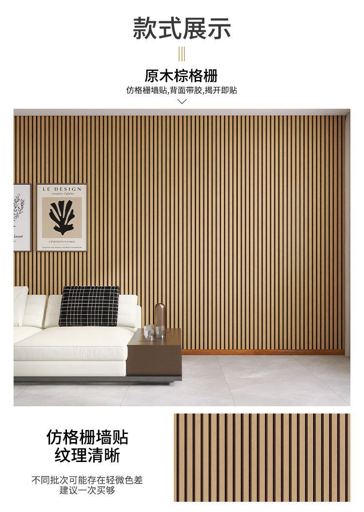 3D Stereo Self-Adhesive Wood Grain Embossed Grille Board Wall Stickers for Living Room Tv Background Wall Decoration Waterproof and Moisture-Proof Wall Panels