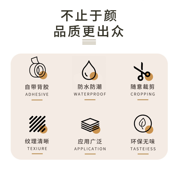 | Color Classification | Khaki[Flat Design with a 3D Visual Effect, Extra Thick and Strong Adhesive, Approximately 3mm Thick],Log Brown[Flat Design with a 3D Visual Effect, Extra Thick and Strong Adhesive, Approximately 3mm Thick],Mocha Brown[Flat Design with a 3D Visual Effect, Extra Thick and Strong Adhesive, Approximately 3mm Thick],Lead Gray[Flat Design with a 3D Visual Effect, Extra Thick and Strong Adhesive, Approximately 3mm Thick],Quicksand Walnut[Concave and Convex 3D Three-Dimensional Thickened and Strong Adhesive, about 3mm Thick],Gray Pine[Concave and Convex 3D Three-Dimensional Thickened and Strong Adhesive, about 3mm Thick],Black Gold Pine[Concave and Convex 3D Three-Dimensional Thickened and Strong Adhesive, about 3mm Thick],Cold Color Difference[Concave and Convex 3D Three-Dimensional Thickened and Strong Adhesive, about 3mm Thick] |