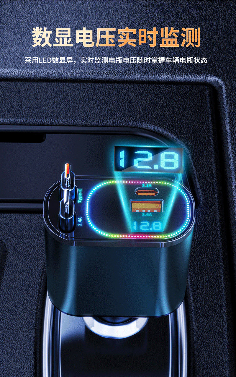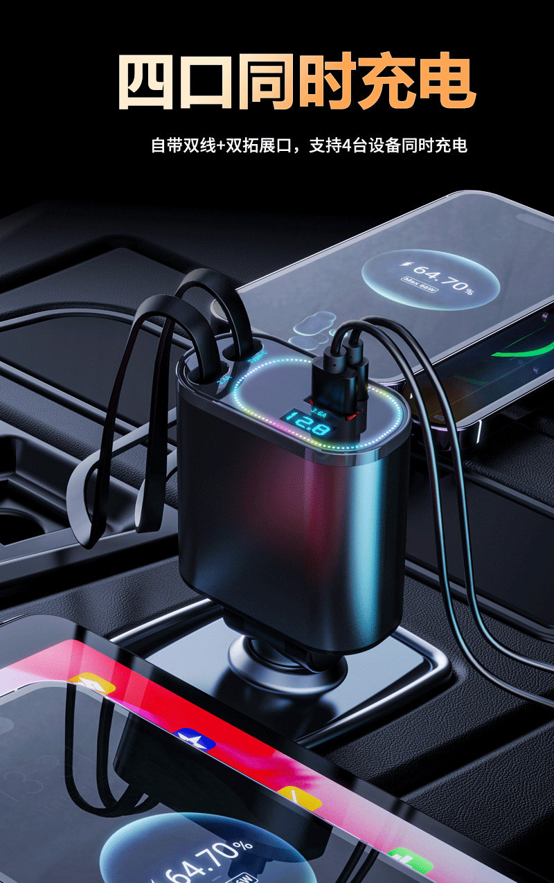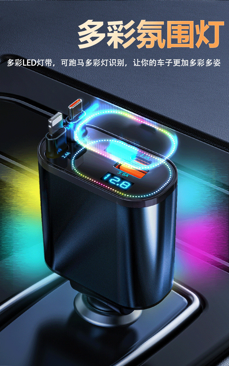 New Car Charger for Mobile Phones, 240W Super Fast Charging, Ambient Light, Car Cigarette Lighter, Car Charger Adapter