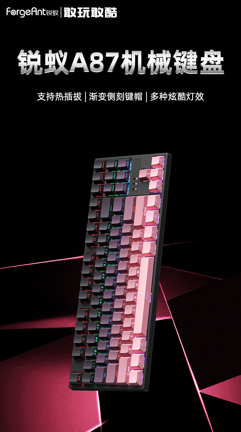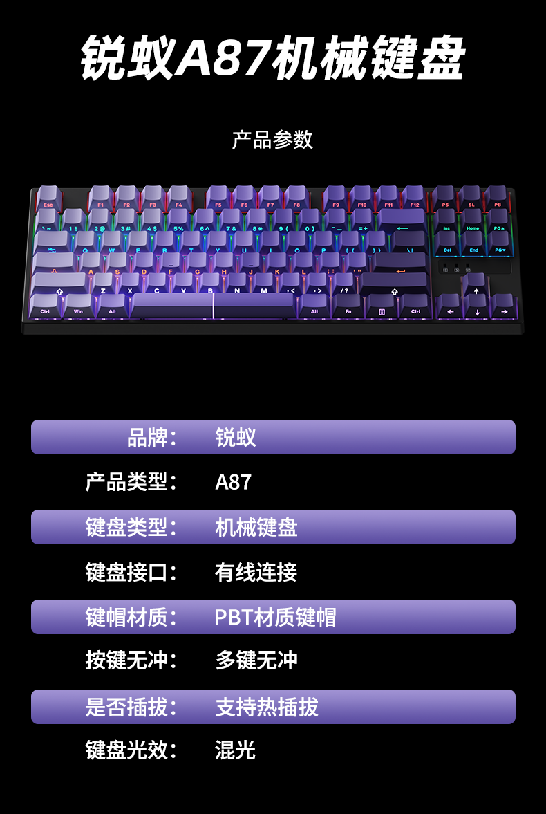 Ruiyi A87 Wired Mechanical Keyboard 87 Keys Side-Engraved Blackberry Customized E-Sports Gaming Office Hot-Swappable Keyboard