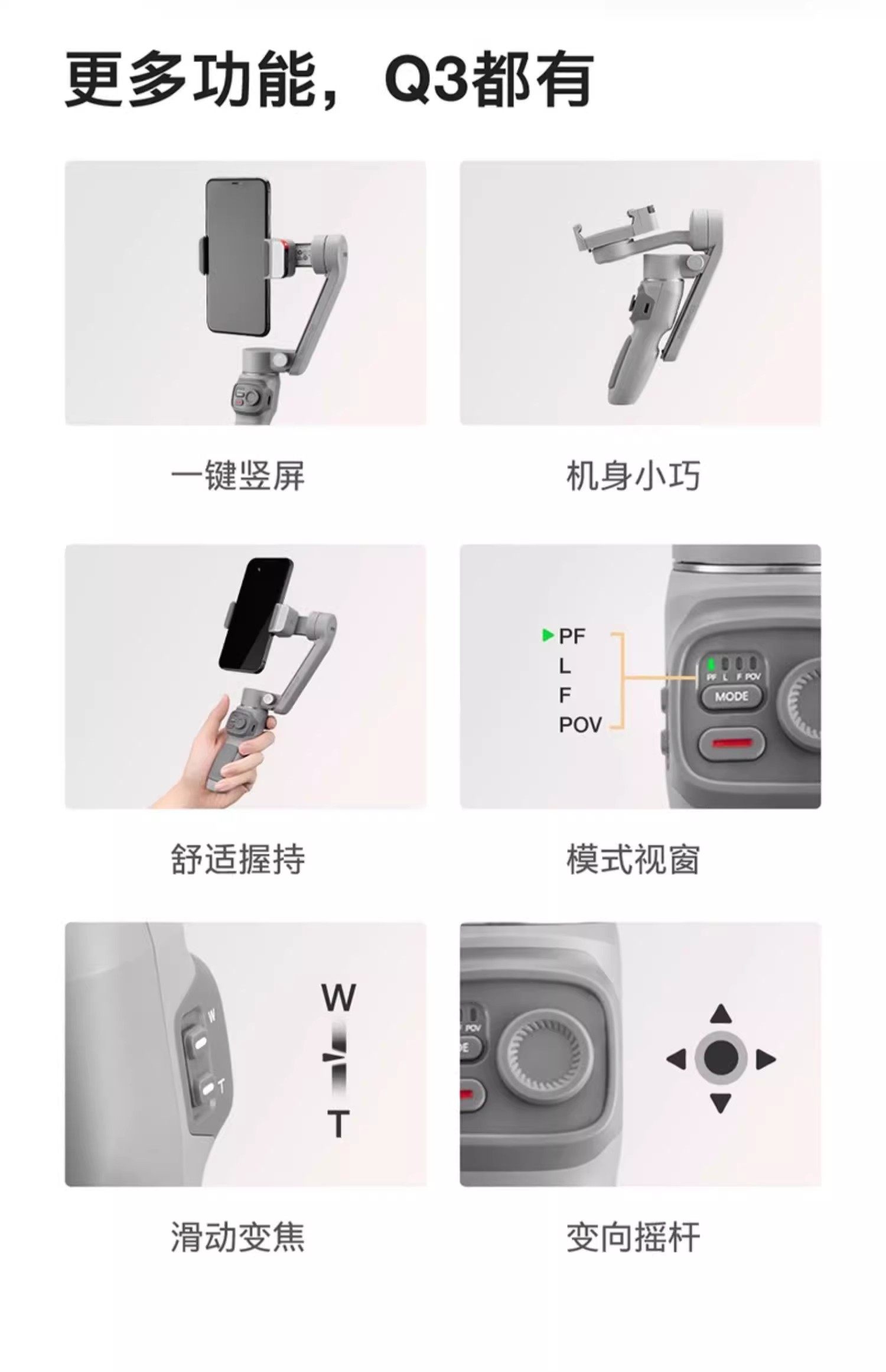 Zhiyun Smooth Q3 Mobile Phone Stabilizer Handheld Gimbal Anti-Shake Shooting Video Vlog Selfie Three-Axis Phone