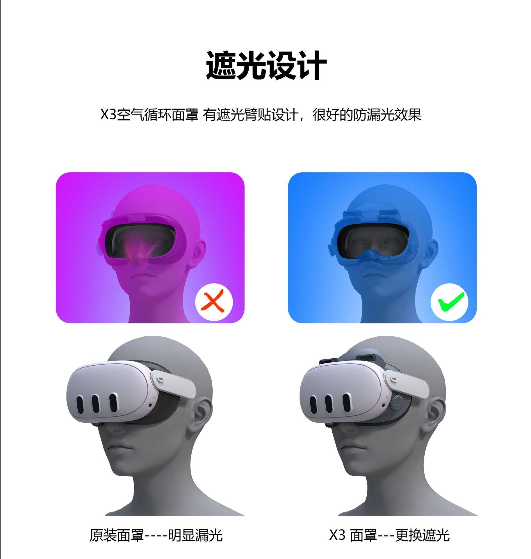 Meta Quest3 Cooling Fan with Strong Airflow, Dual-Mode Light-Blocking Mask to Prevent Light Leakage and Reduce Facial Pressure