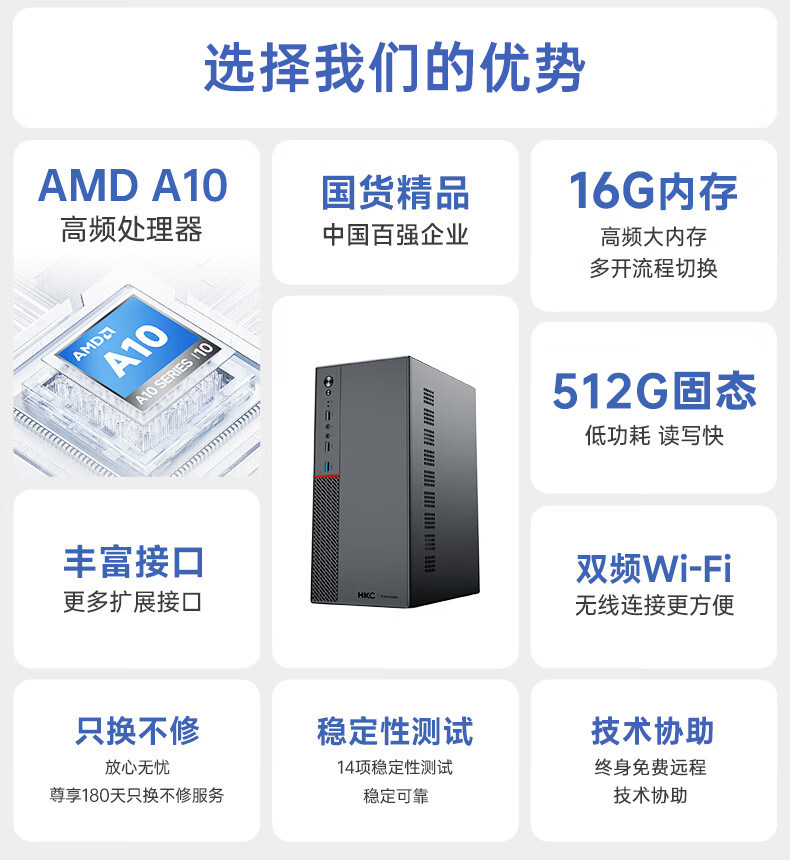 [Free Shipping, Fast Delivery] Hkc Brand Amd Strong Processor A10 Business Office Sambada Desktop Computer Home Use Small Host Enterprise Purchase Mini Small Case Brand Complete Set Genuine Product