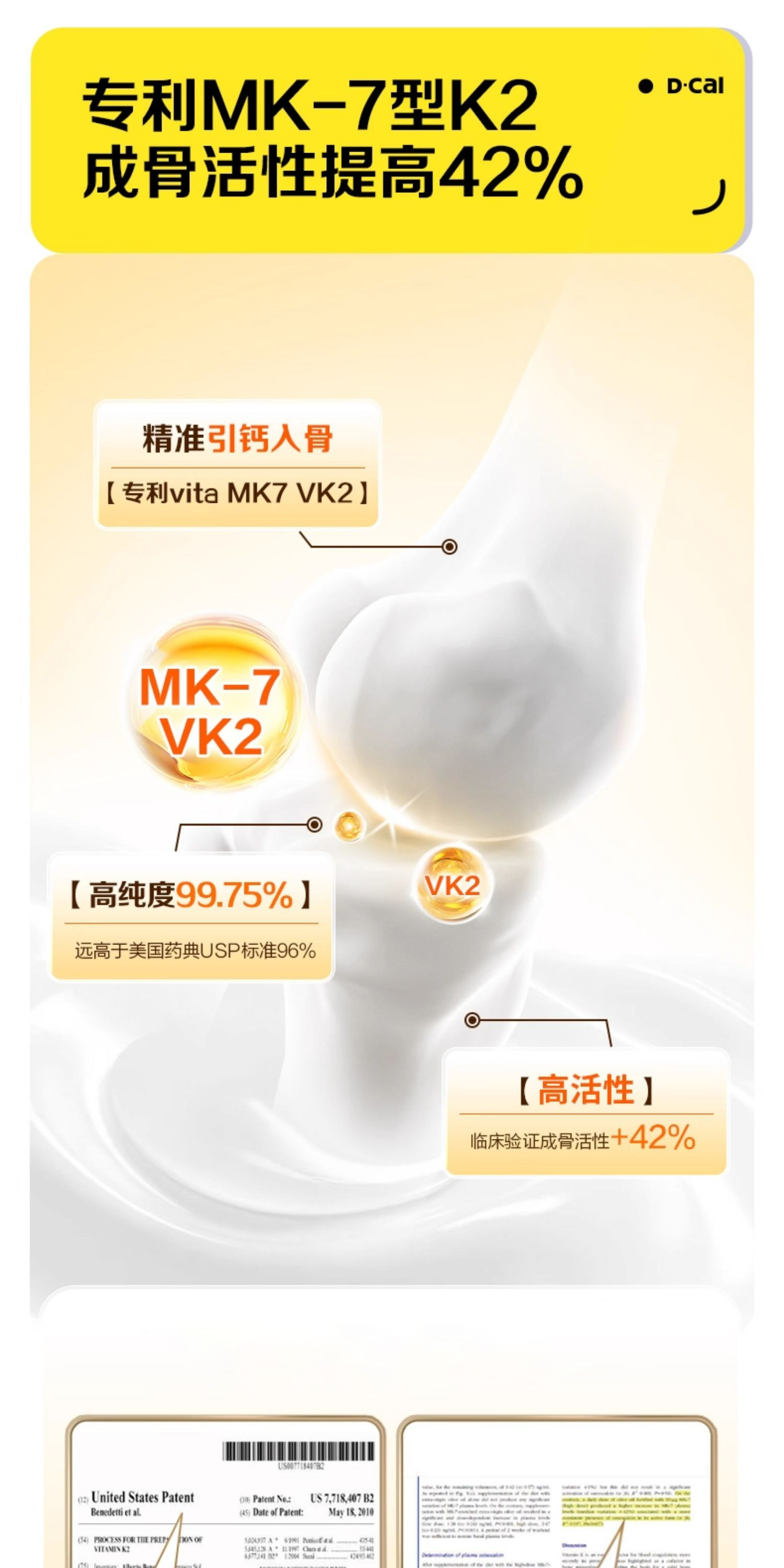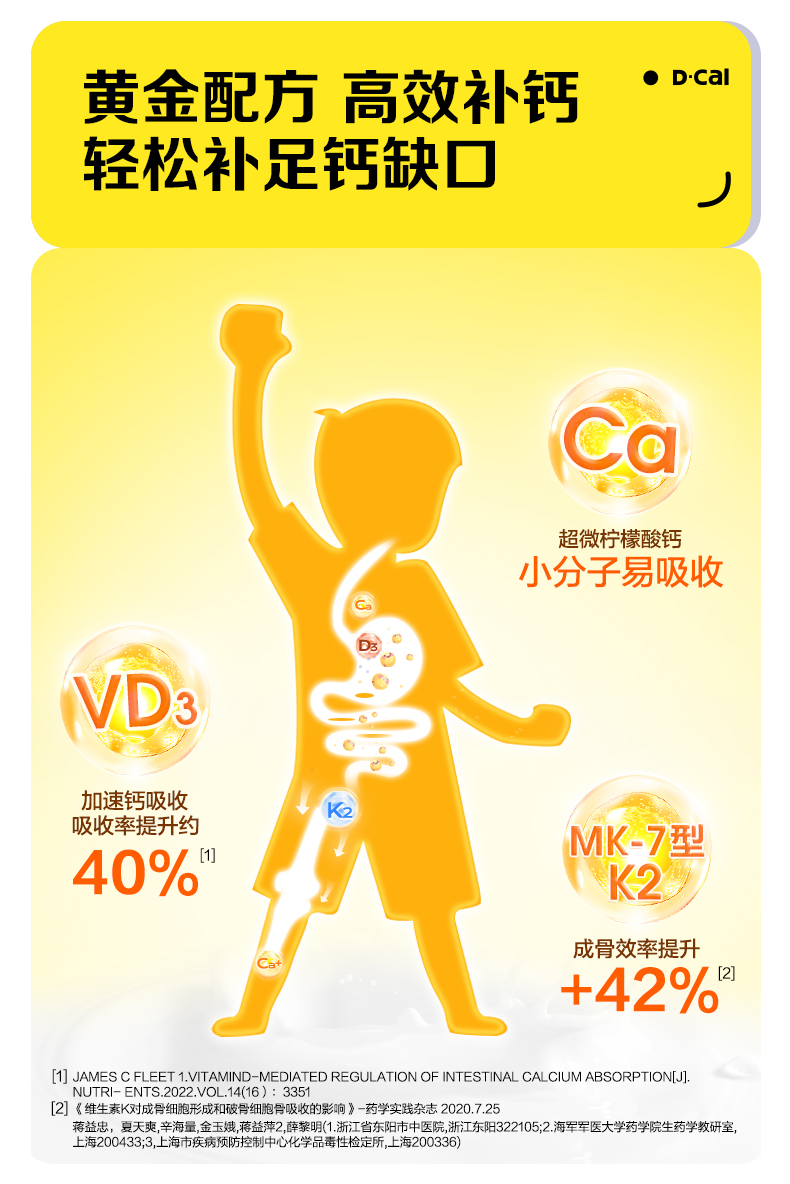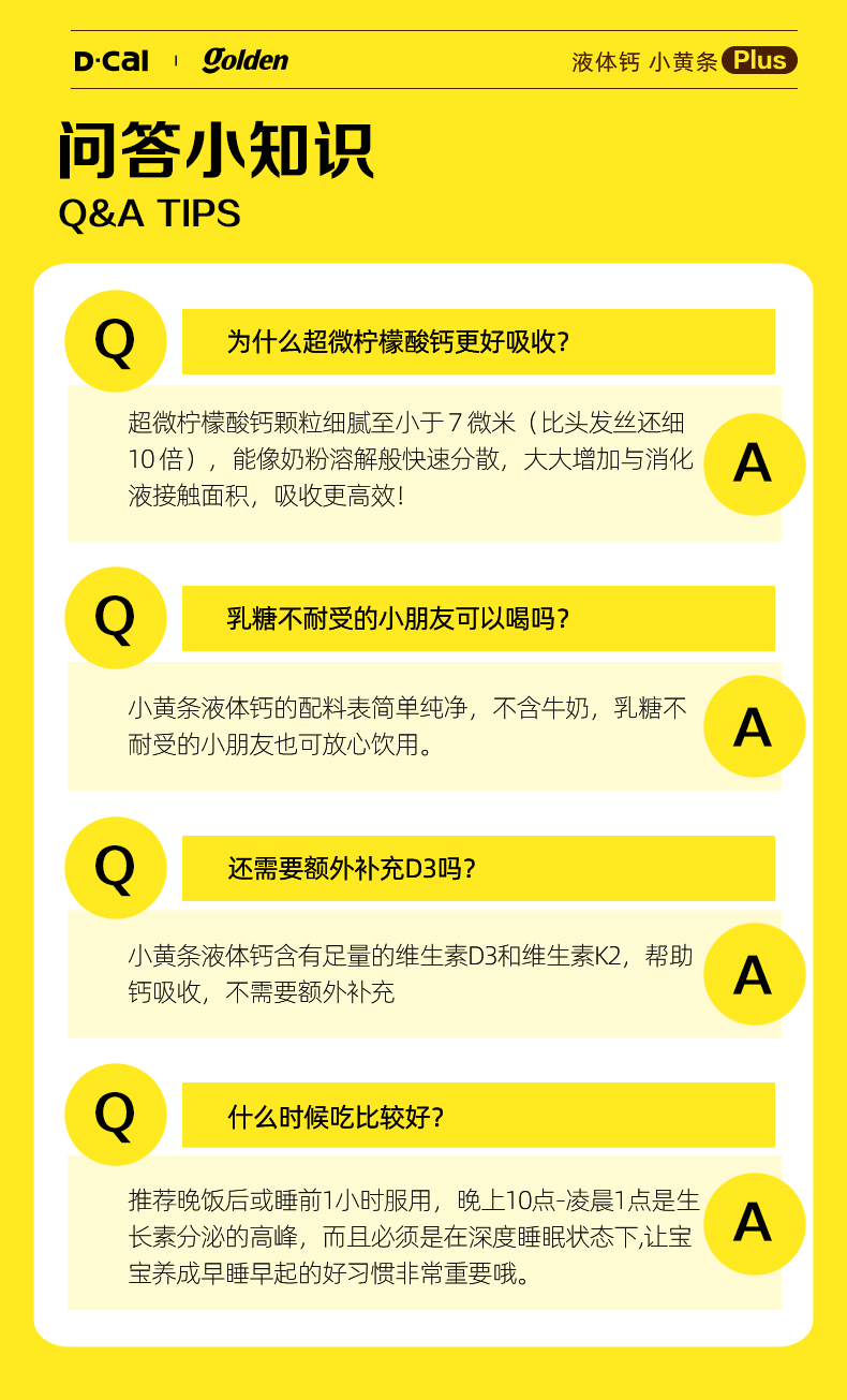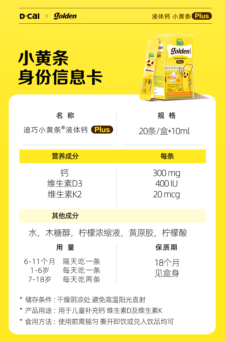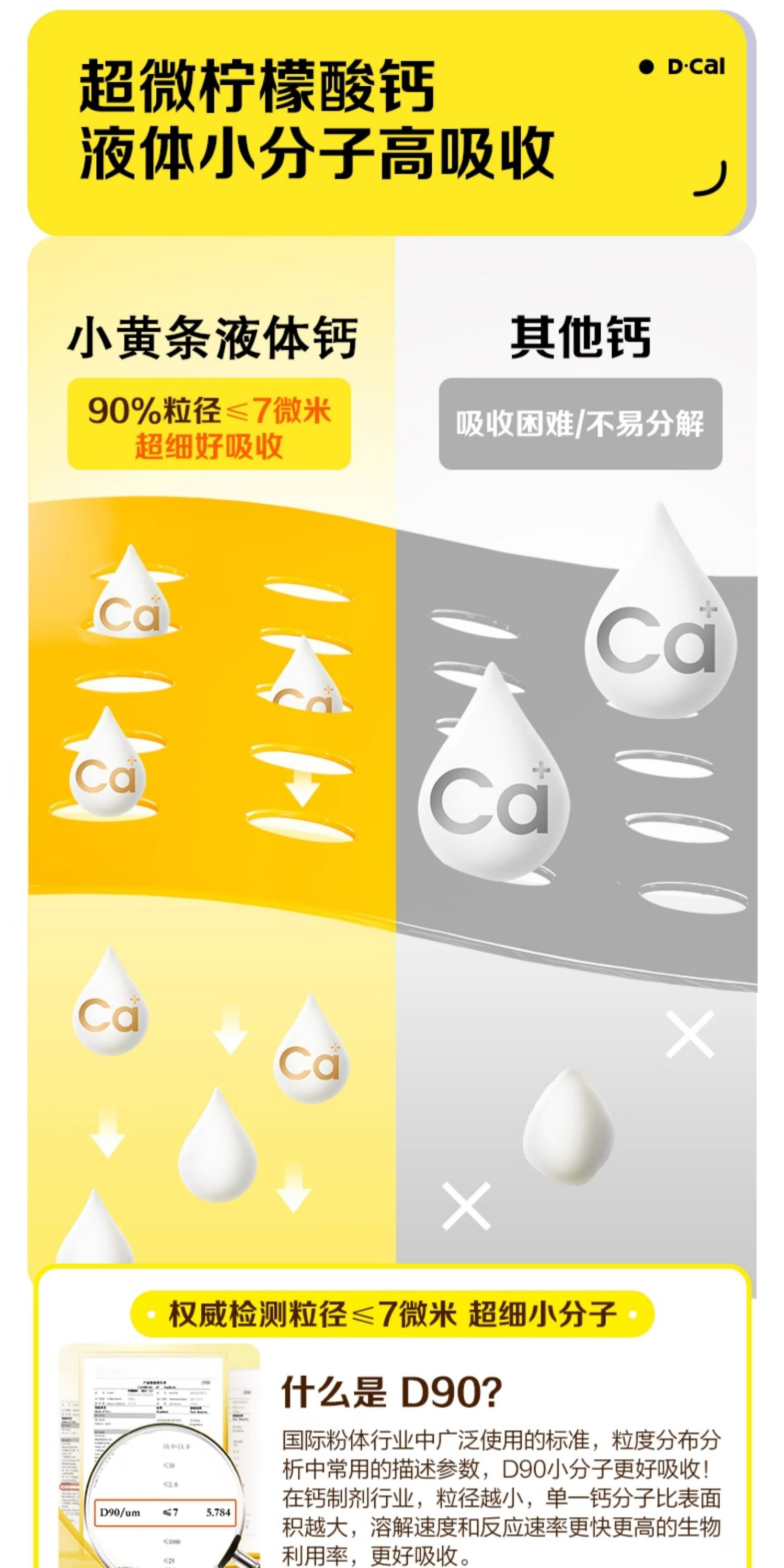 Dcal Diqiao Little Yellow Strip Liquid Calcium Plus for Infants, Children, and Students, Calcium Supplement for Babies, Infant Calcium K2, Official Genuine Product