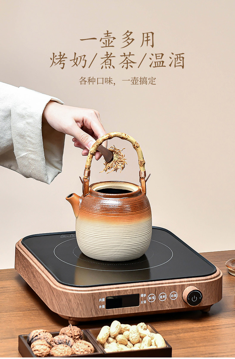 Tea Brewing Set for Indoor Use: Roasted Milk Tea Pot, Clay Pot, Can Be Used for Dry Burning, with Handle