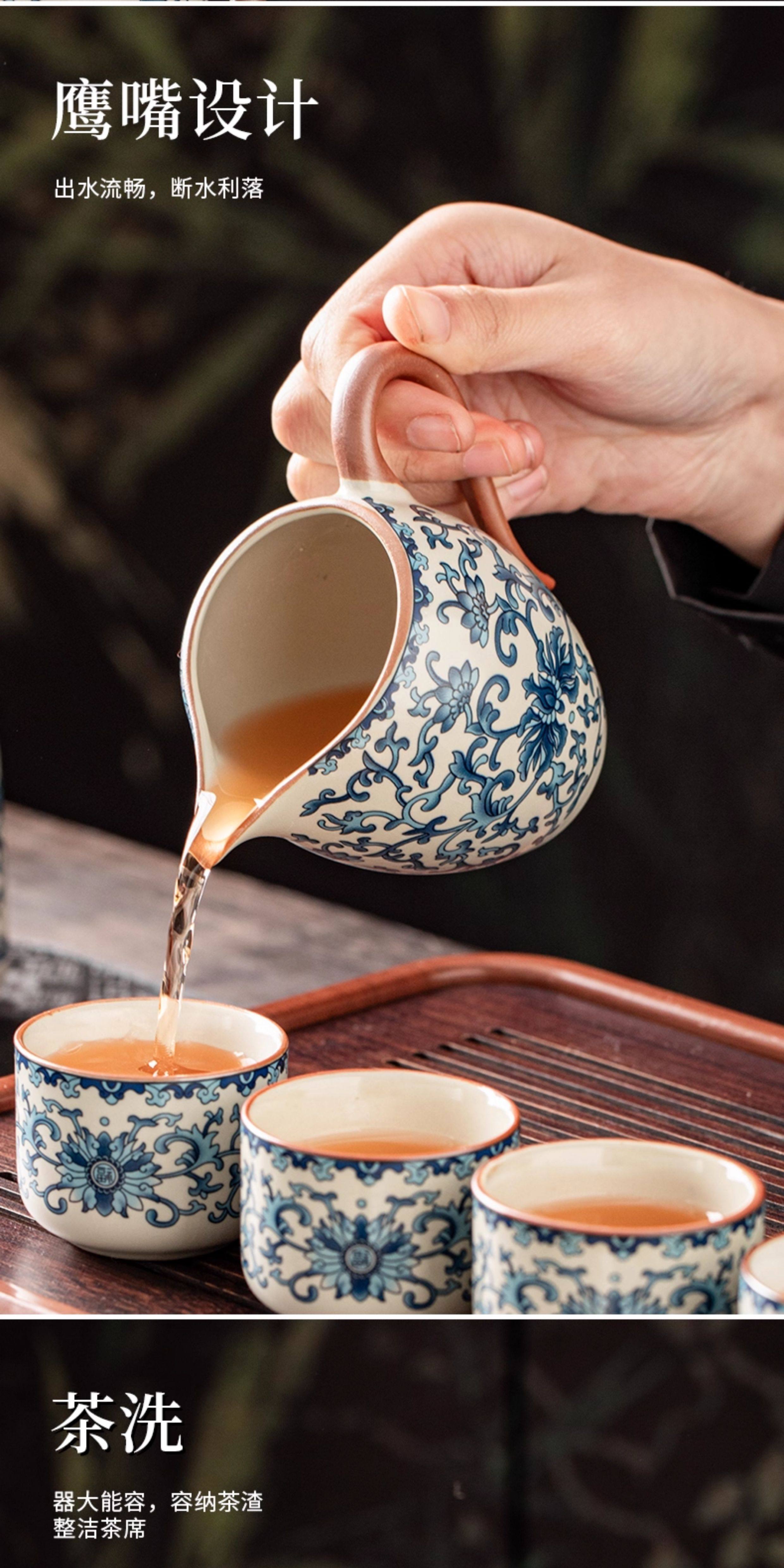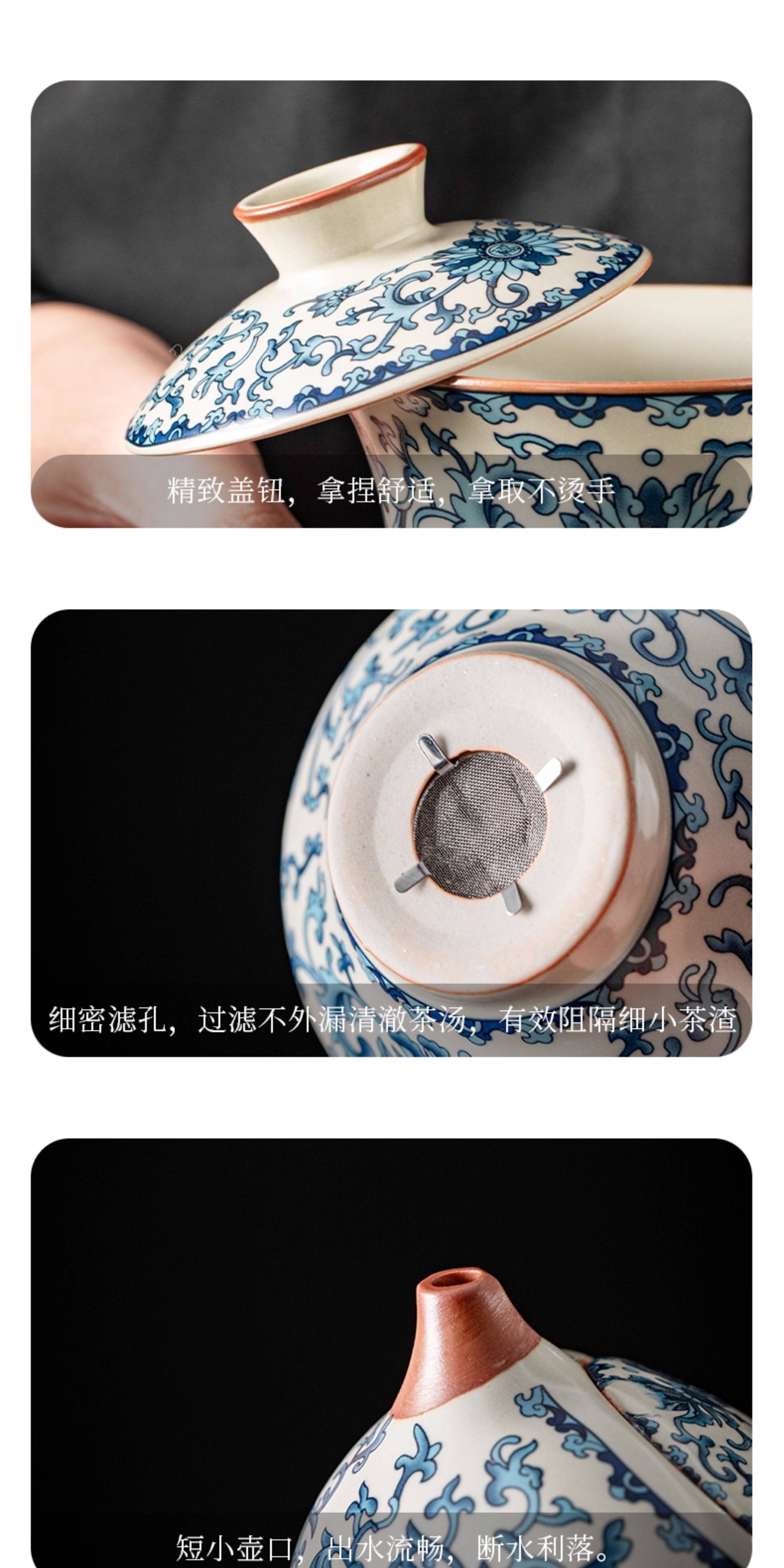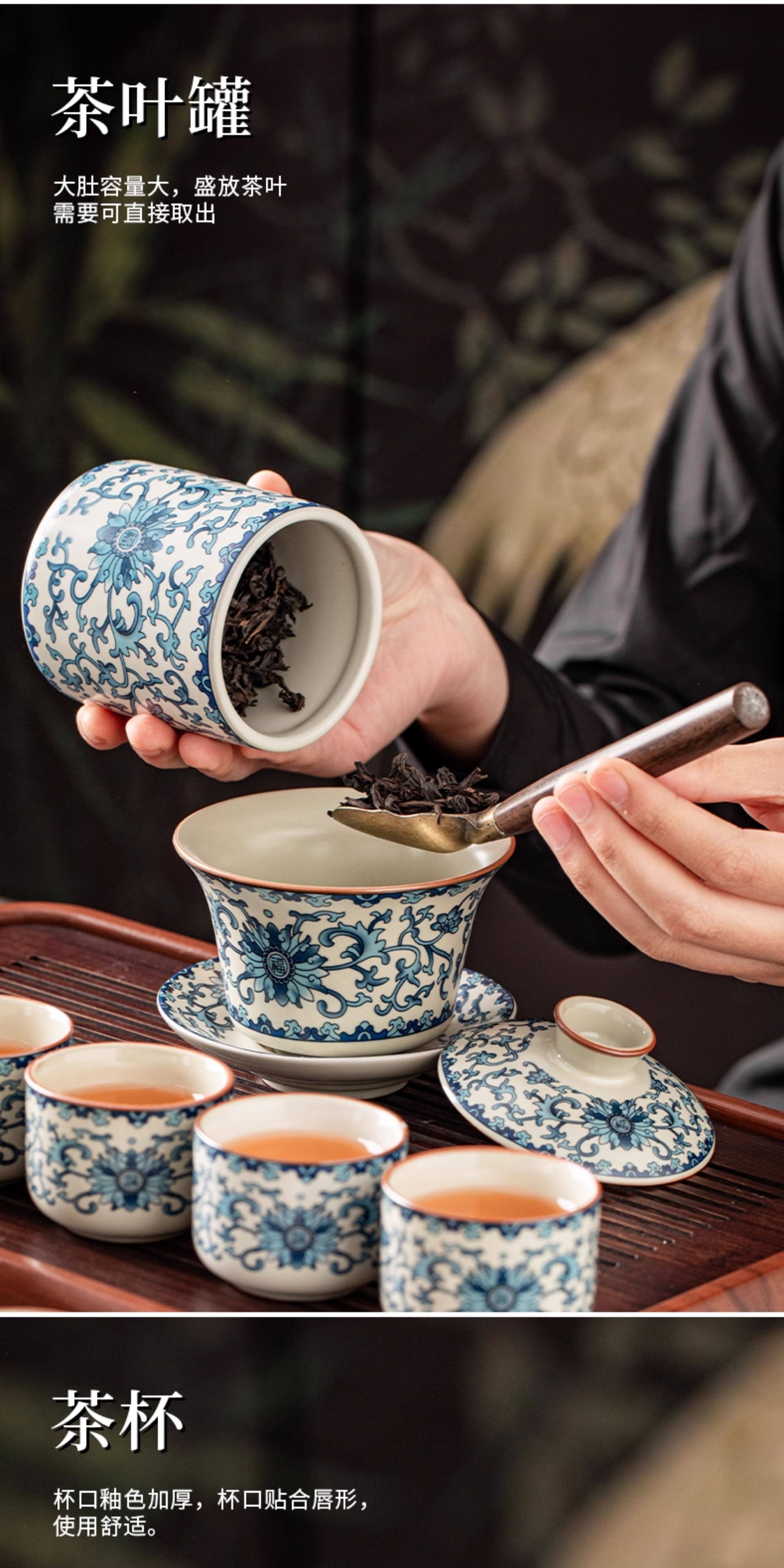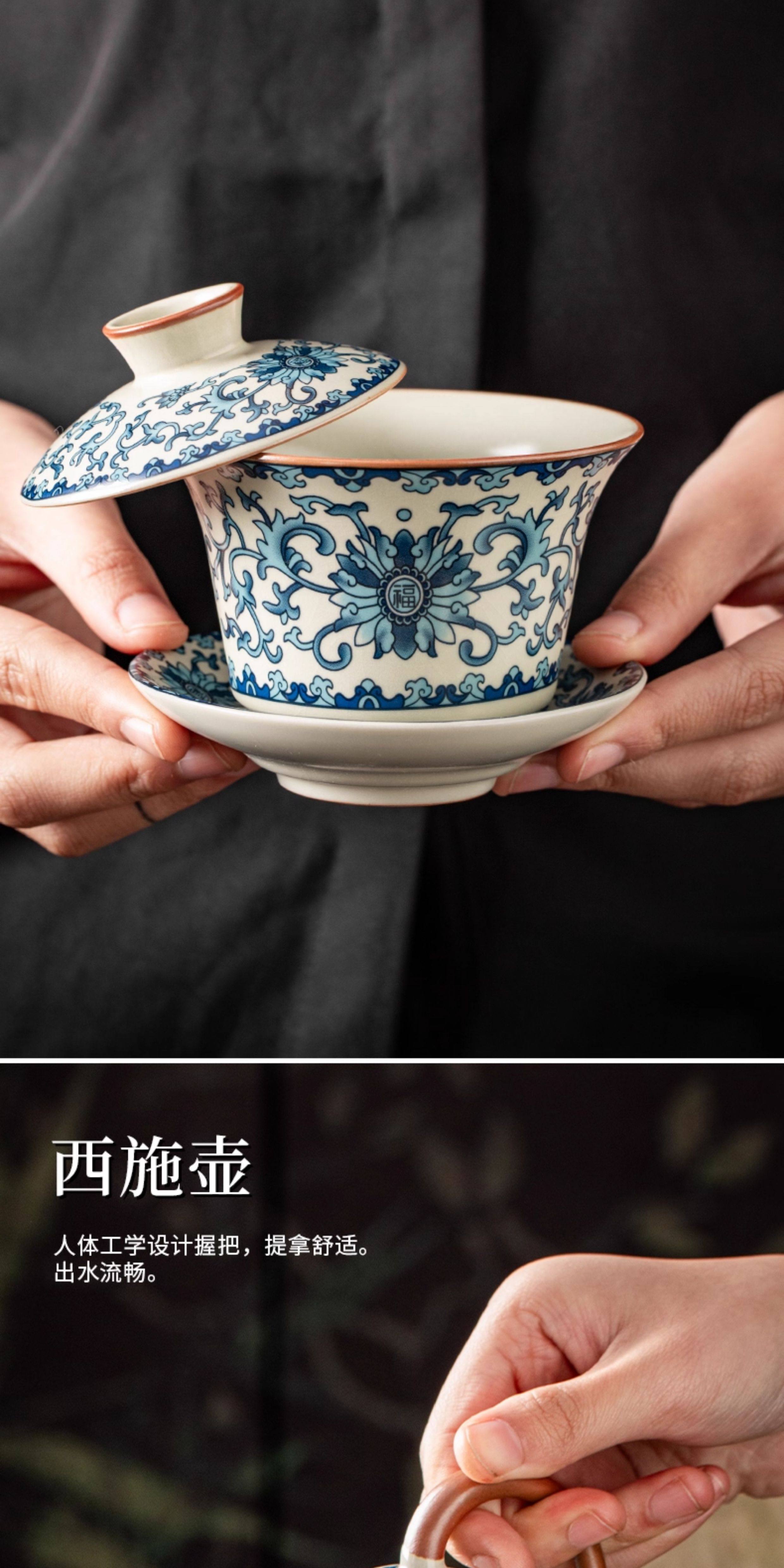 Ru Kiln Blue and White Kung Fu Tea Set Ceramic Teapot with Lid, Floating Lid Bowl, Tea Cup, Tea Tray, Light Luxury High-End Household Use