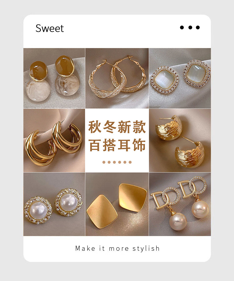 | Color Classification | Great Value 9-Piece Set,Featured 8-Piece Set[90's Choice],Ningtian 8-Piece Set,Gold Square Cat's Eye Rhinestone Stud Earrings,Khaki Earrings and Studs,Gold Crinkle Ball Earrings,Gold Irregular Square Earrings,Gold Edge Round Pearl Earrings,Gold Diamond D-Shaped Pearl Earrings,French Irregular Earrings,Gold Love Earrings,Maillard Tiger Eye Stone Drop Earrings,Maillard Smudged Disc Earrings,Gold Oval Earrings,Gold Diamond Heart Bow Pearl Earrings,Cross Pearl Earrings,Burgundy Bow Heart Earrings,A Pair of White Pearl Earrings,Square Contrasting Color Earrings,Cross Bow Pearl Ear Hooks,Bright Gold Hoop Earrings,Gold Twisted Hollow Earrings,Niche 2-Piece Set,Chic 2-Piece Set,Elegant 2-Piece Set,Premium 2-Piece Set,Fashionable 2-Piece Set,Elegant 2-Piece Set,Yu Feng 3-Piece Set,Retro 3-Piece Set,Simple 3-Piece Set,Popular 3-Piece Set,Jingbai 3-Piece Set,Versatile 3-Piece Set,Rotating 4-Piece Set,Recommended 4-Piece Set,Simple 4-Piece Set,Mengsong 4-Piece Set,Hong Kong Style 4-Piece Set,Yiyu 4-Piece Set,Beixiao 4-Piece Set,Hot Selling 5-Piece Set,Peishan 5-Piece Set,Ice Spin 5-Piece Set |