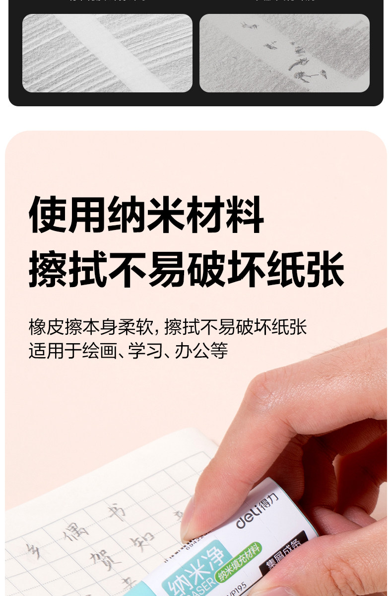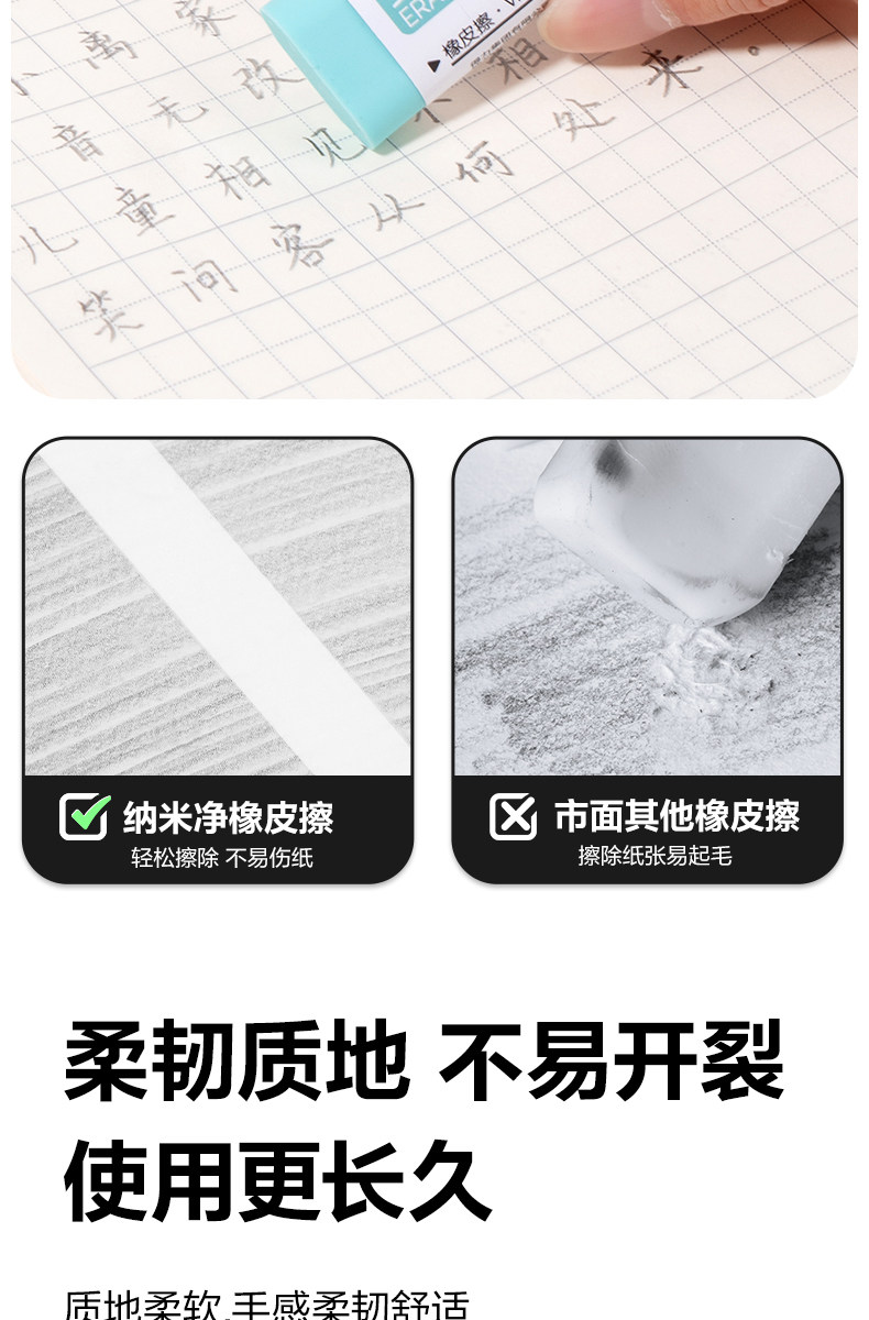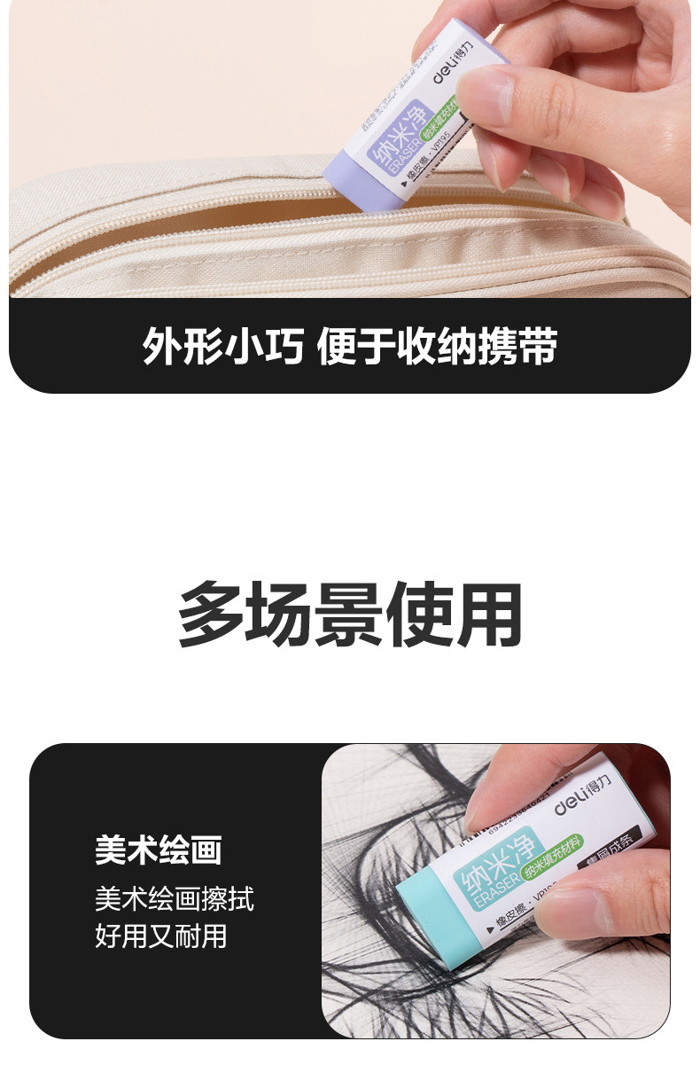Deli Nano Eraser for Elementary School Students, No Debris, Ultra Clean, Leaves No Marks, Non-Toxic Pencil Eraser for Kindergarten, Erases Words into Lines, High-Tech Children's Art Sketch Eraser