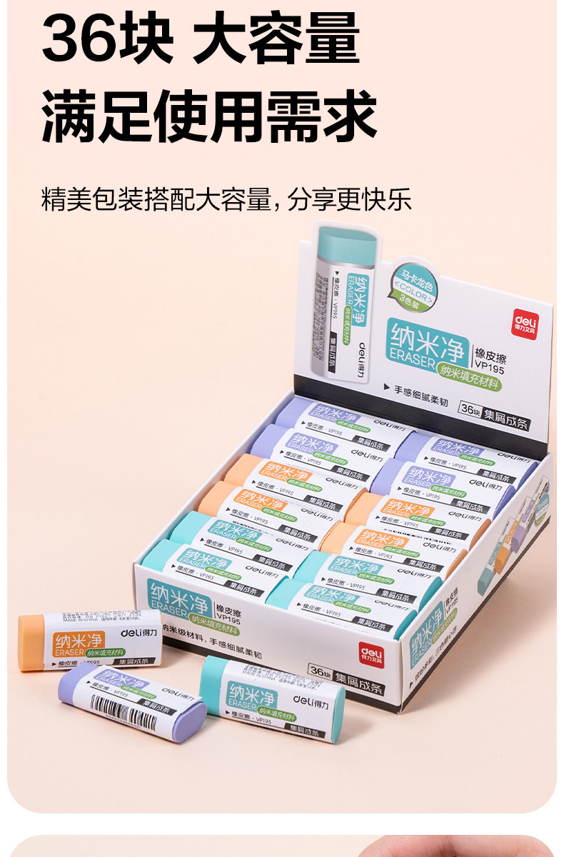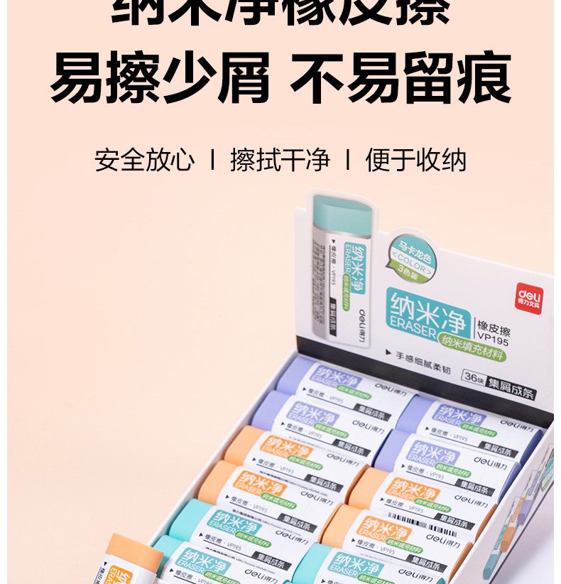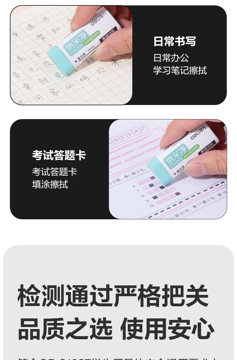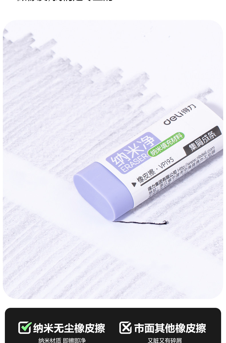 Deli Nano Eraser for Elementary School Students, No Debris, Ultra Clean, Leaves No Marks, Non-Toxic Pencil Eraser for Kindergarten, Erases Words into Lines, High-Tech Children's Art Sketch Eraser